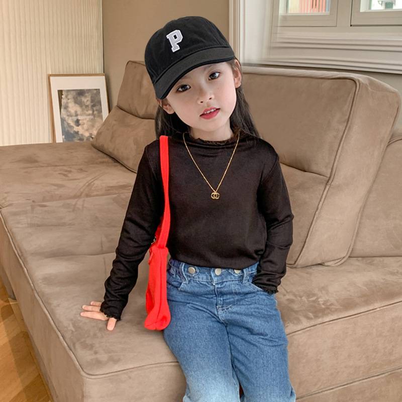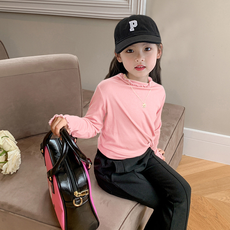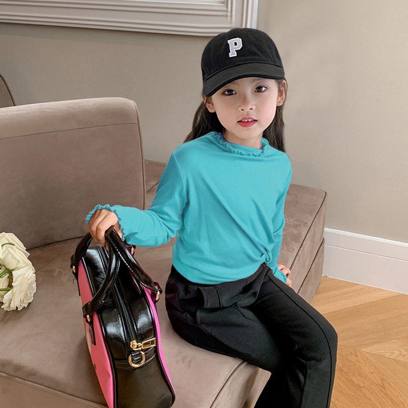 여아 모달 베이스 레이어 2025 봄 가을 여아용 긴팔 티셔츠 단색 상의 한국 스타일 아동복스토어 가기