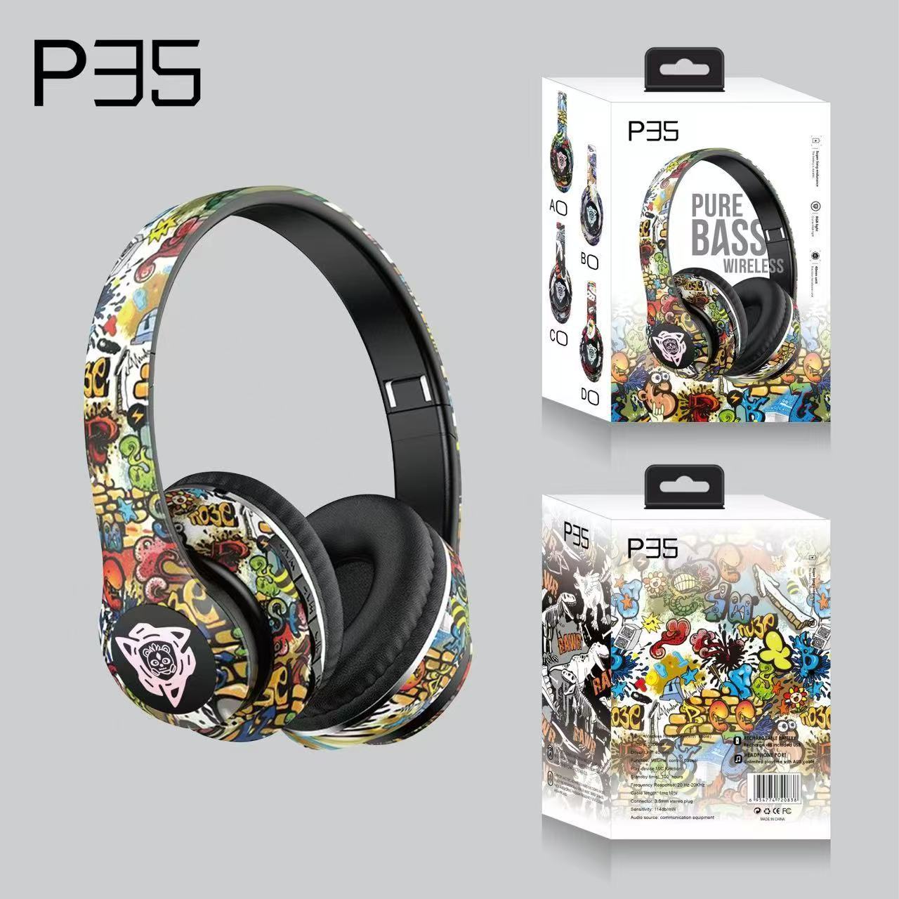 국경 간 새로운 P35 헤드셋 블루투스 헤드셋 빛나는 게임 무선 카드 국가 조수 낙서 블루투스 헤드셋스토어 가기