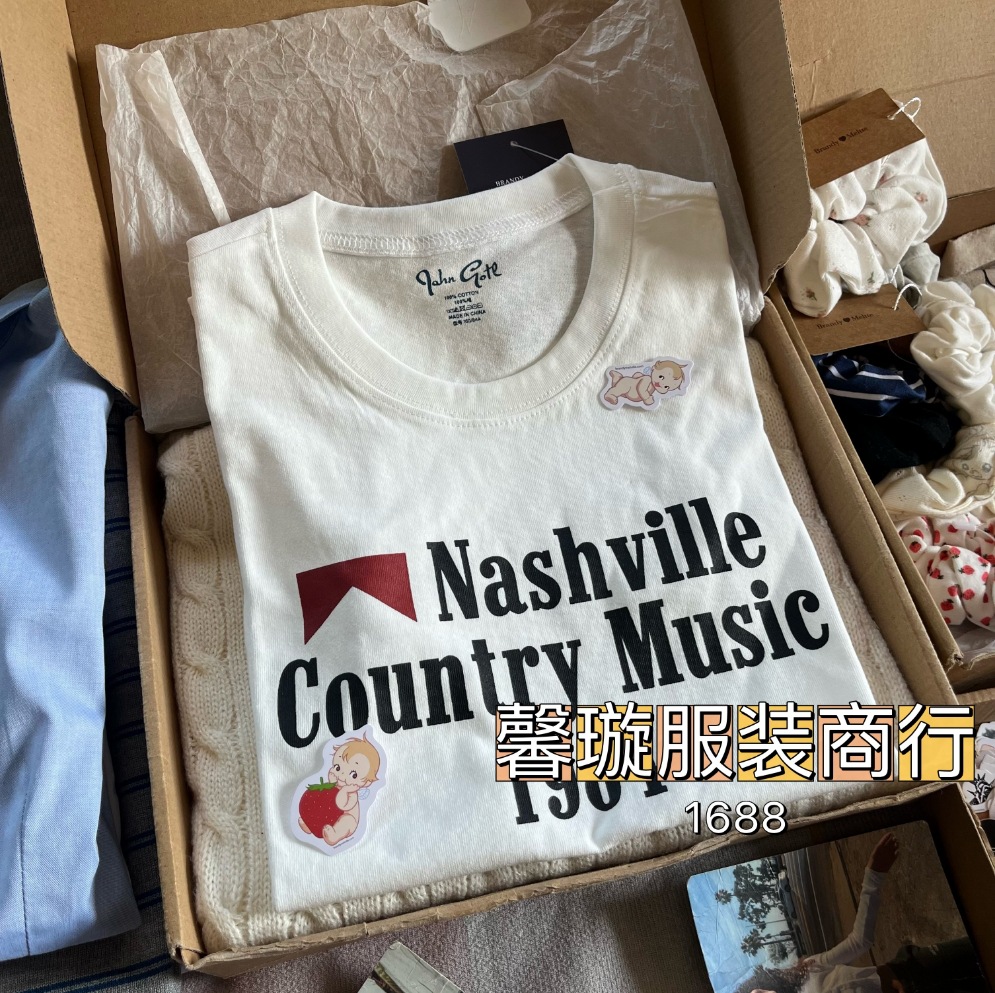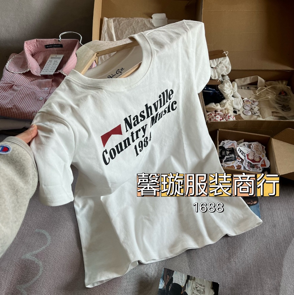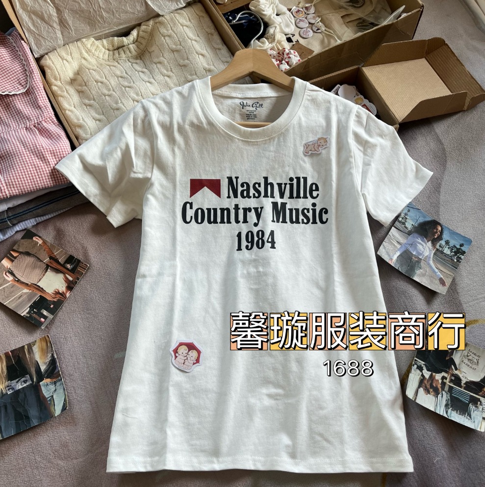 BM 스타일 Ouyang Nana 스타 같은 편지 반팔 티셔츠 여성 여름 bm 아메리칸 스타일 핫 걸 스타일 숄더 탑스토어 가기