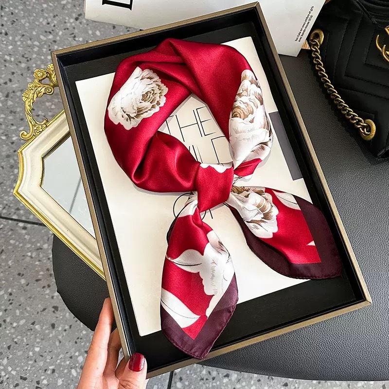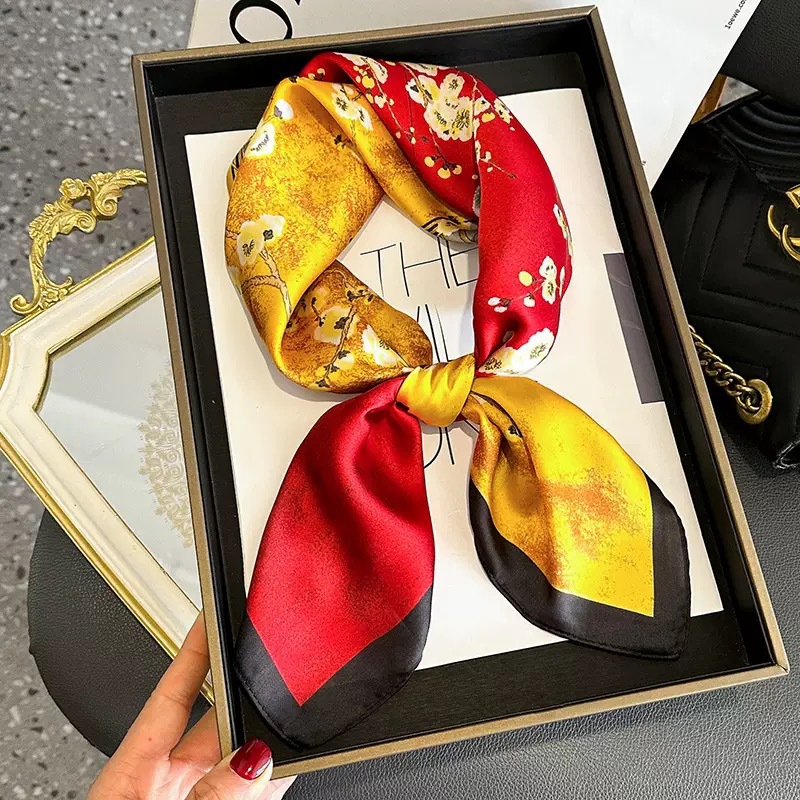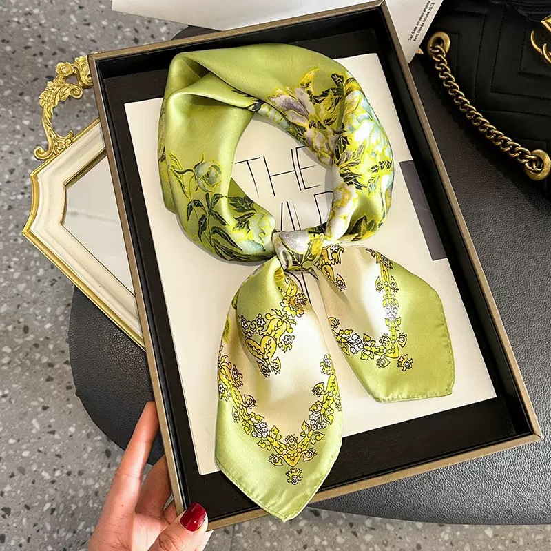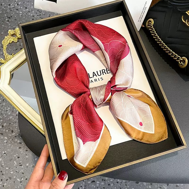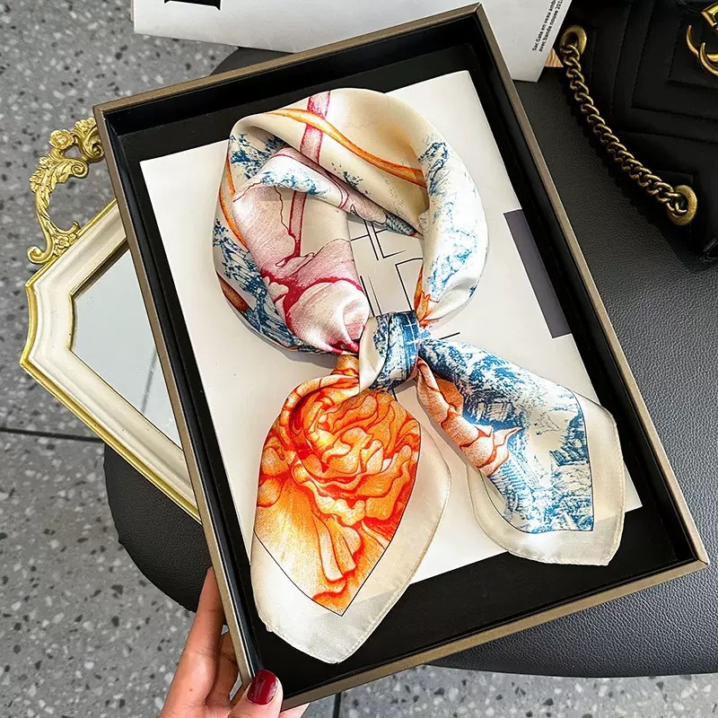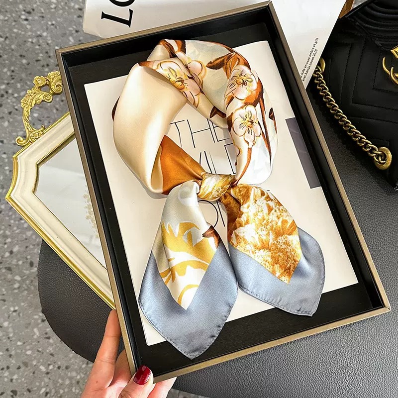 고급 작은 실크 스카프 한국 세련된 봄과 가을 장식 70 스퀘어 스카프 넥타이 헤어 넥타이 백 얇은 인쇄 스카프