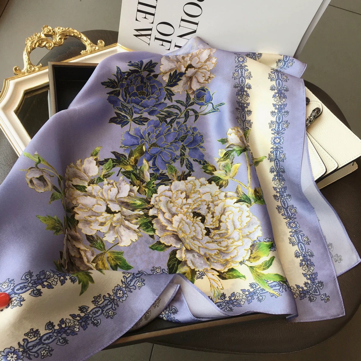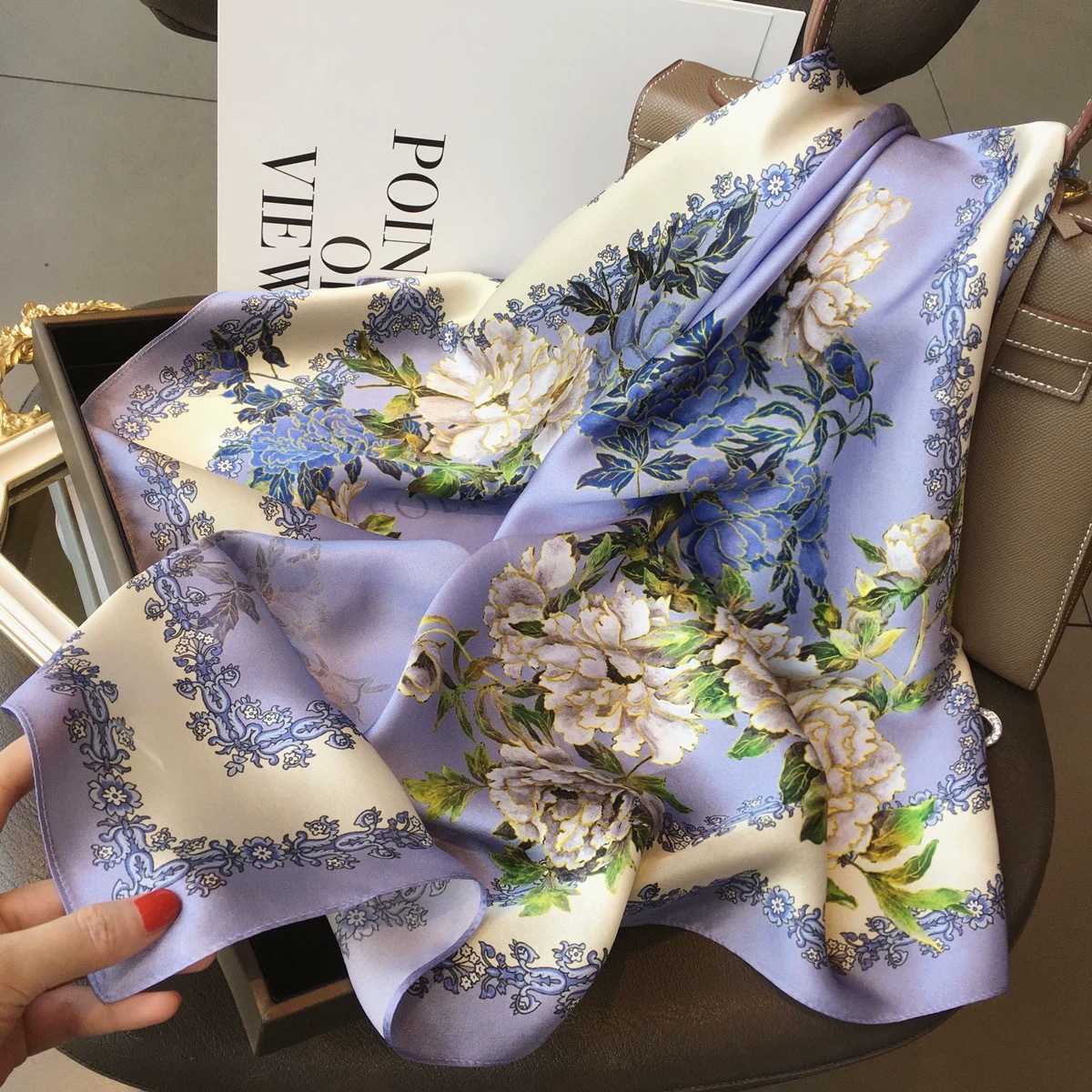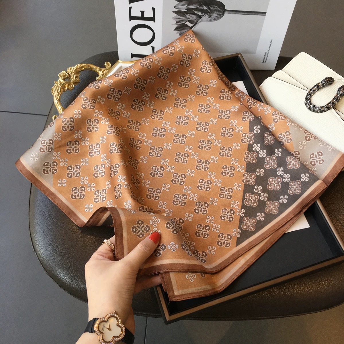 고급 작은 실크 스카프 한국 세련된 봄과 가을 장식 70 스퀘어 스카프 넥타이 헤어 넥타이 백 얇은 인쇄 스카프