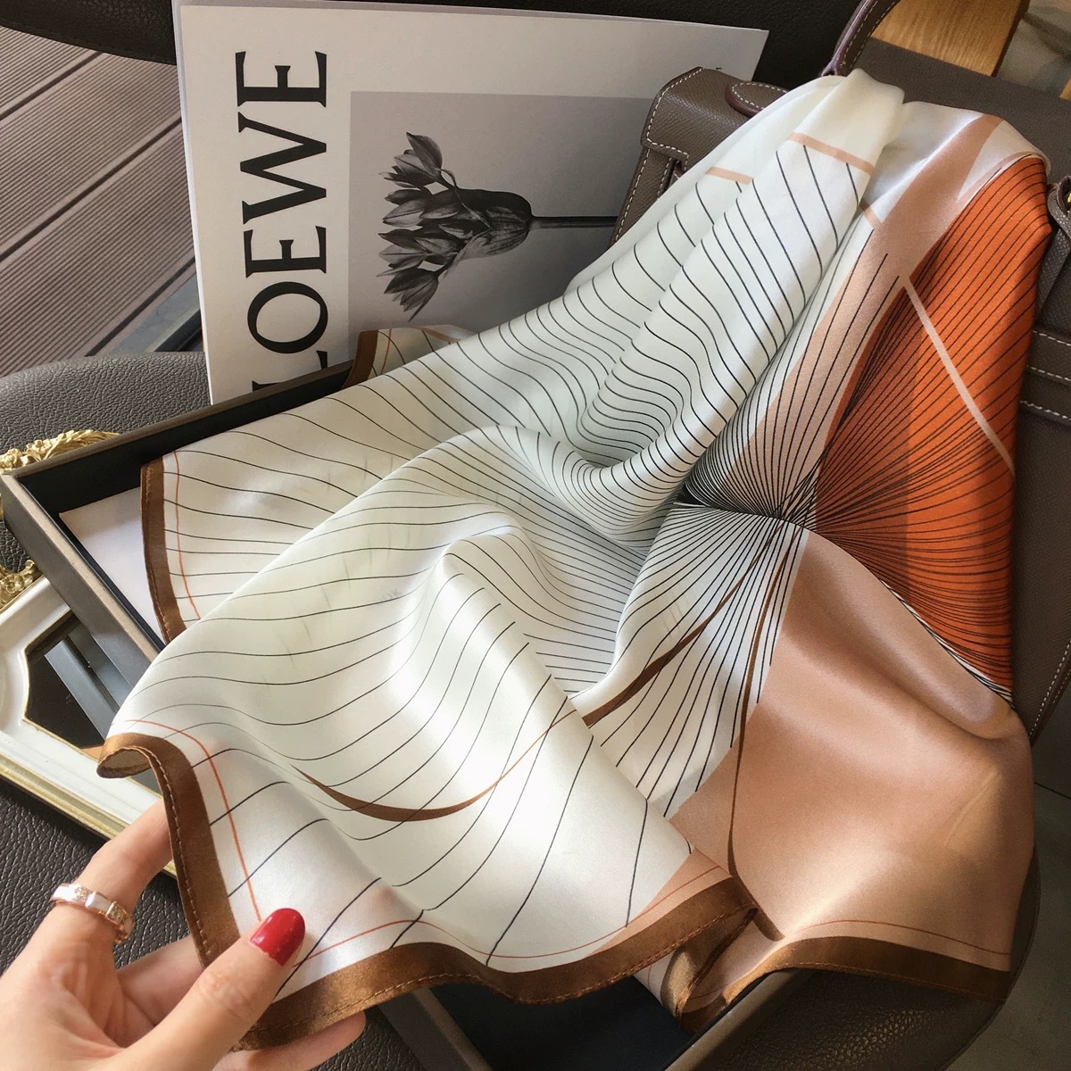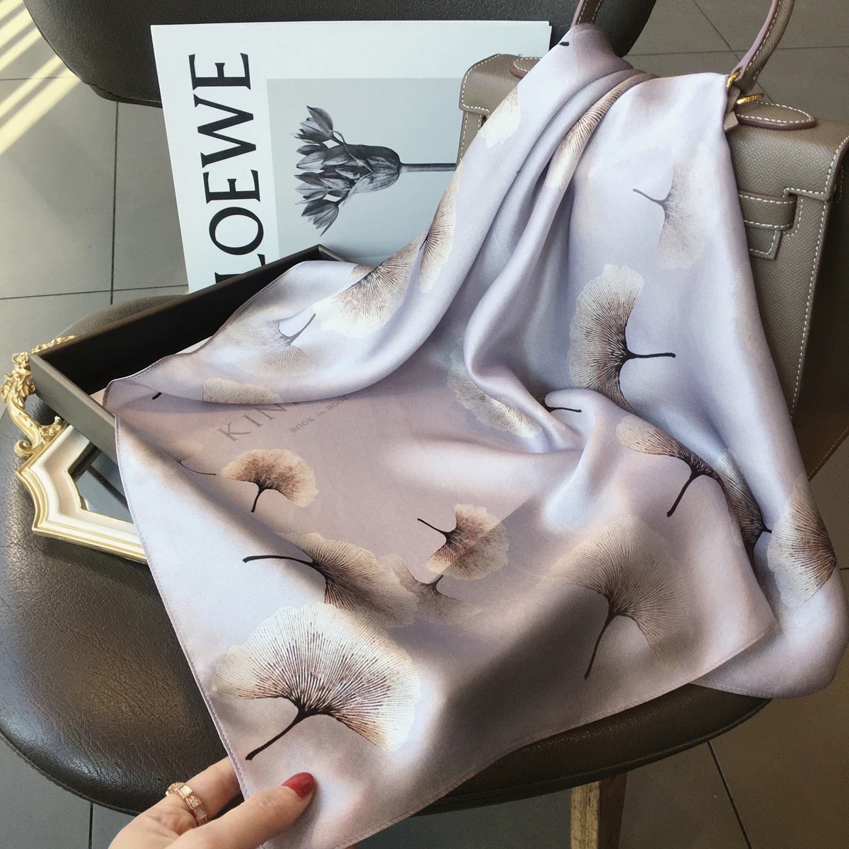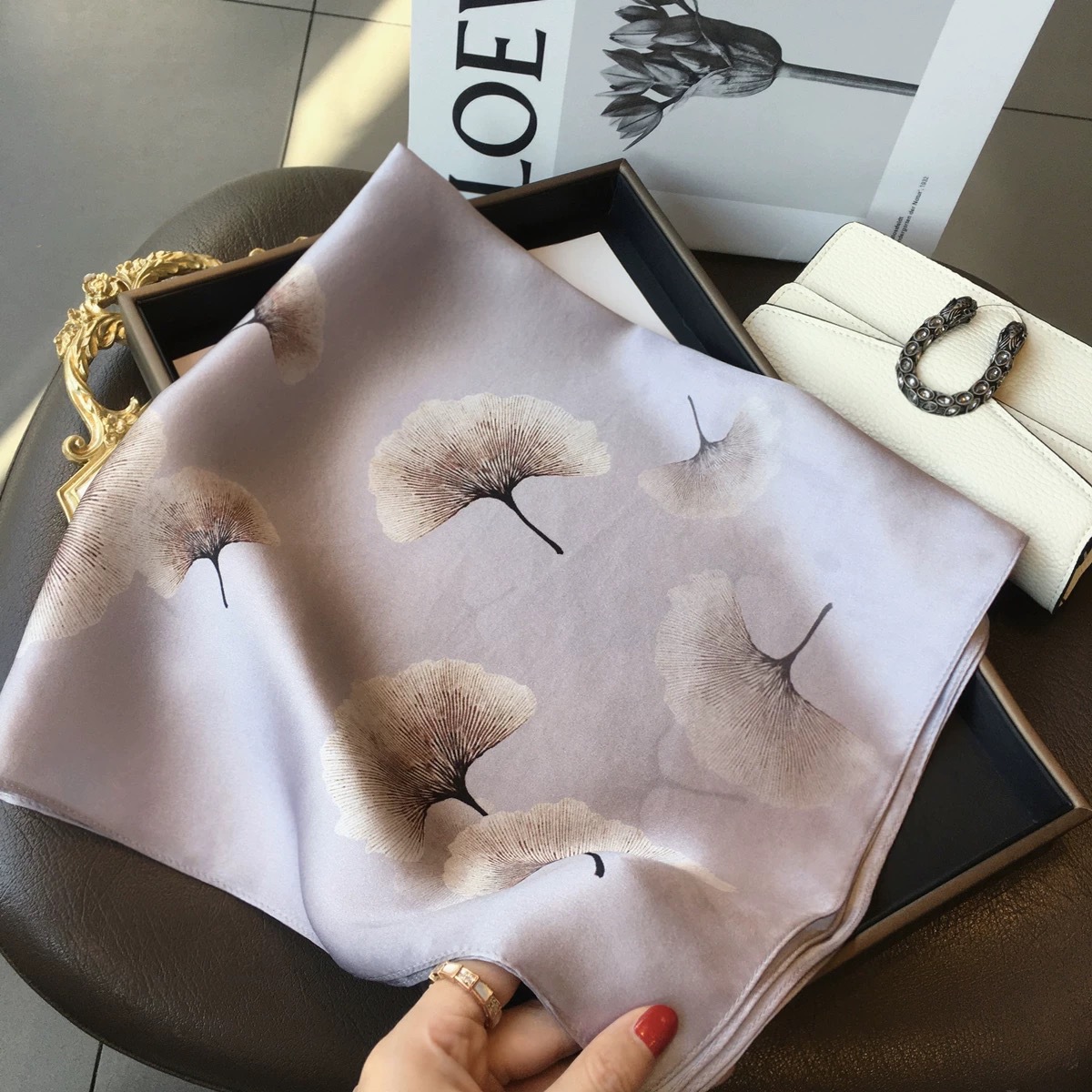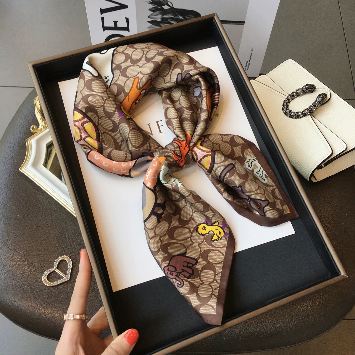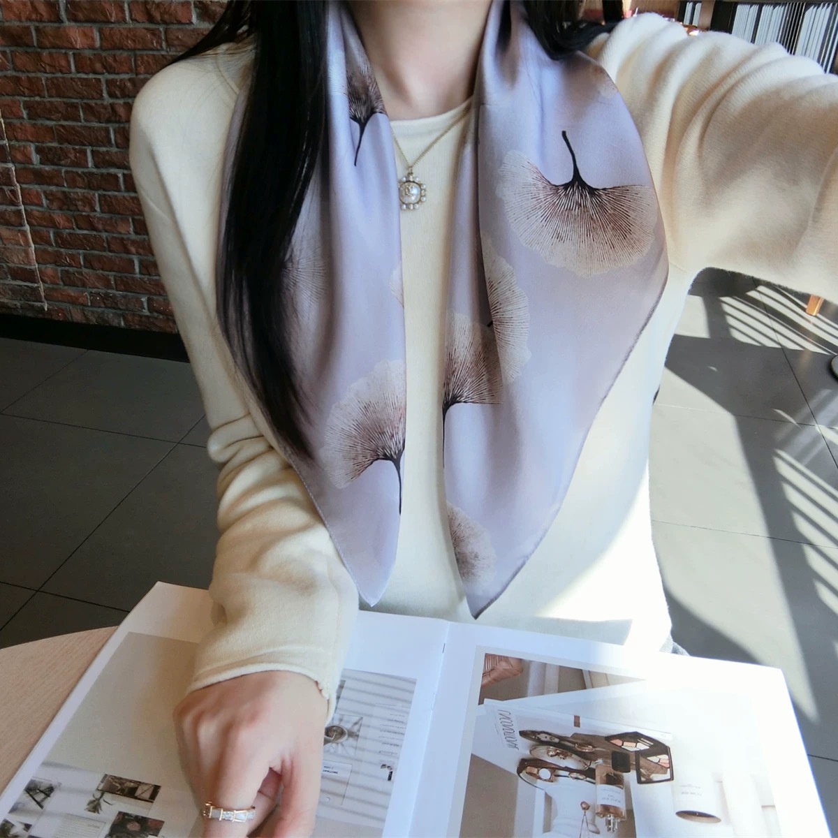 고급 작은 실크 스카프 한국 세련된 봄과 가을 장식 70 스퀘어 스카프 넥타이 헤어 넥타이 백 얇은 인쇄 스카프스토어 가기
