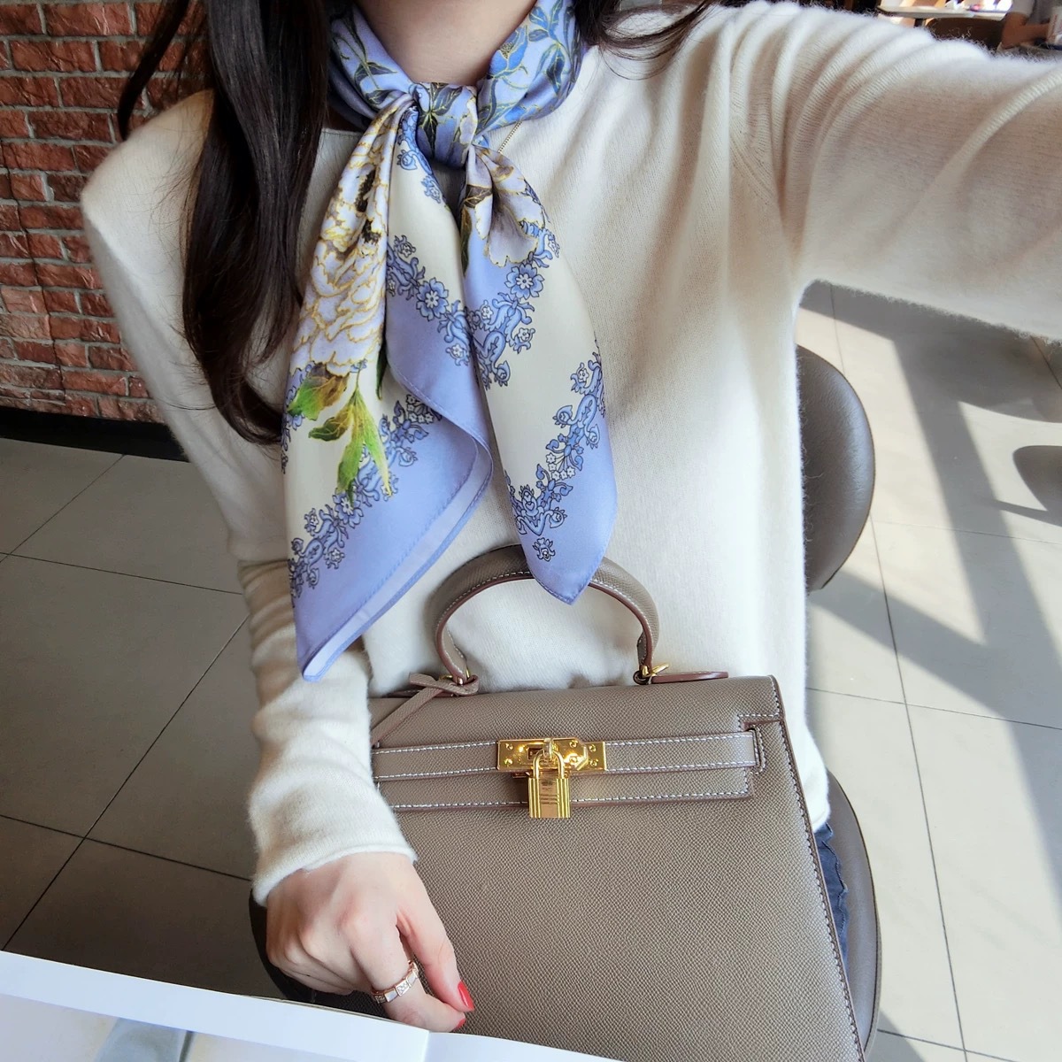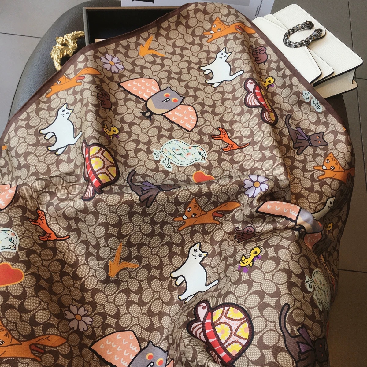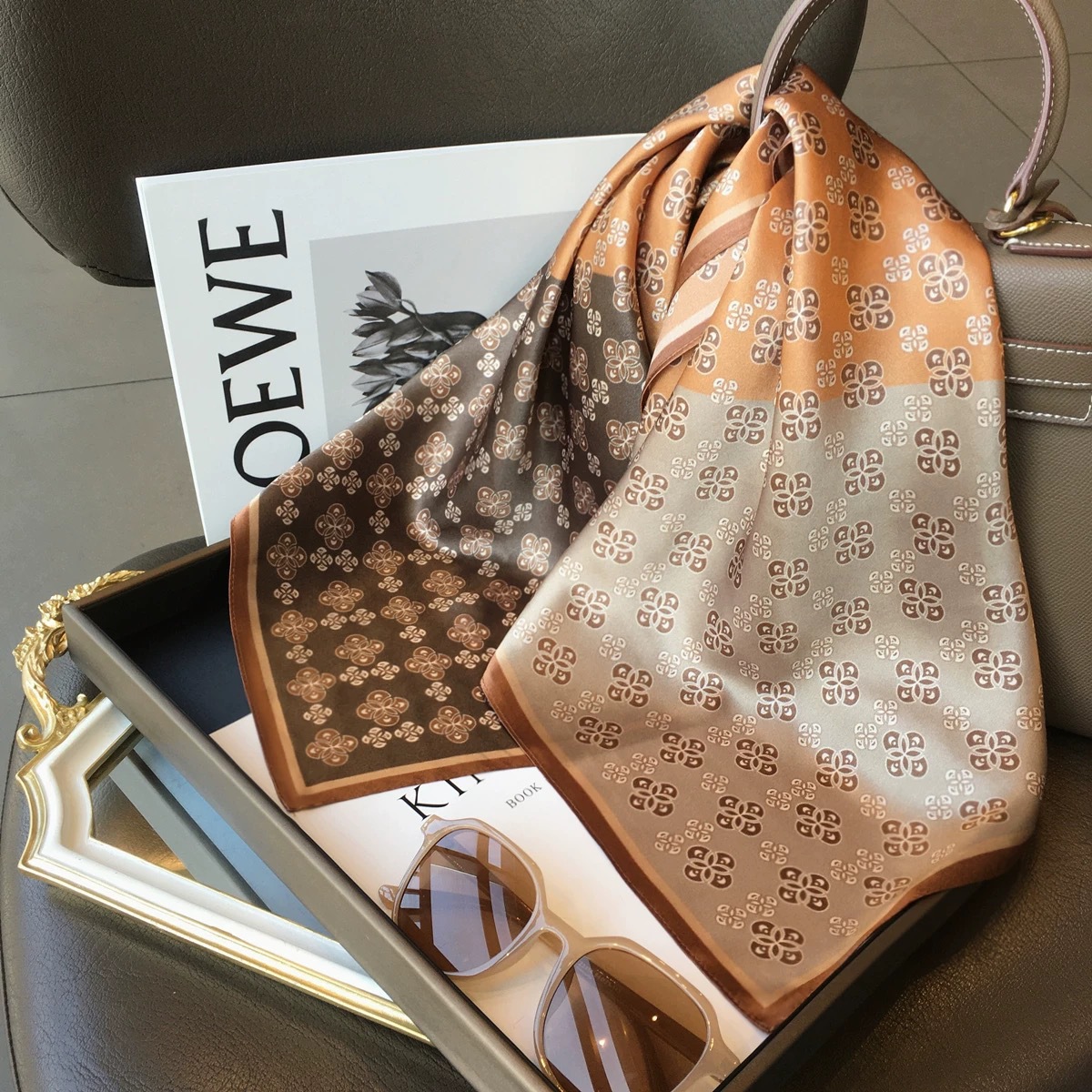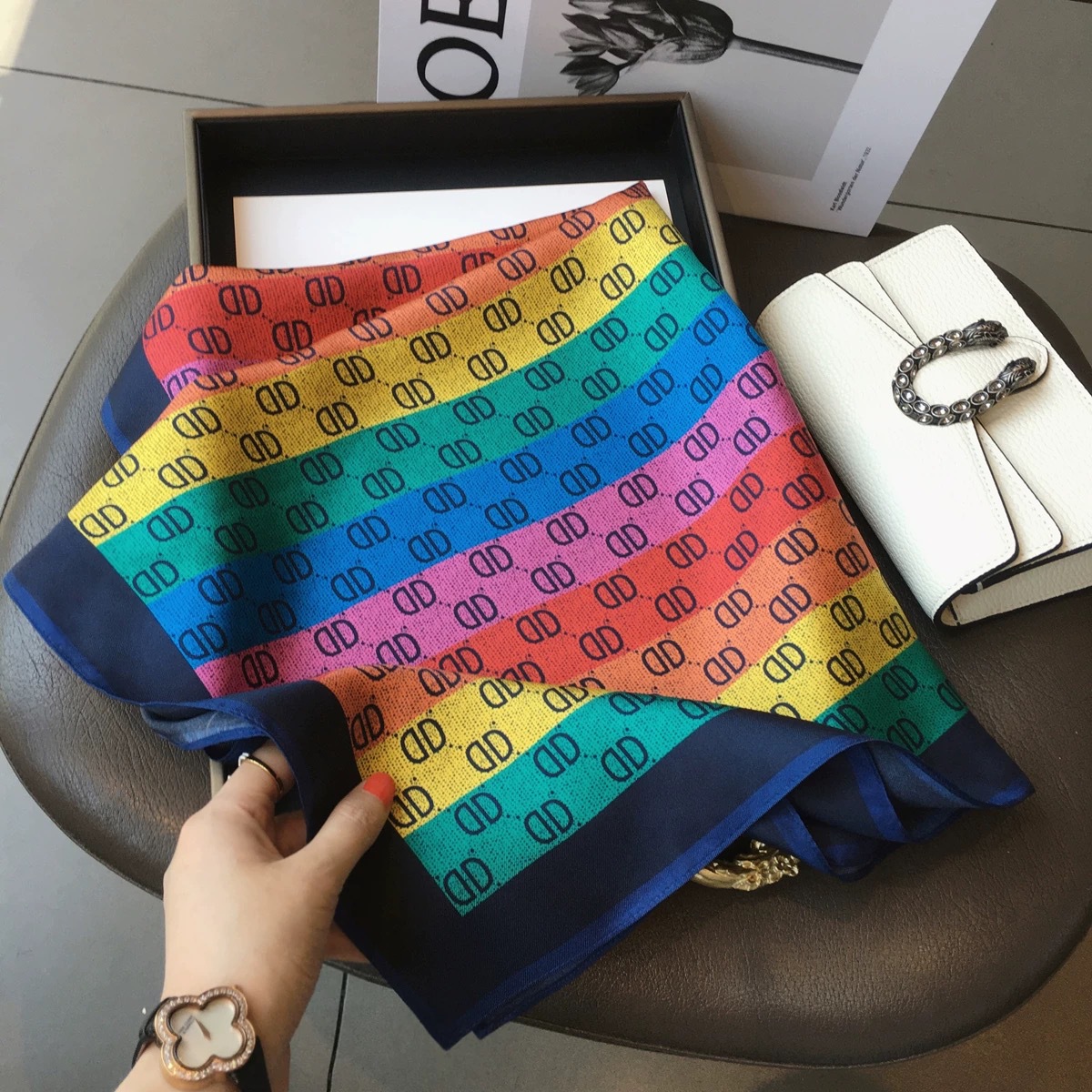 고급 작은 실크 스카프 한국 세련된 봄과 가을 장식 70 스퀘어 스카프 넥타이 헤어 넥타이 백 얇은 인쇄 스카프스토어 가기