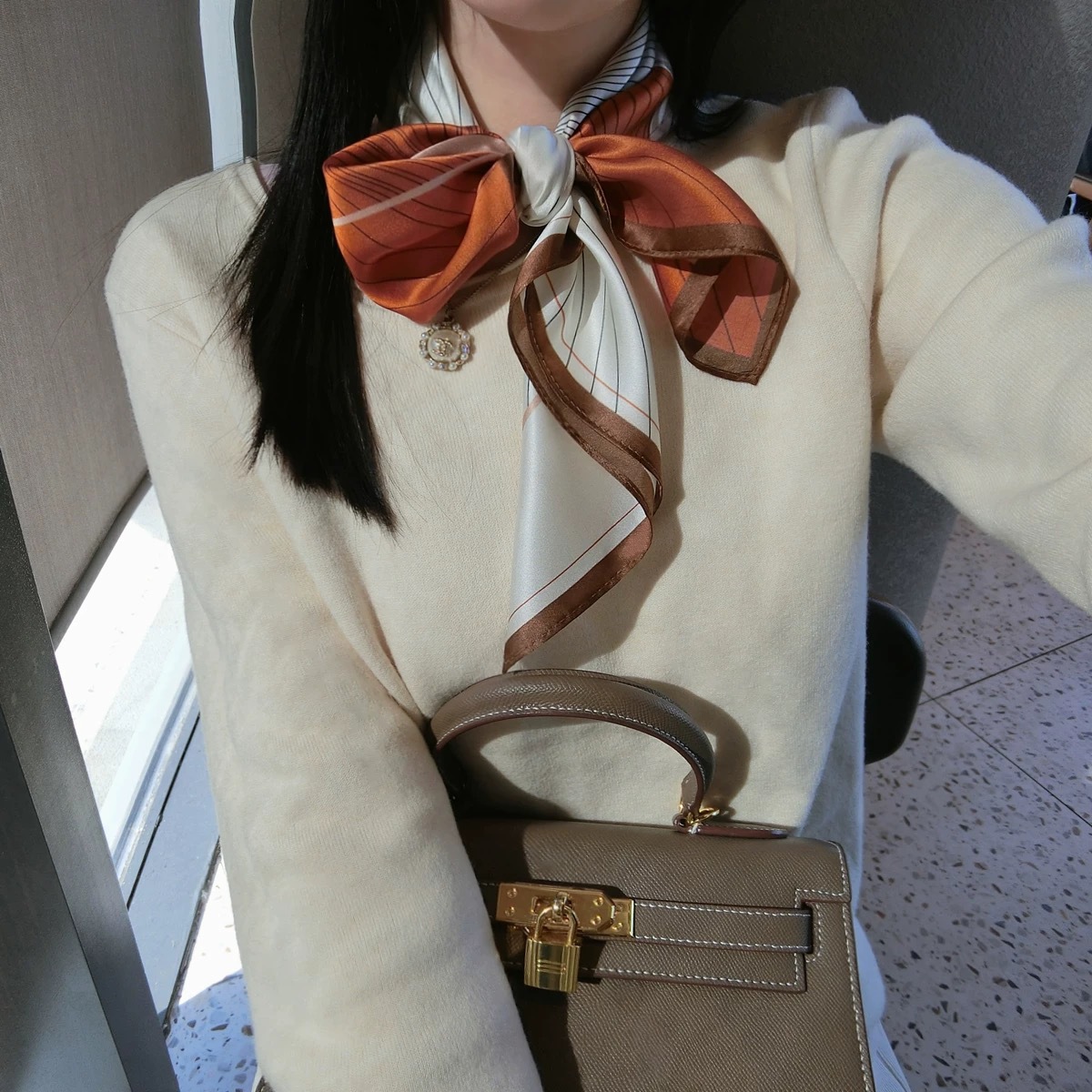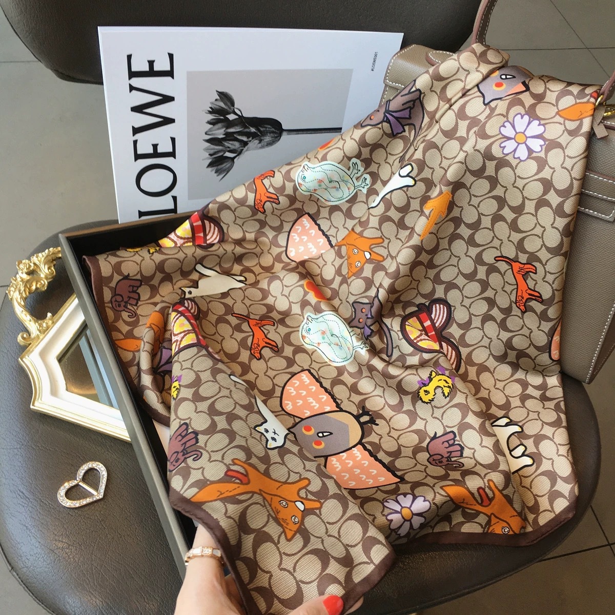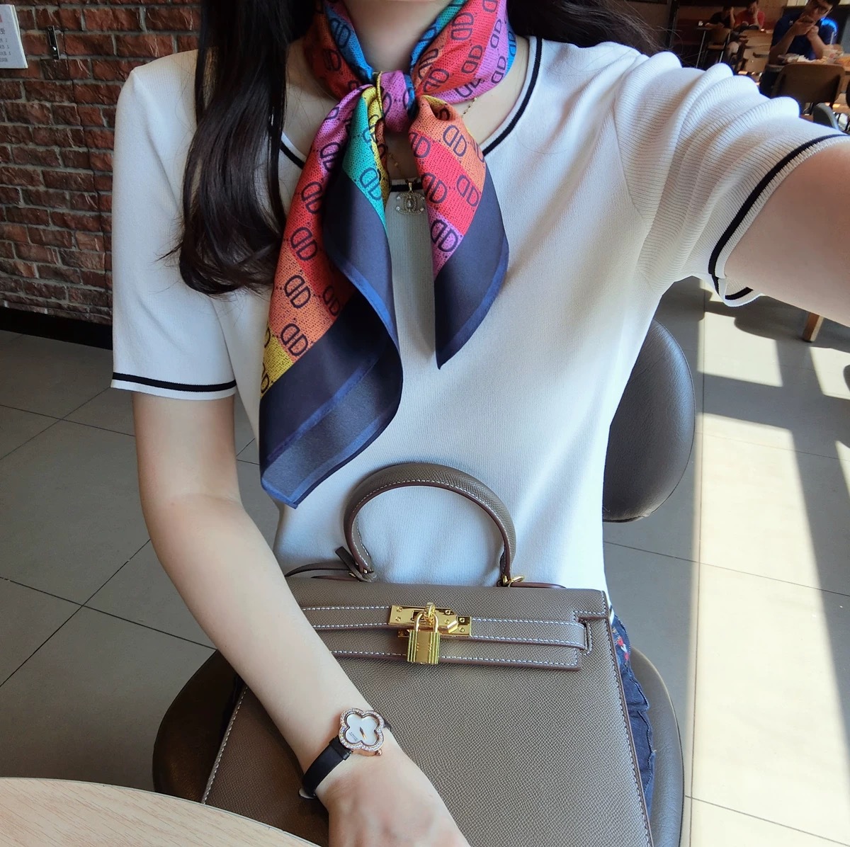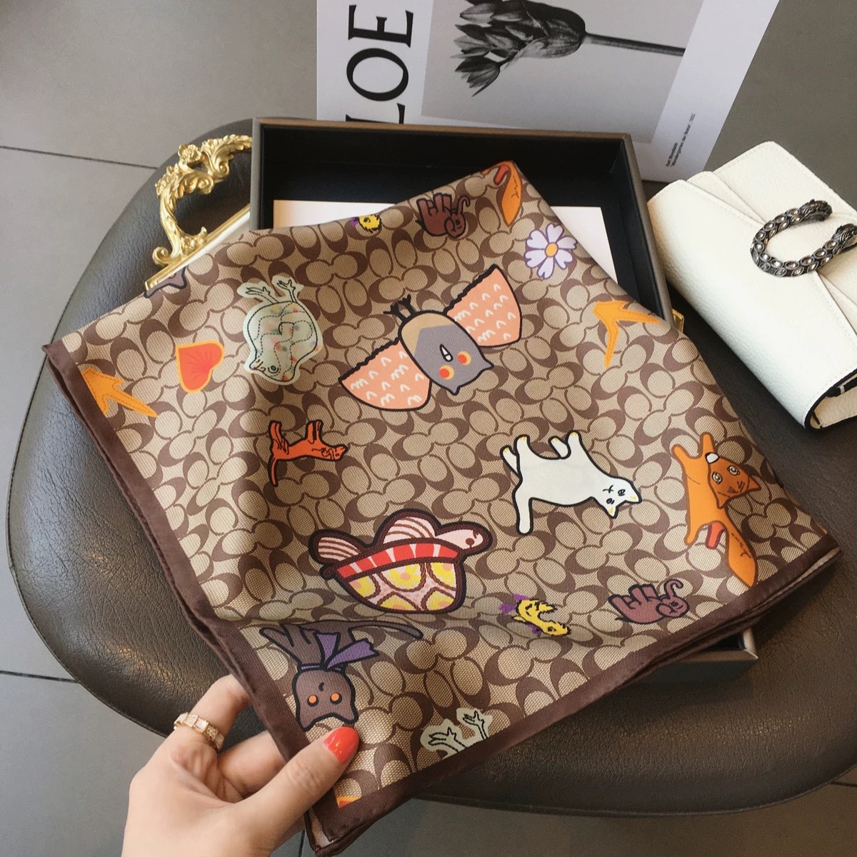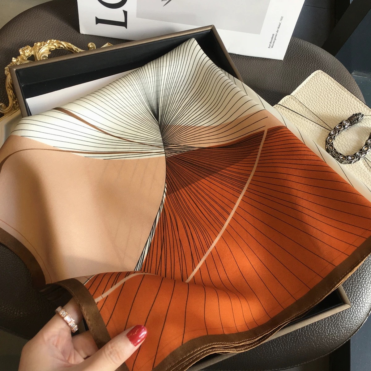 고급 작은 실크 스카프 한국 세련된 봄과 가을 장식 70 스퀘어 스카프 넥타이 헤어 넥타이 백 얇은 인쇄 스카프스토어 가기