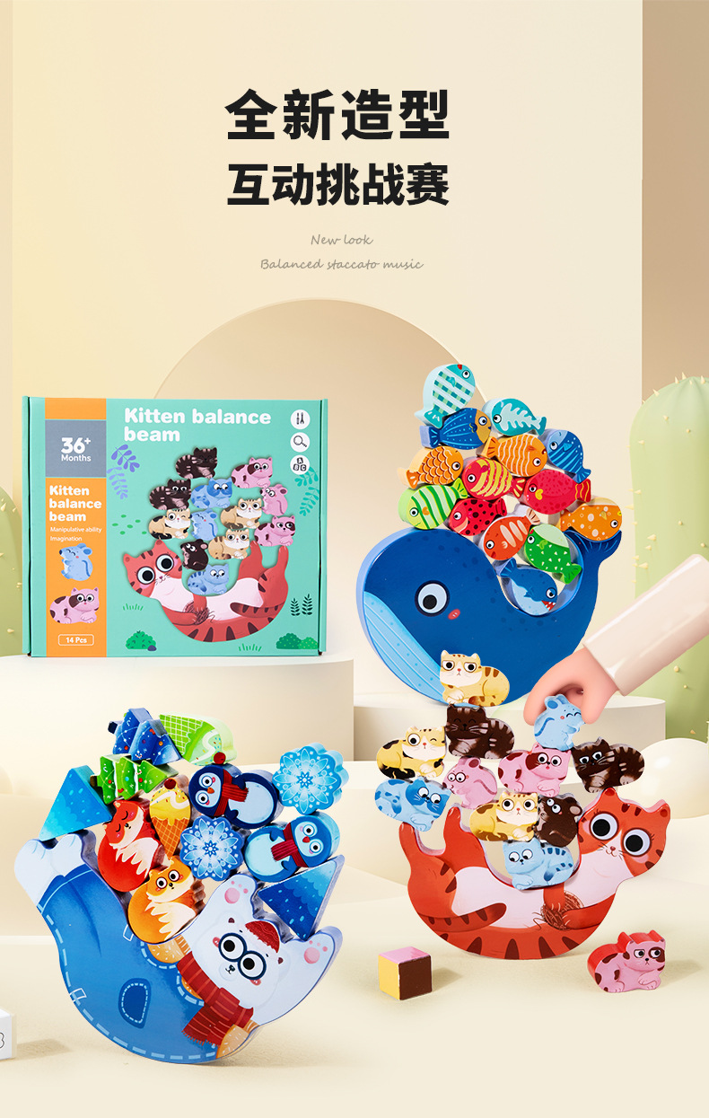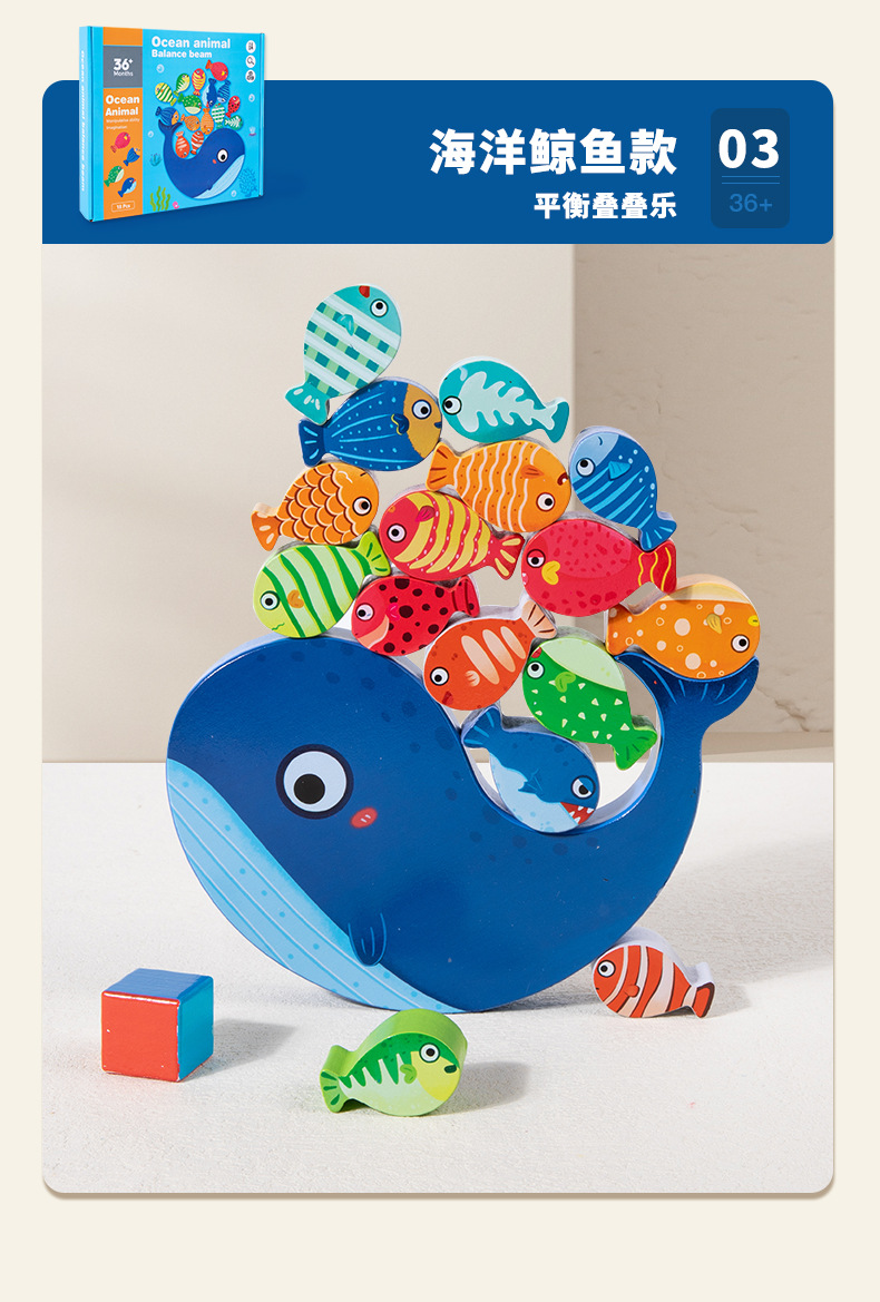 어린이 교육 창조적 인 해양 동물 균형 스태킹 데스크탑 대화 형 건물 블록 쌓기 나무 쌓기 높은 장난감스토어 가기
