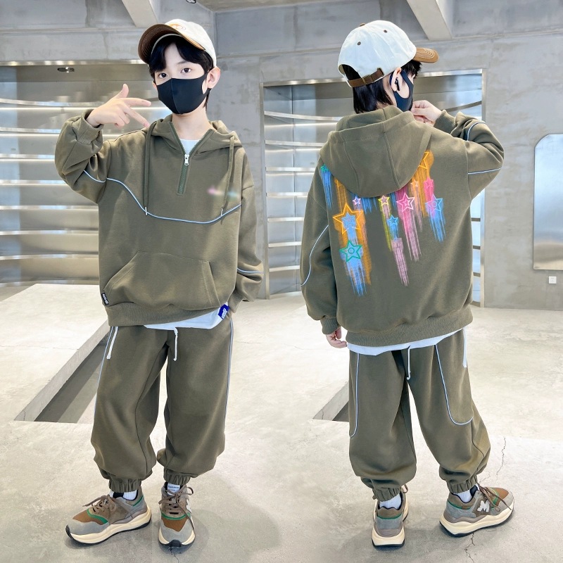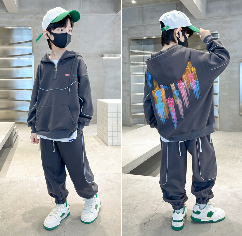 남아 스웨트셔츠 세트 봄 가을 2026 신상 중대형 아동용 봄 스포츠복 남아 봄옷 멋스럽고 트렌디하다스토어 가기