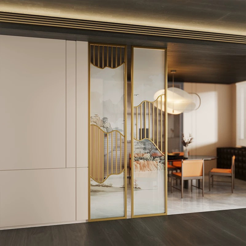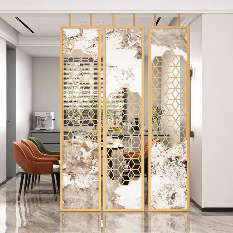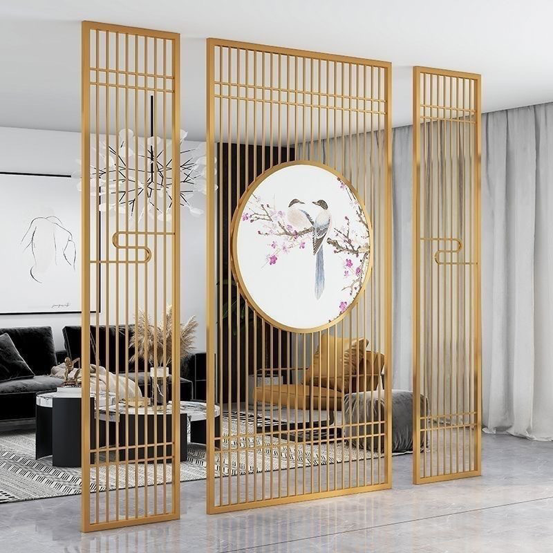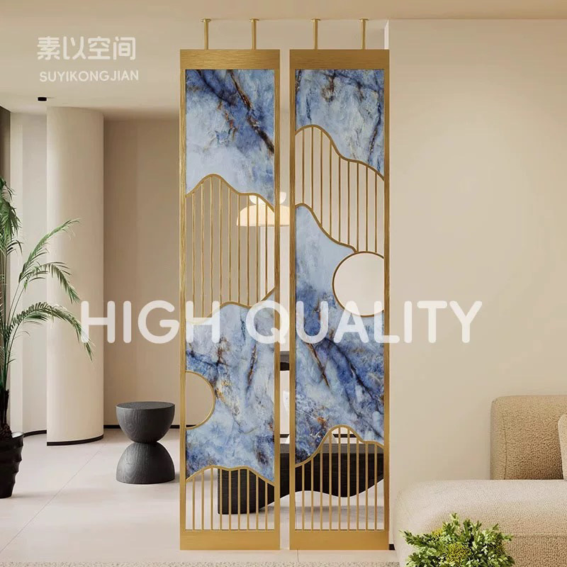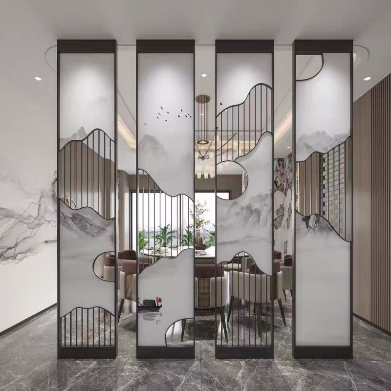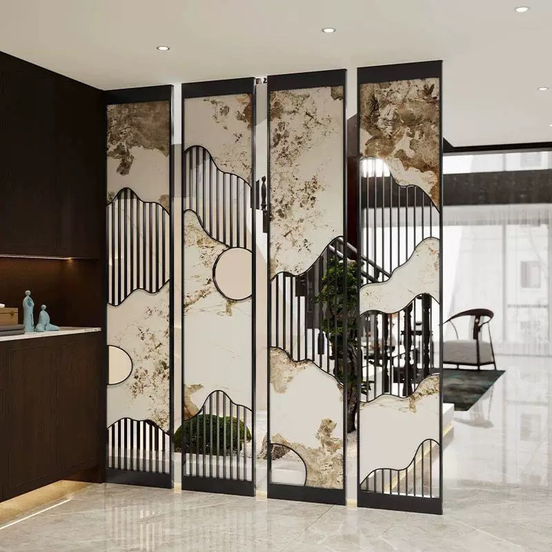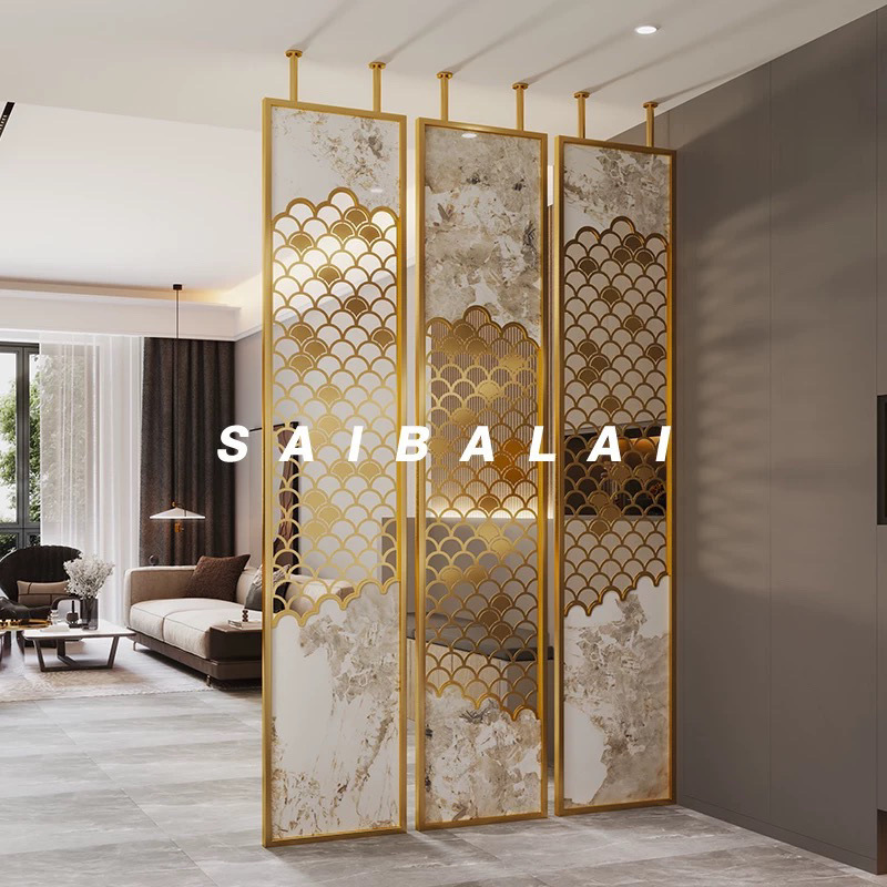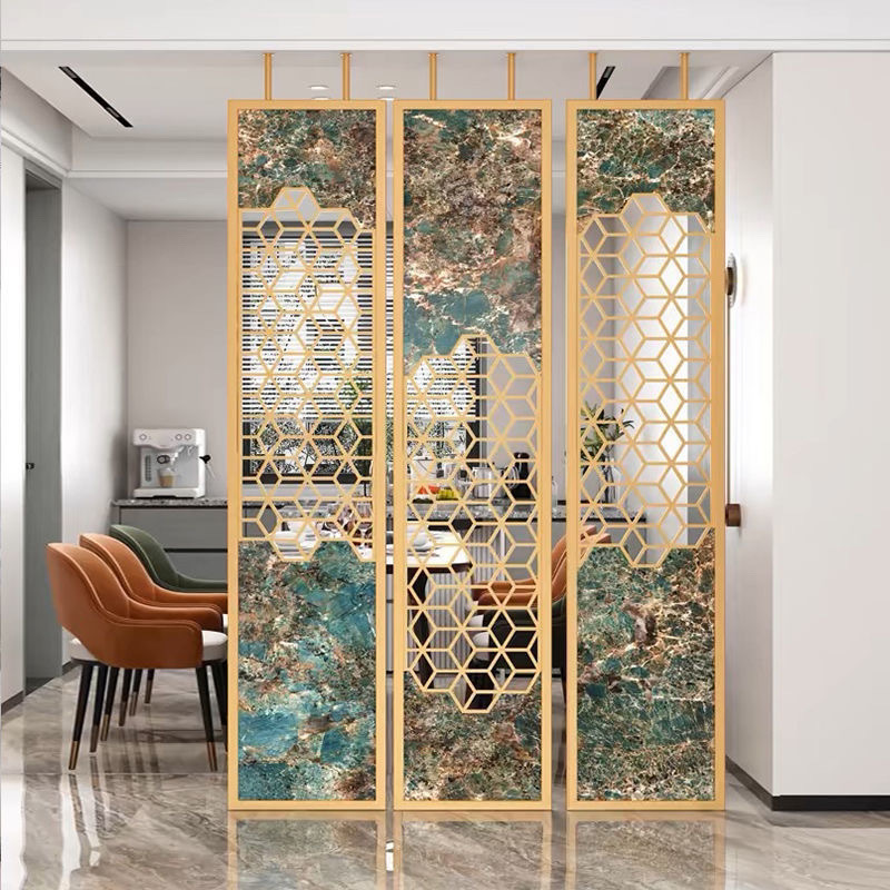 현대 간단한 빛 럭셔리 중공 현관 직접 입구 문 스테인레스 스틸 스크린 거실 높은 블록