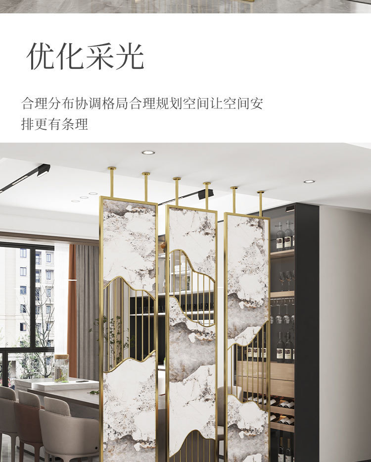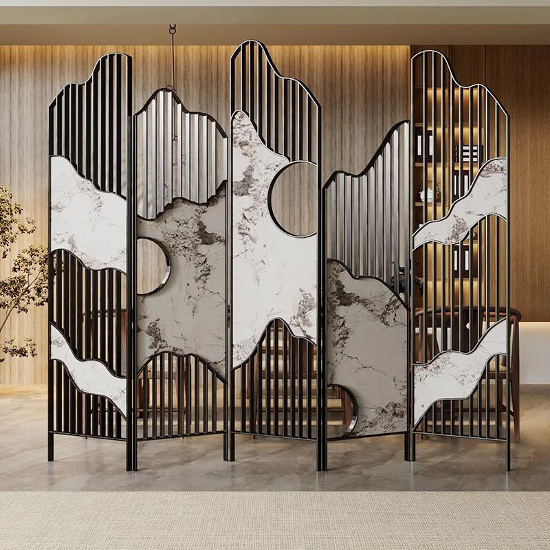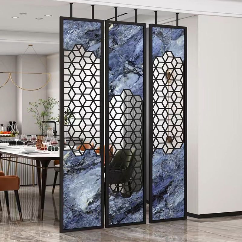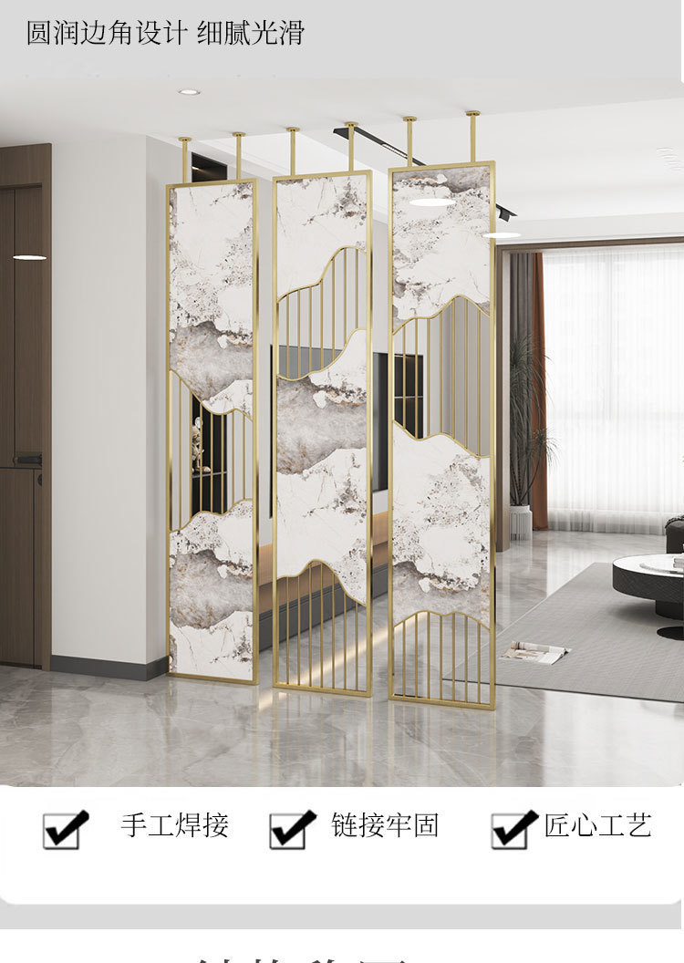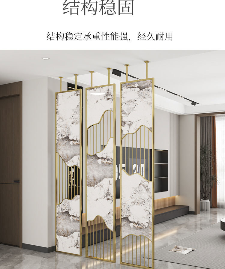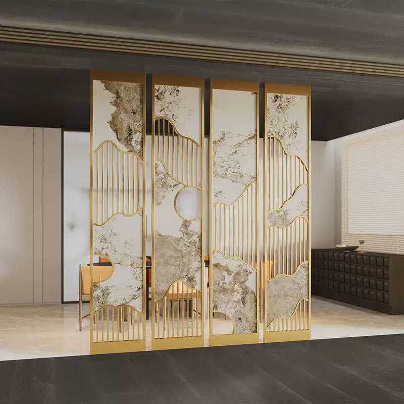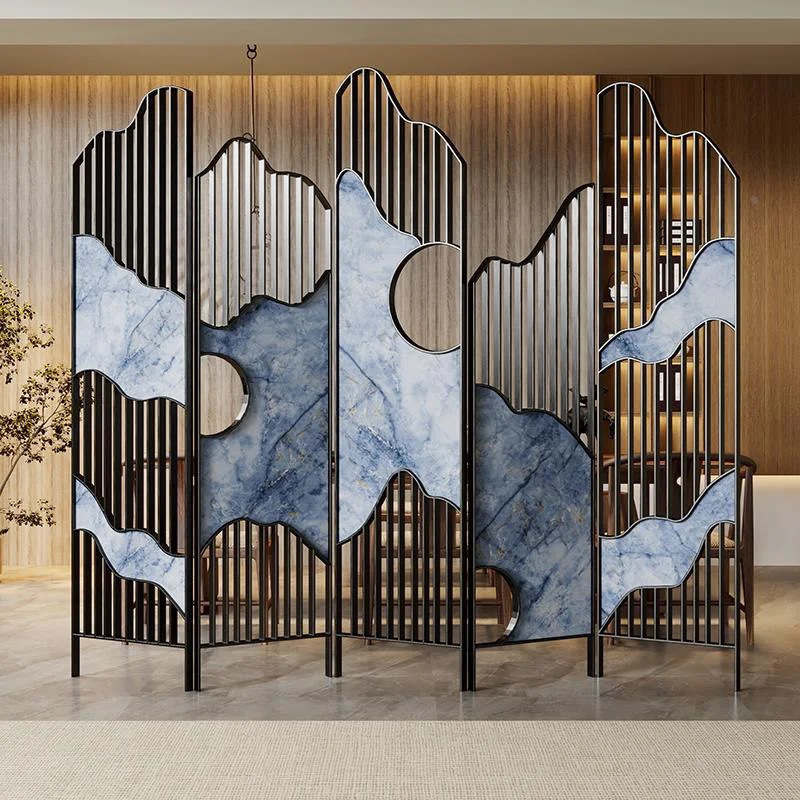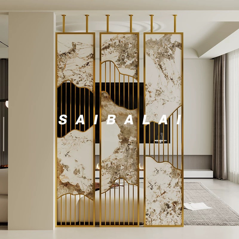 현대 간단한 빛 럭셔리 중공 현관 직접 입구 문 스테인레스 스틸 스크린 거실 높은 블록