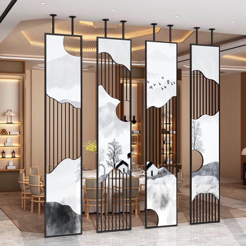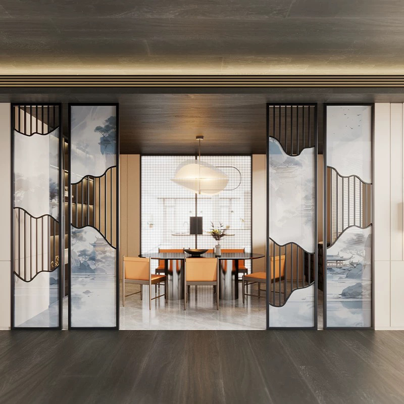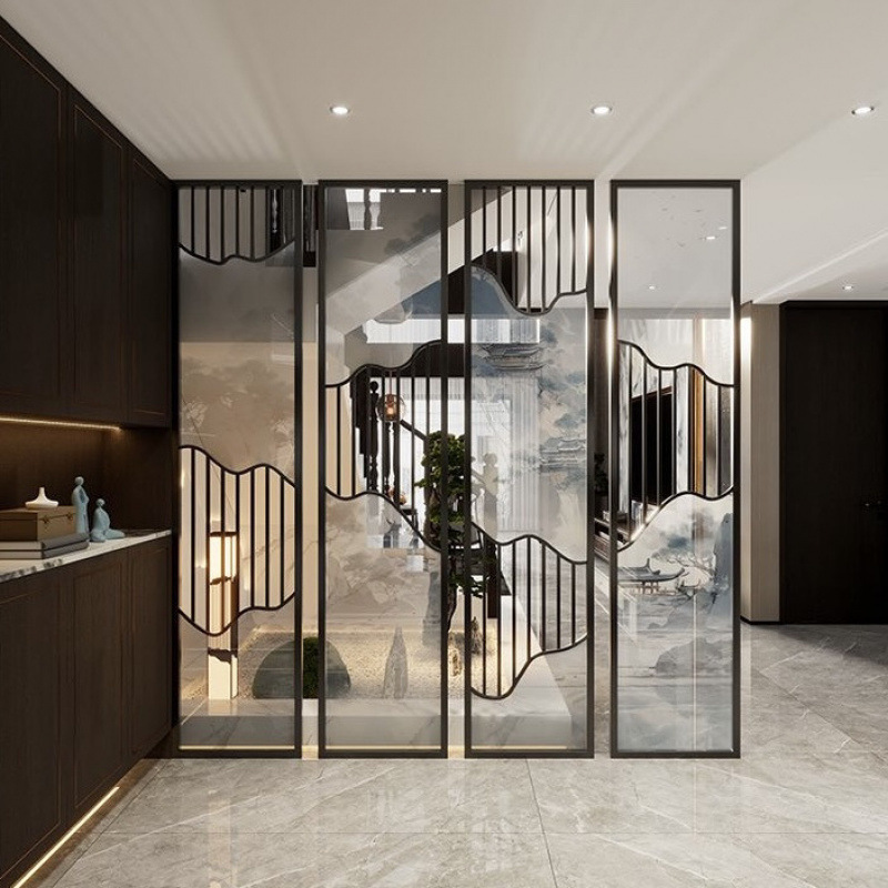 현대 간단한 빛 럭셔리 중공 현관 직접 입구 문 스테인레스 스틸 스크린 거실 높은 블록스토어 가기