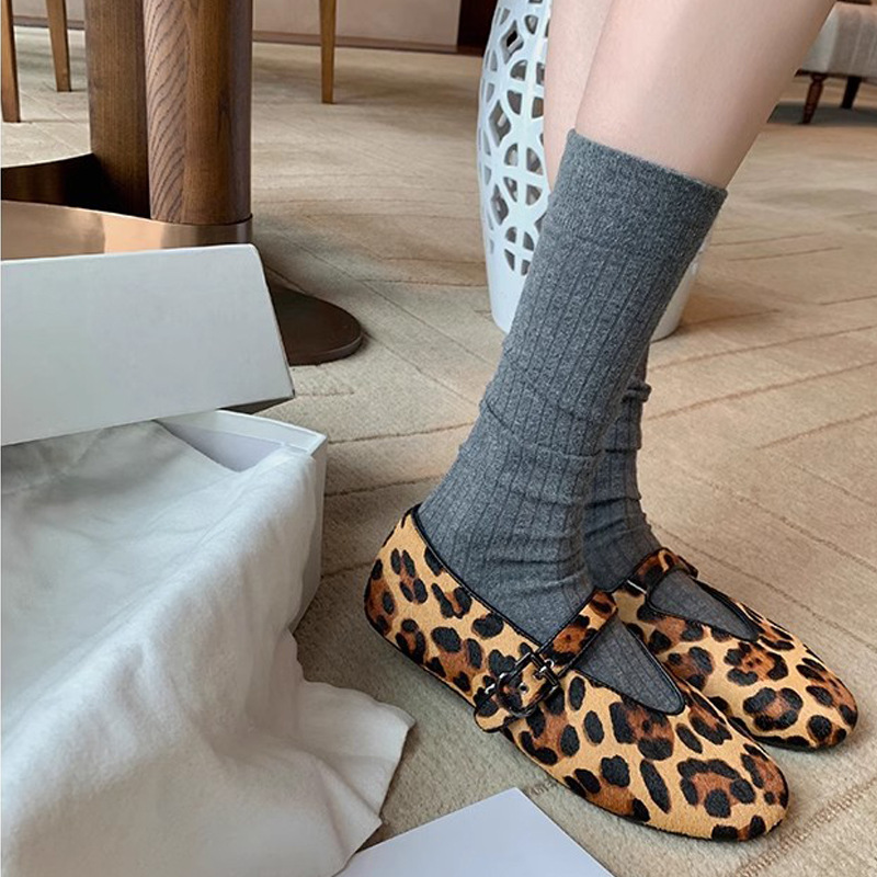 포도엄마의 봄신상~ 레오파드 프린트 연령감소 라운드토 플랫슈즈 레오파드 프린트 여성 메리제인 슈즈