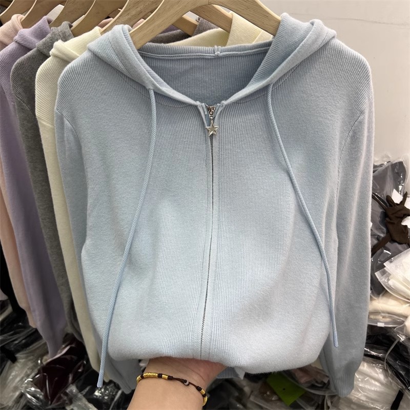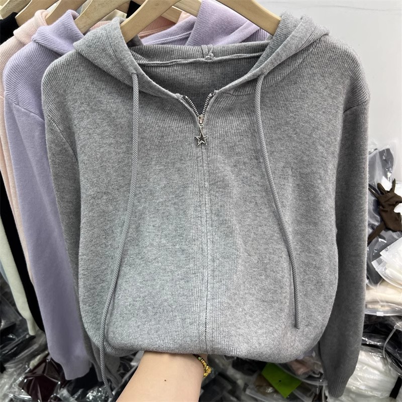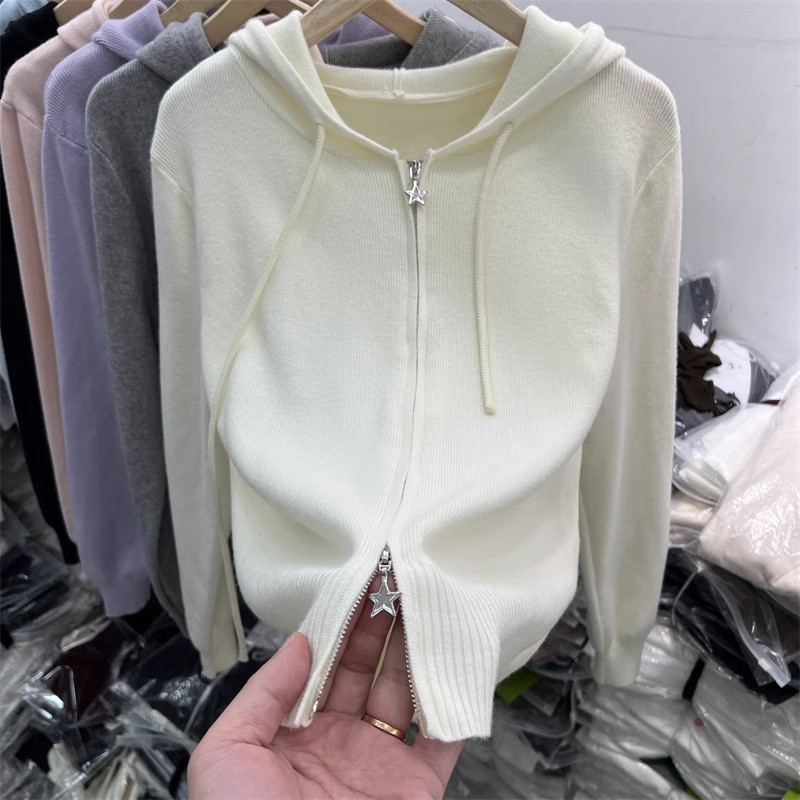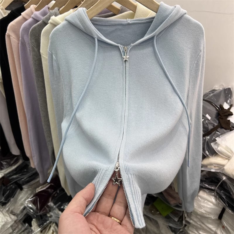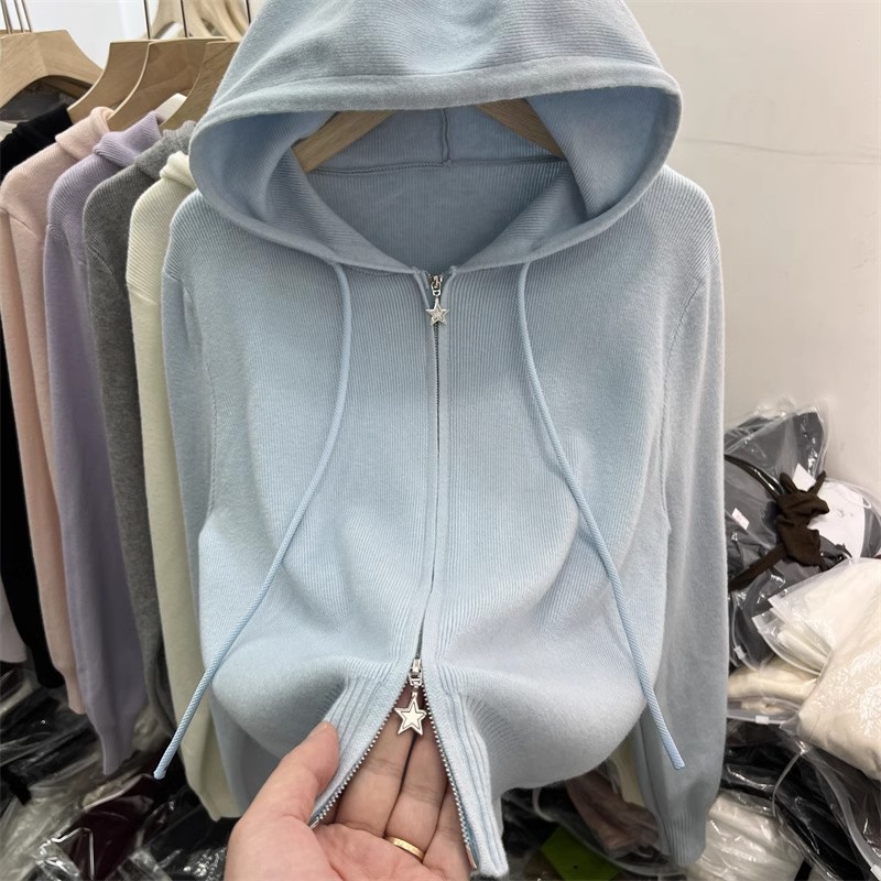 더블 지퍼 긴팔 니트 가디건 여성 상의 2026년 초봄 신상 캐주얼 스타일리쉬 아우터 후드 스웨터스토어 가기