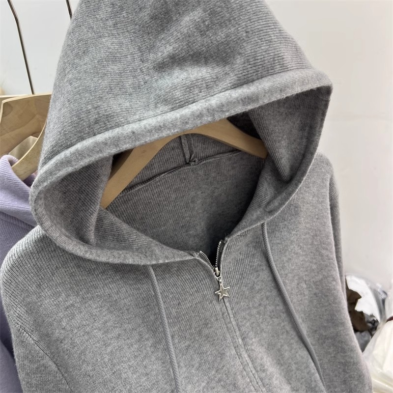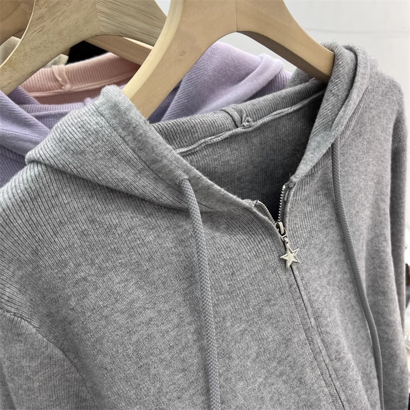 더블 지퍼 긴팔 니트 가디건 여성 상의 2026년 초봄 신상 캐주얼 스타일리쉬 아우터 후드 스웨터
