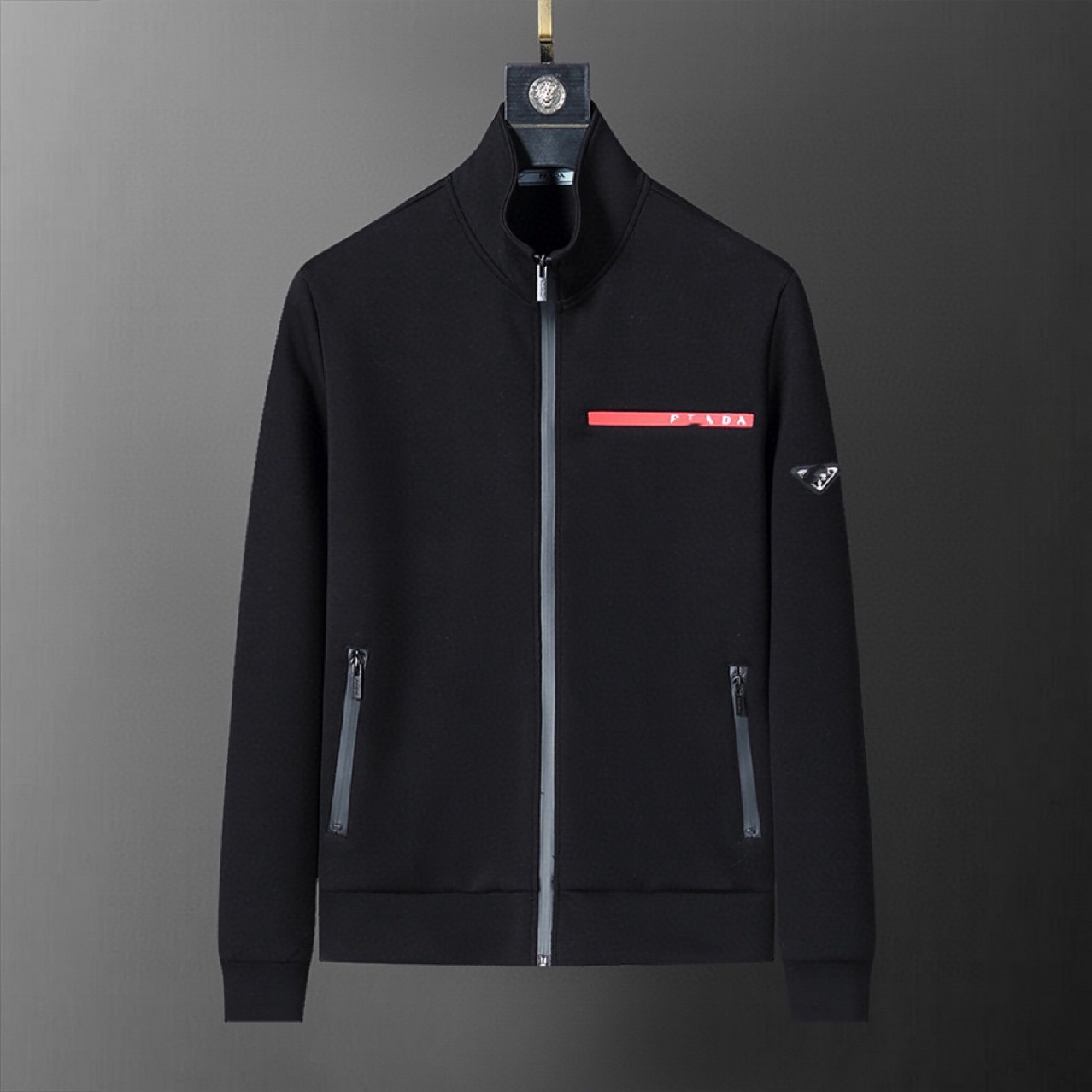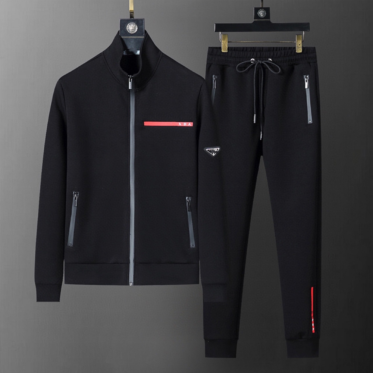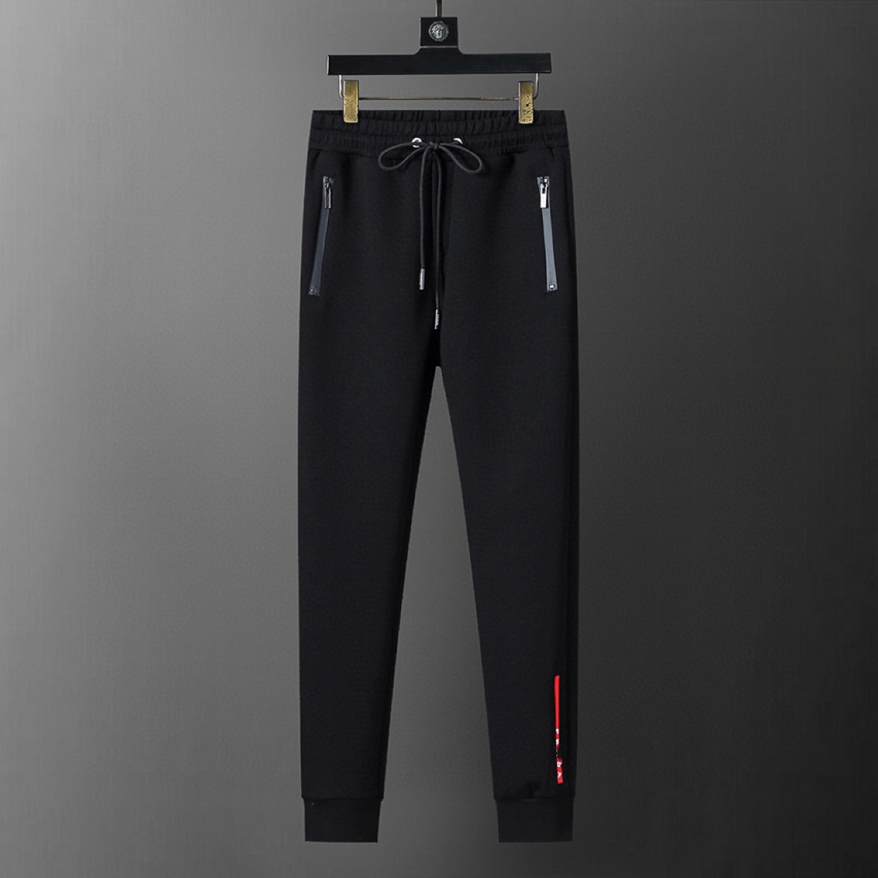 유럽과 미국의 트렌디 브랜드 PA 남성용 긴팔 바지 캐주얼 스포츠 슈트 클래식 오디오 트라이앵글 라벨 바지 빨간색 스트립스토어 가기