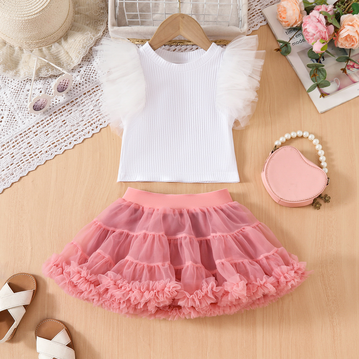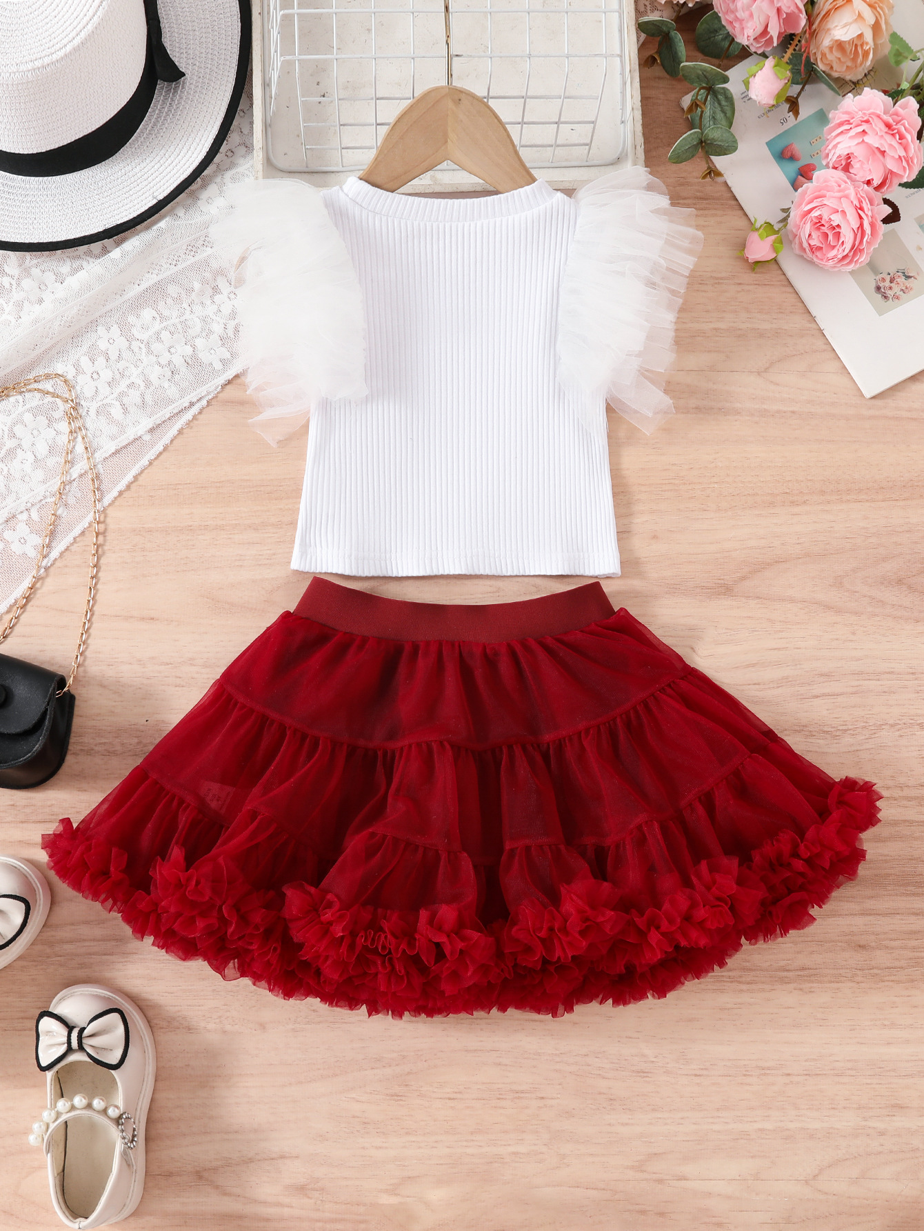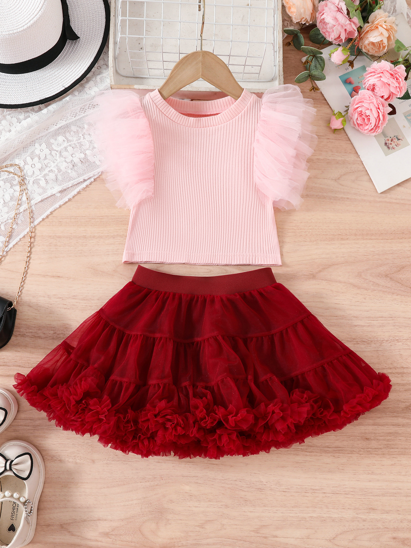 국경 간 새로운 투투 스커트 중소 소녀 생일 올 매치 공주 스커트 메쉬 비행 소매 티셔츠 TUTU 스커트 세트