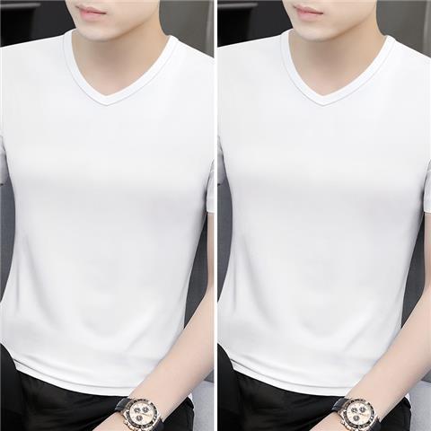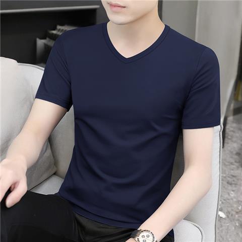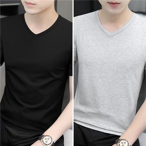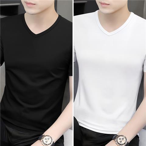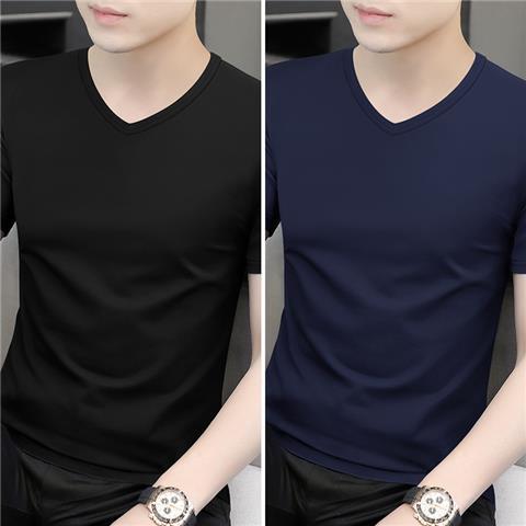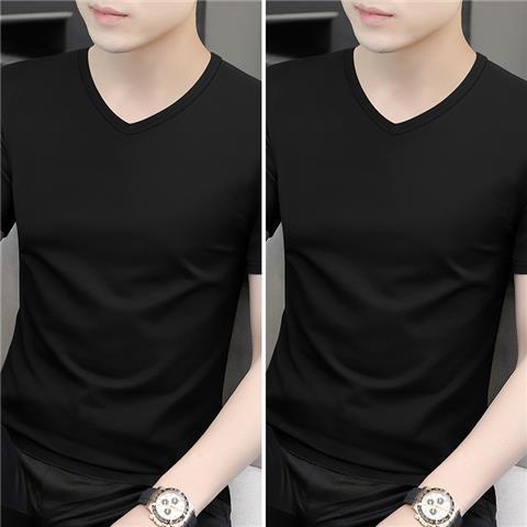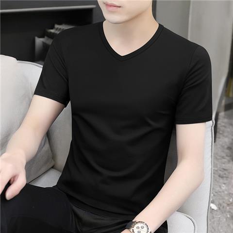 반팔 티셔츠 남성용 V 넥 솔리드 컬러 올 블랙 여름 트렌디 남성용 아이스 느낌 슬림 핏 트렌디 슬림 핏 반소매 베이스 셔츠
