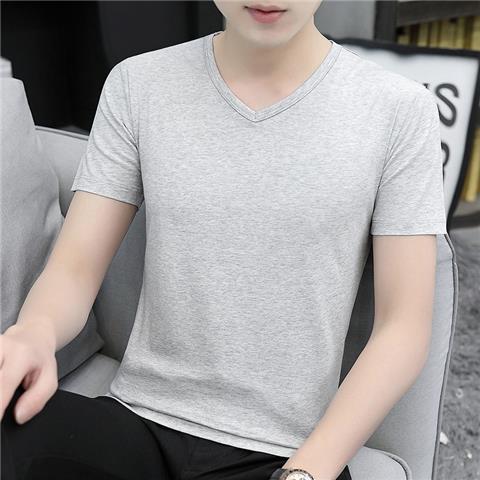 반팔 티셔츠 남성용 V 넥 솔리드 컬러 올 블랙 여름 트렌디 남성용 아이스 느낌 슬림 핏 트렌디 슬림 핏 반소매 베이스 셔츠스토어 가기