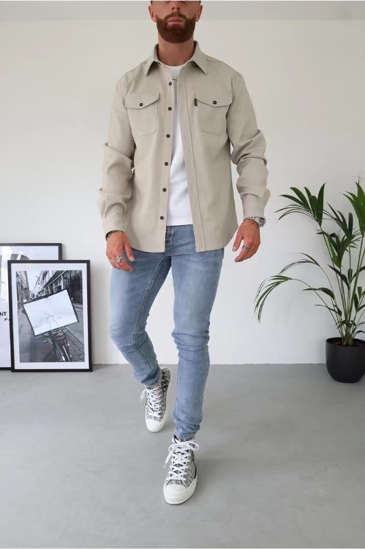 2023 년 아마존 가을/겨울 새로운 유럽과 미국의 남성 캐주얼 남성 셔츠 재고 샌딩