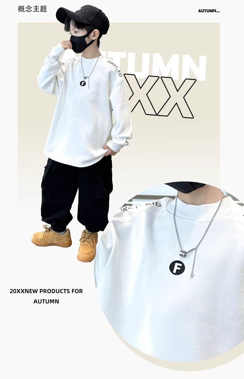 남학생 바지 셔츠 봄 가을 겨울 2025 새 봄 큰 어린이 단색 긴 소매 티셔츠 봄 올 매치 t