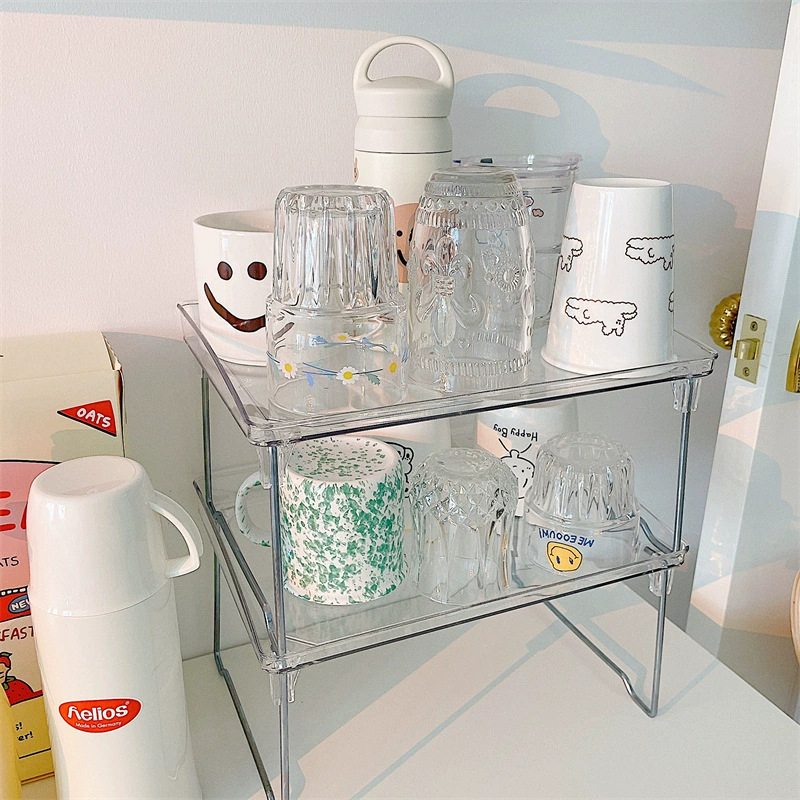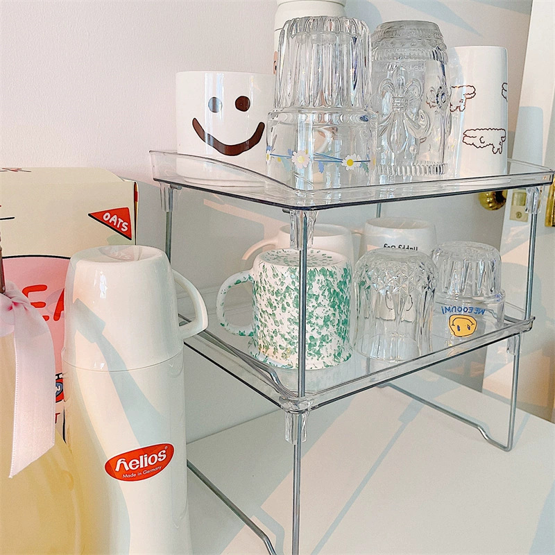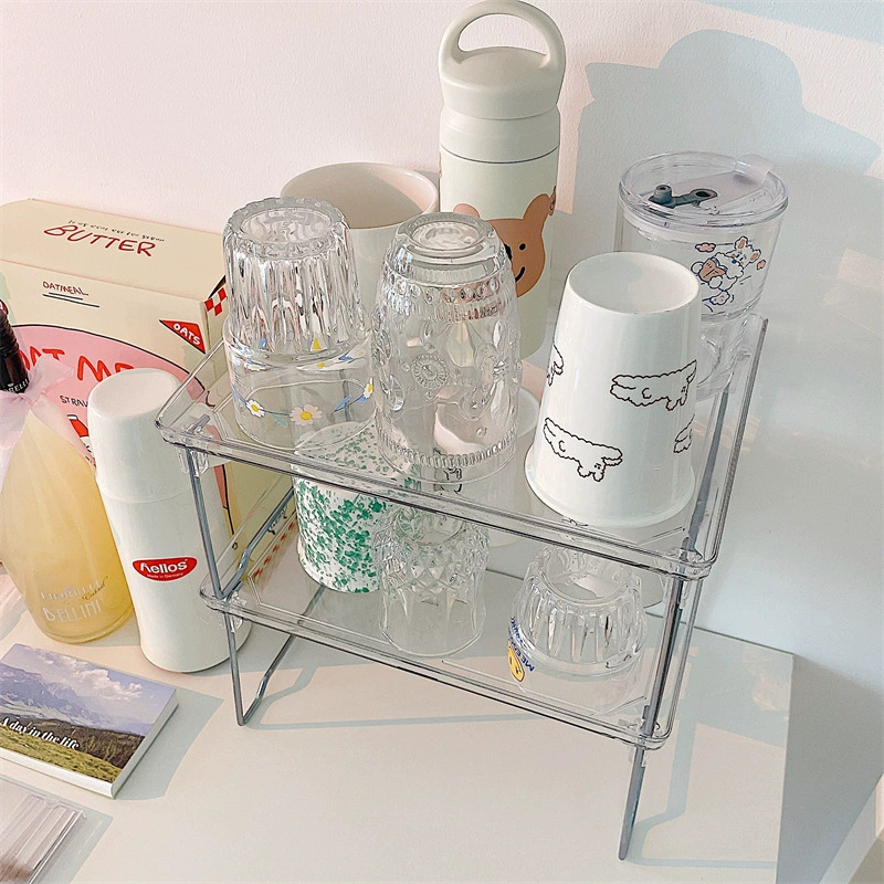 이중층 아크릴 수납 선반 사무실 책상 정리 선반 양념 화장품 잡화 무타공 수납 선반