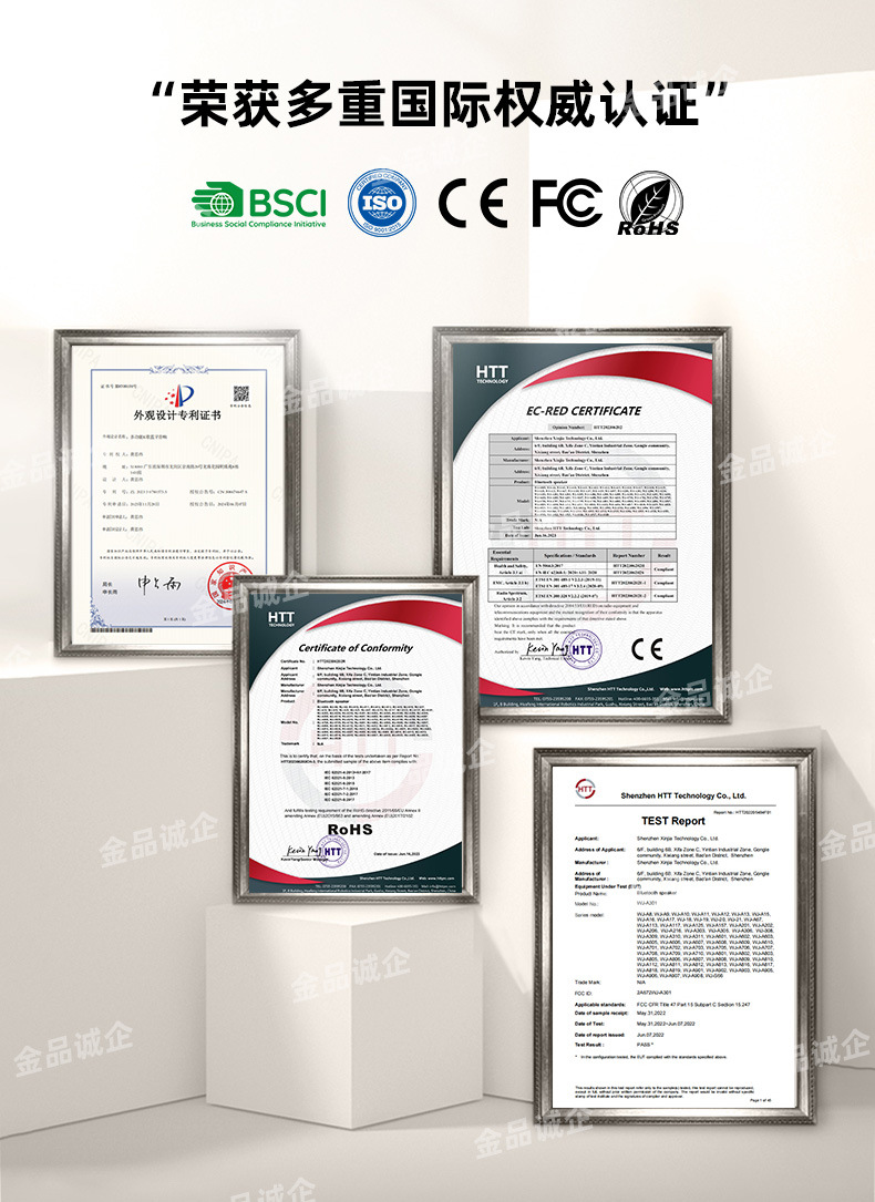 在技术研发上,金品诚企不断投入,与专业声学团队紧密合作,引入先进音频技术,优化蓝牙连接稳定性,提升声音还原度和清晰度,让用户无论是聆听音乐、观看电影还是进行在线会议,都能享受高品质音效。
