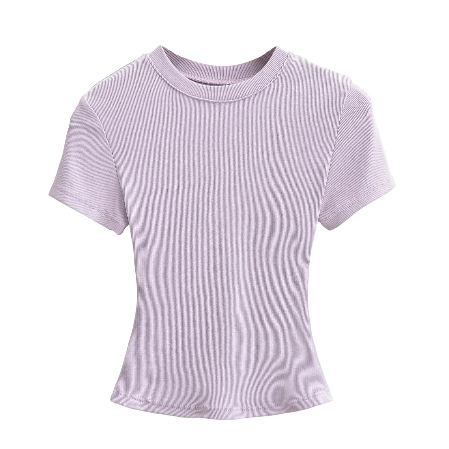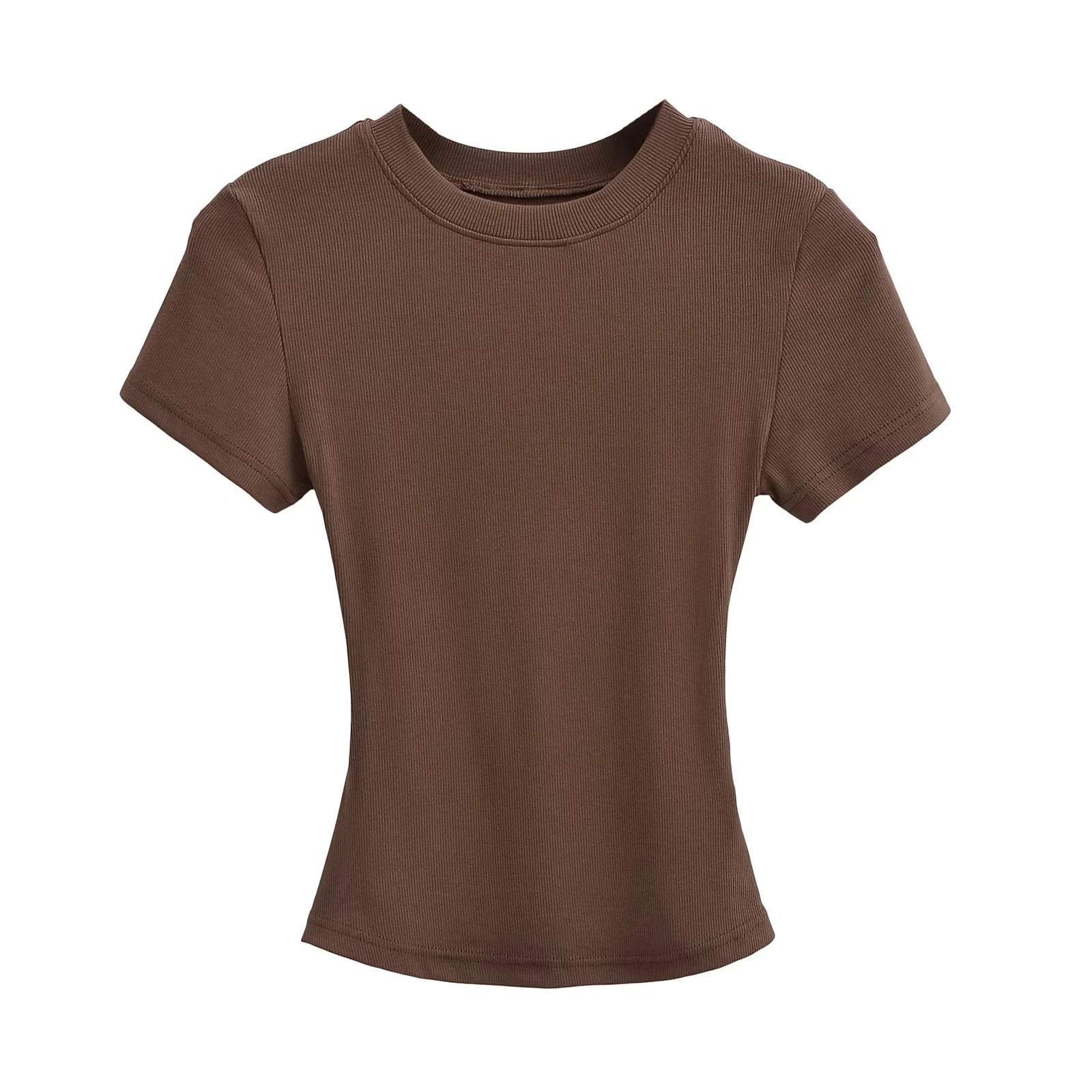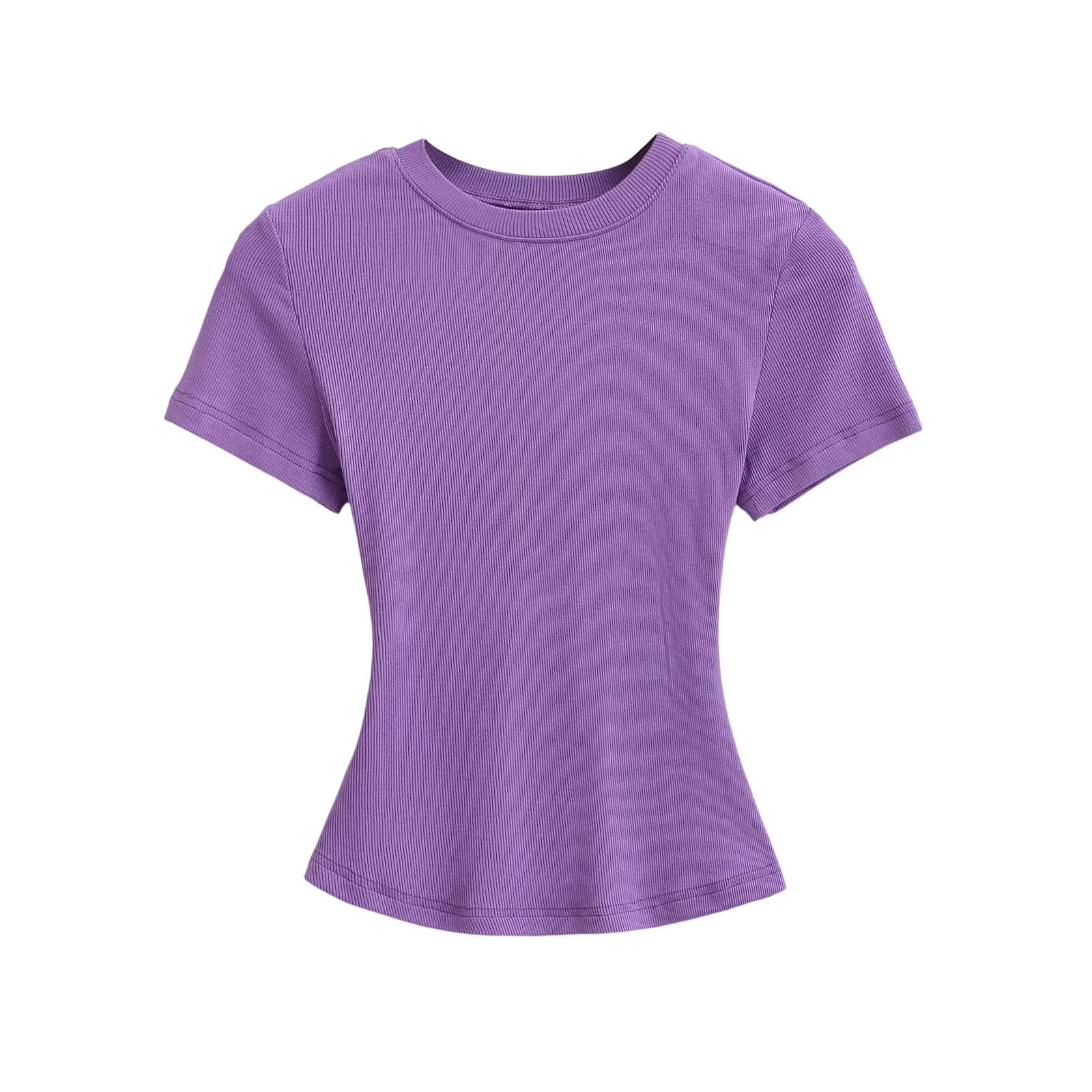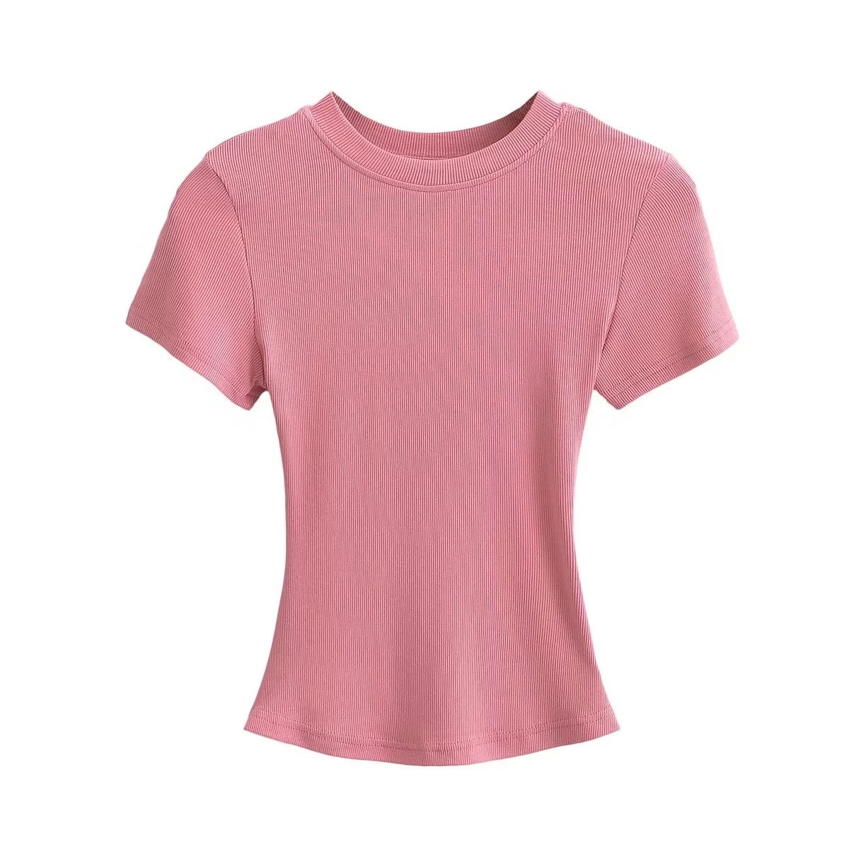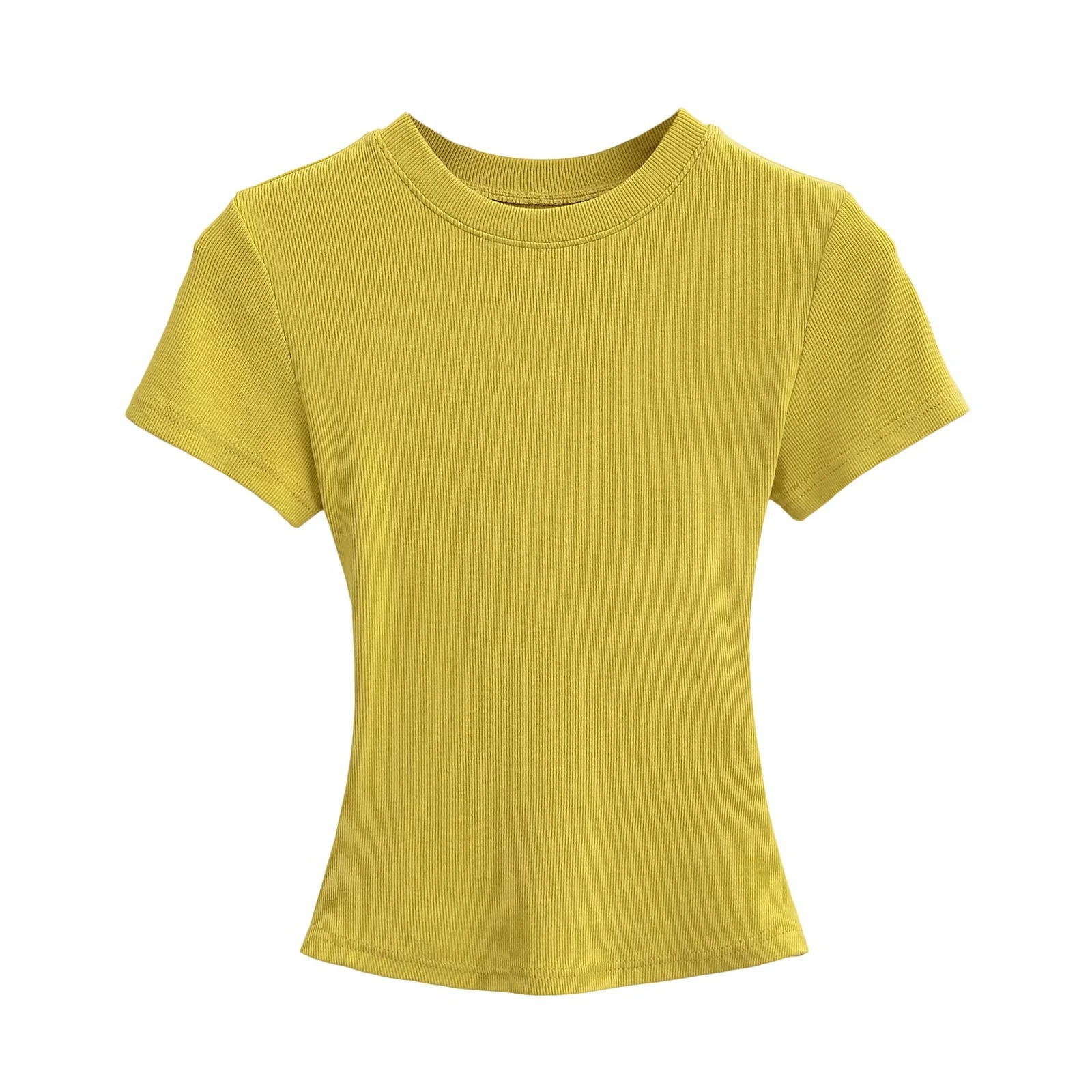 유럽과 미국의 카다시안 스타일 섹시 작은 둥근 목 반팔 티셔츠 여성의 2024 여름 스키 솔리드 컬러베이스 스레드 탑스토어 가기