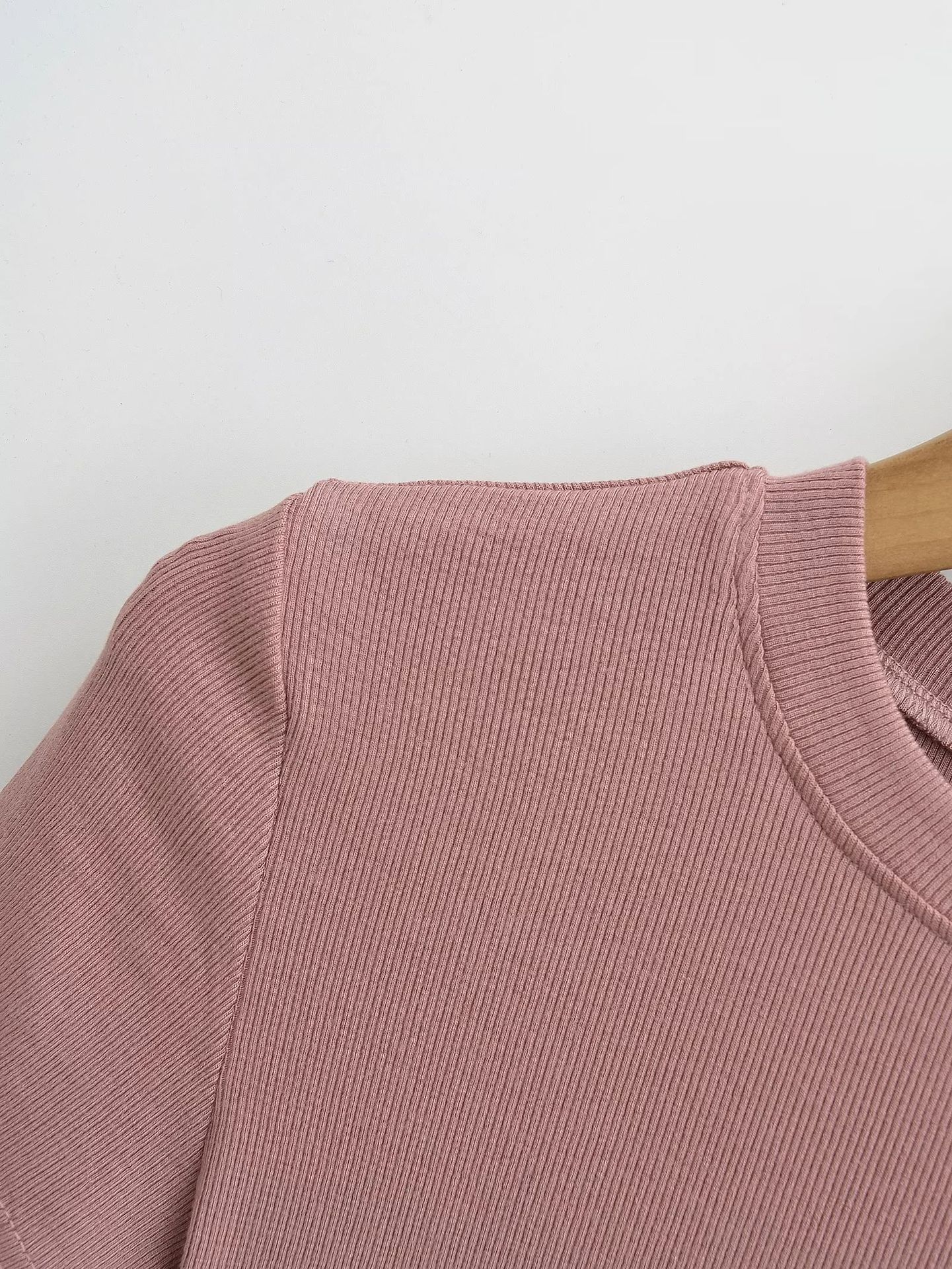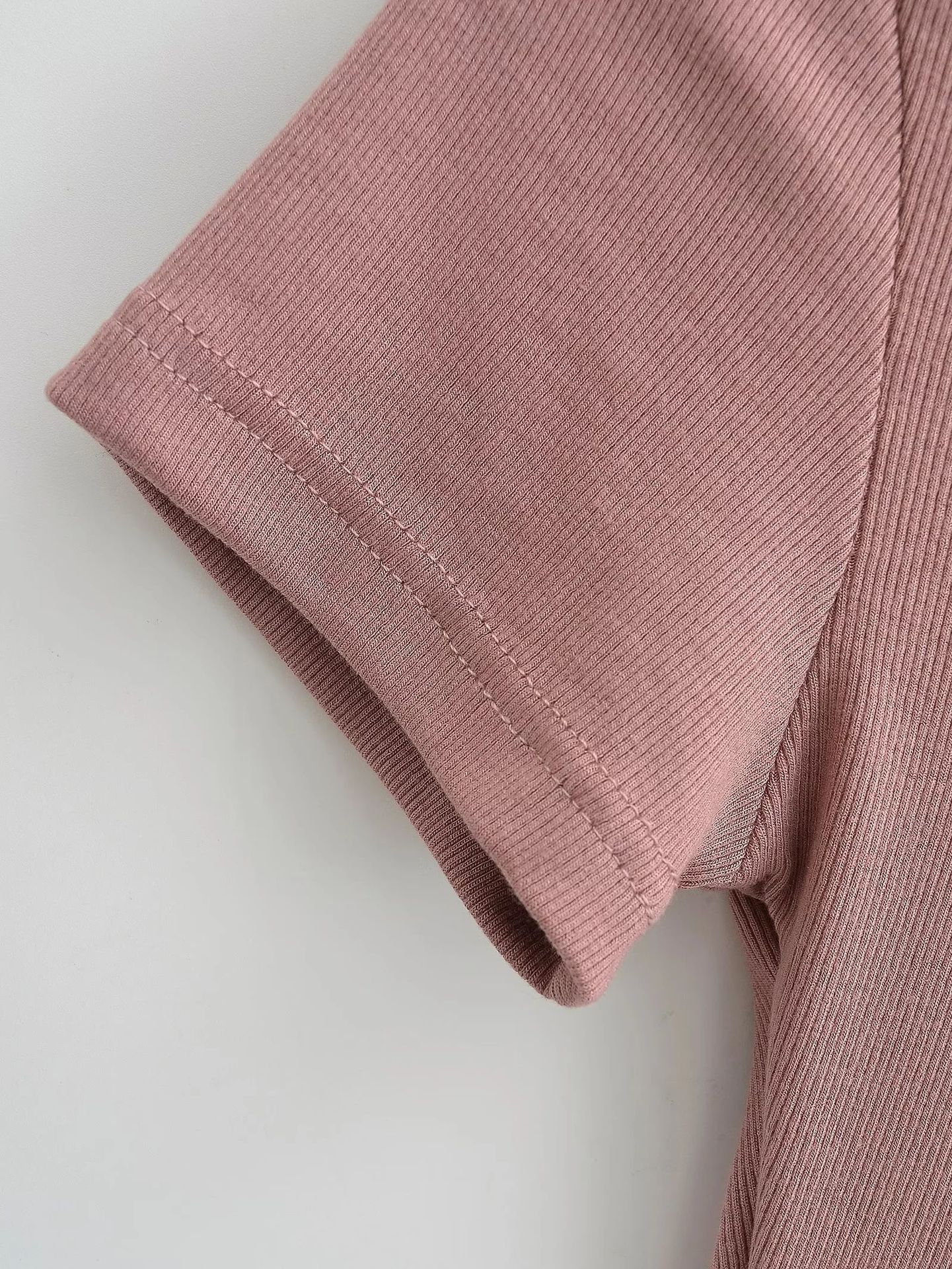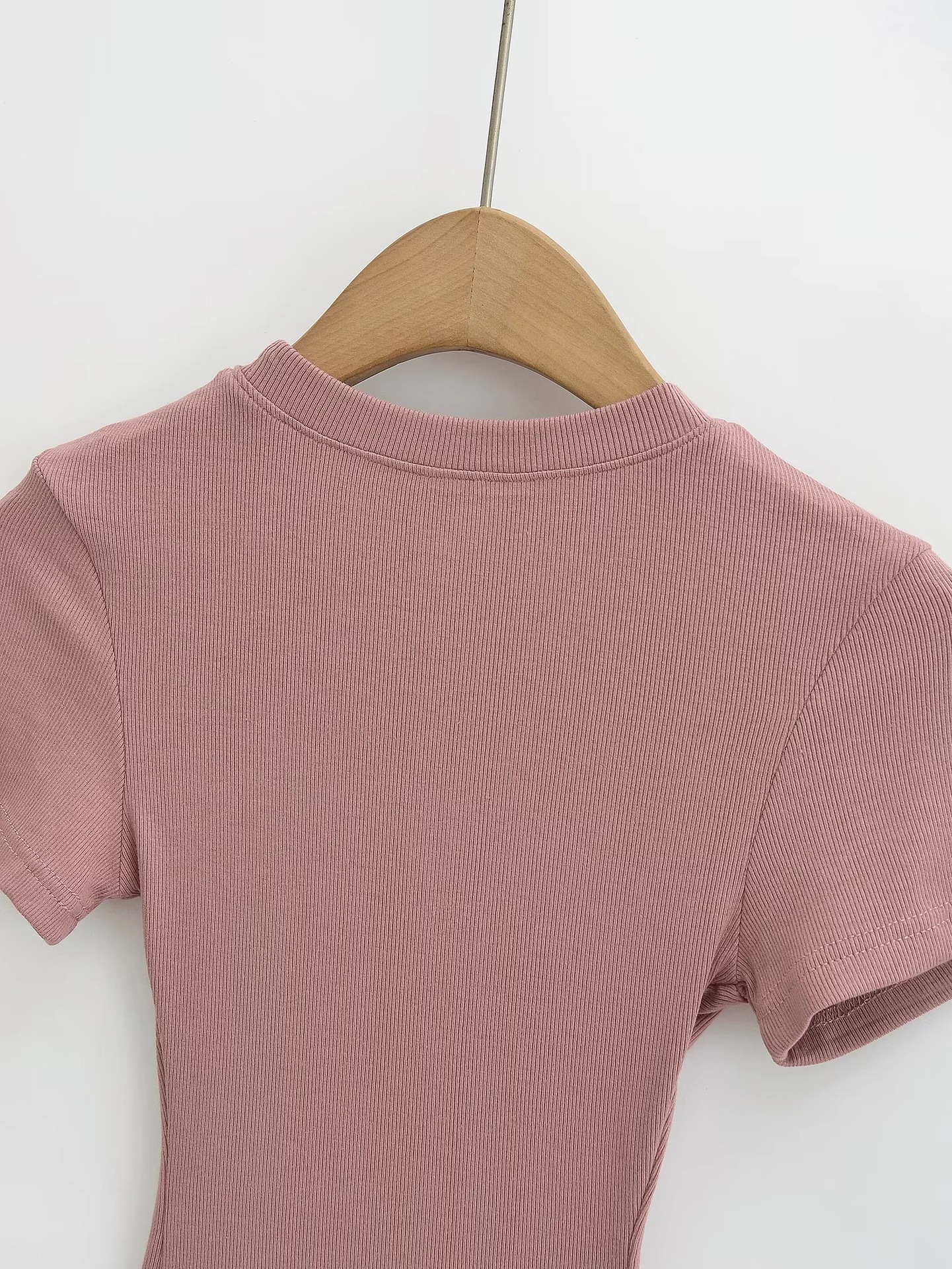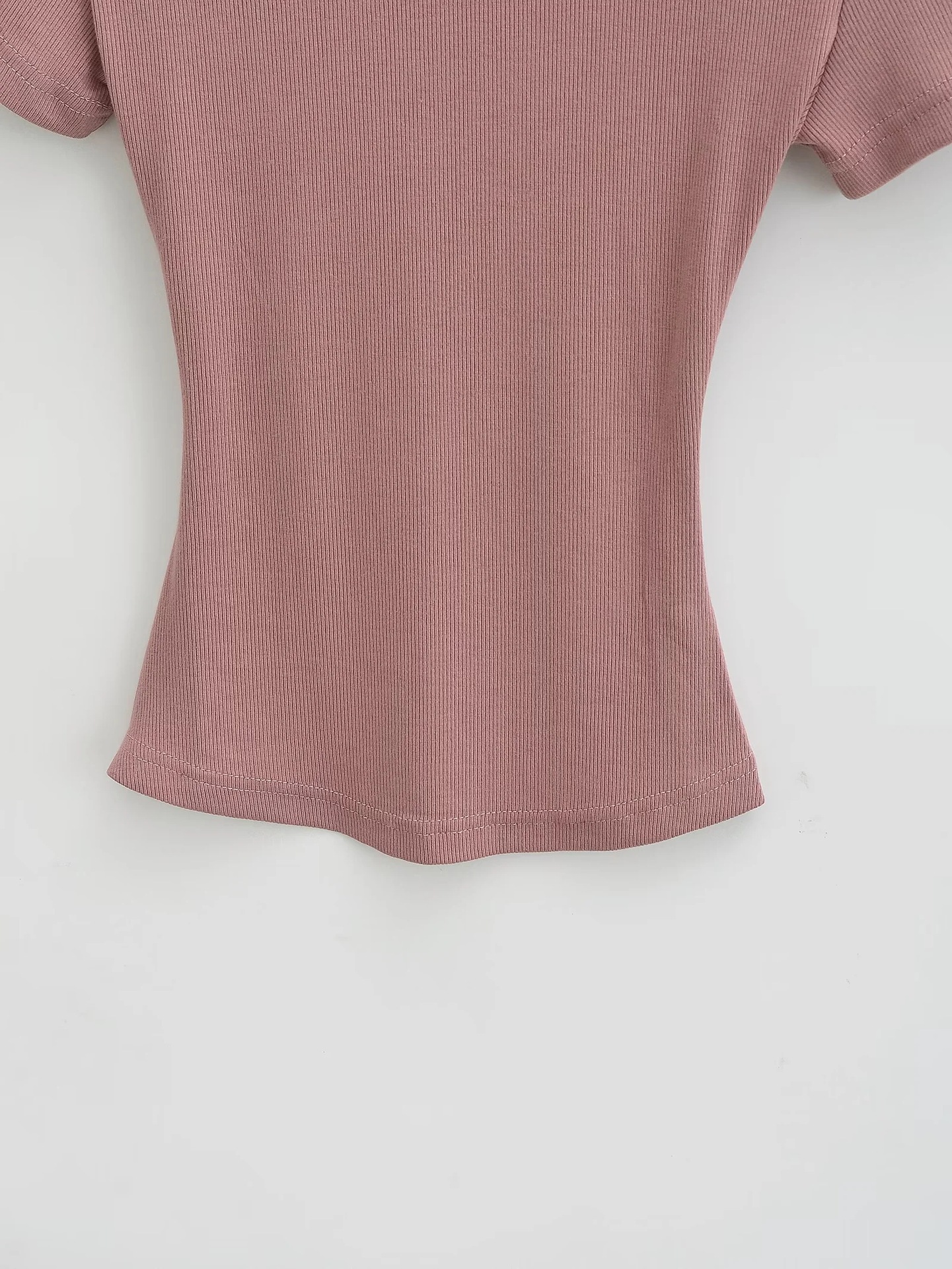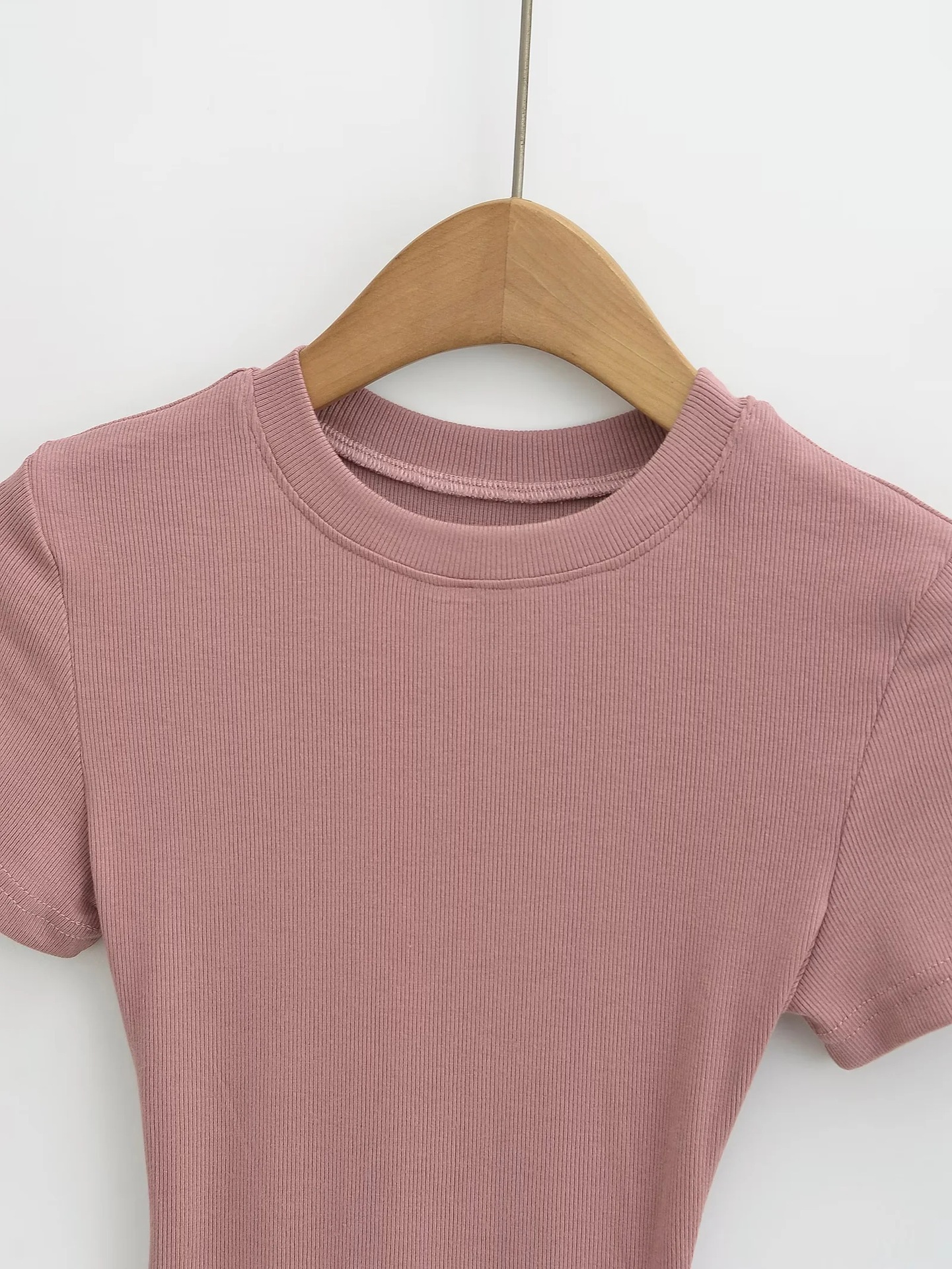 유럽과 미국의 카다시안 스타일 섹시 작은 둥근 목 반팔 티셔츠 여성의 2024 여름 스키 솔리드 컬러베이스 스레드 탑스토어 가기