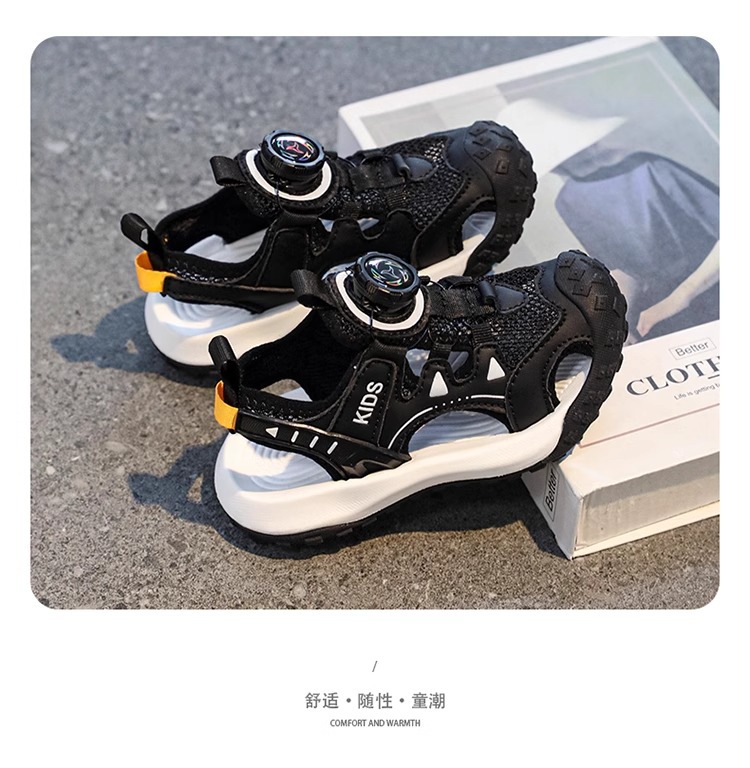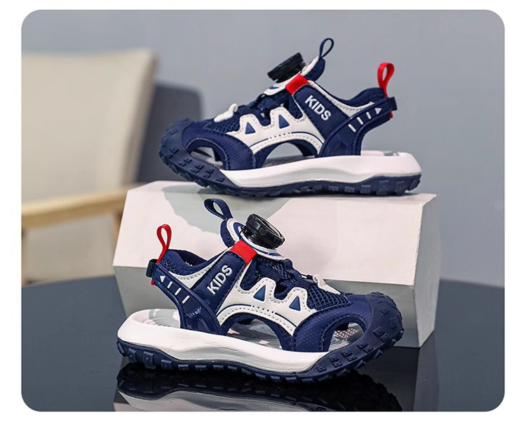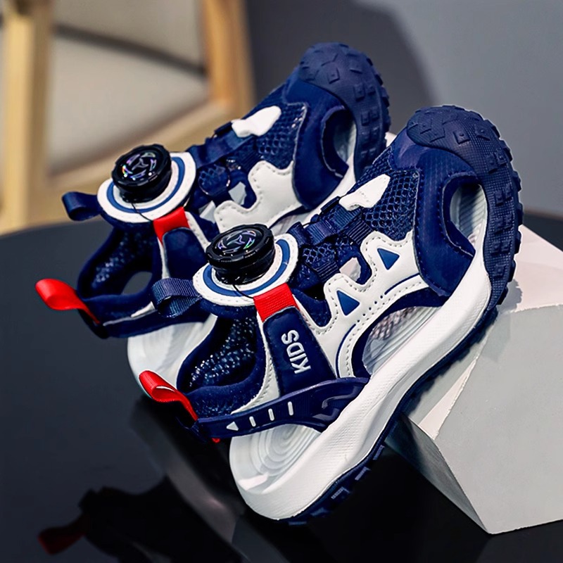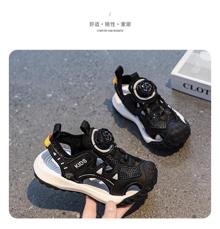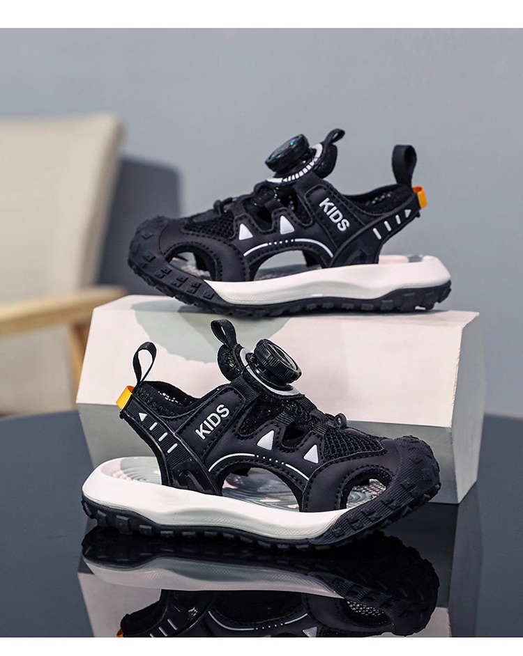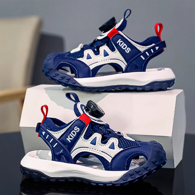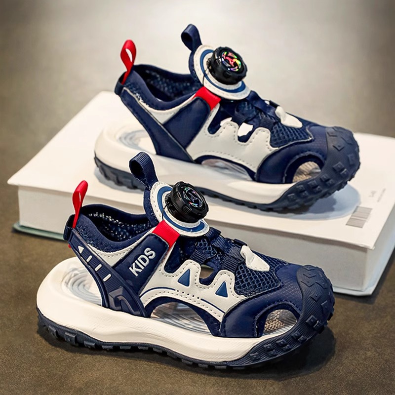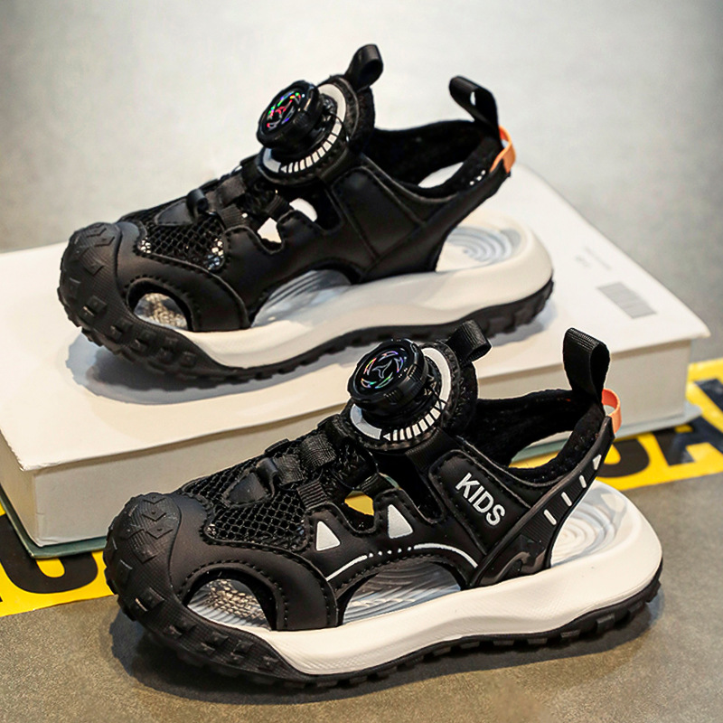 소년 샌들 여름 2025 새로운 어린이 신발 스포츠 비치 신발 빅 키즈 보이즈 랩 헤드 회전 버튼