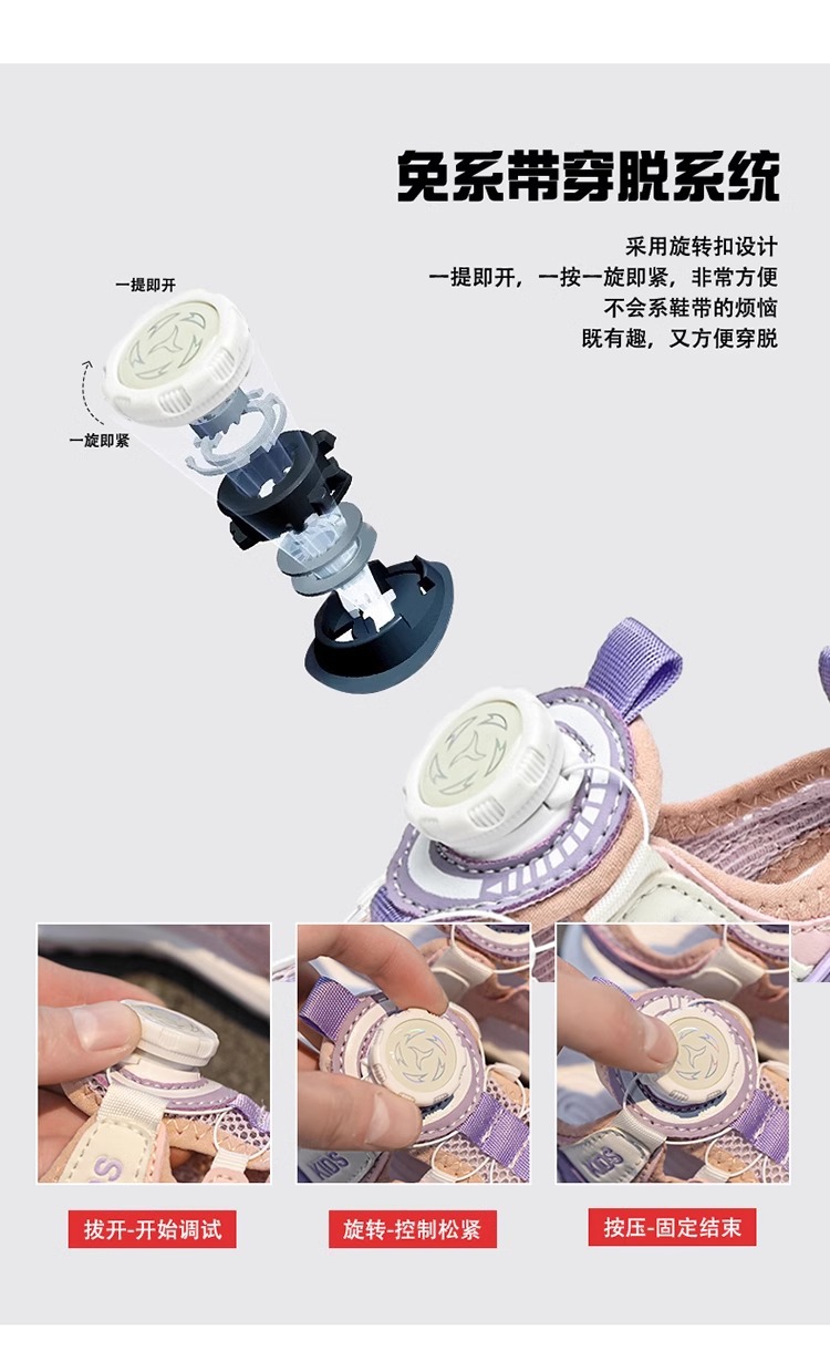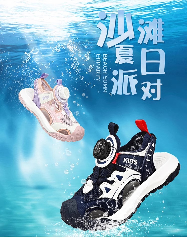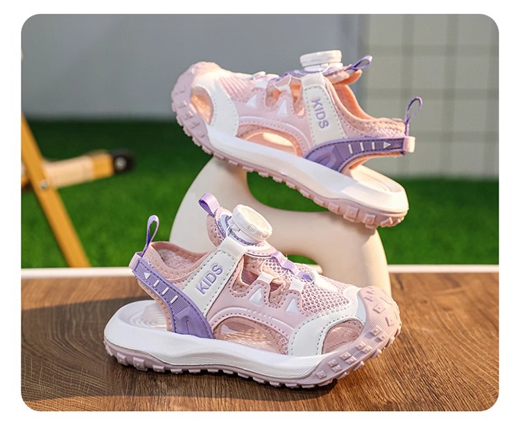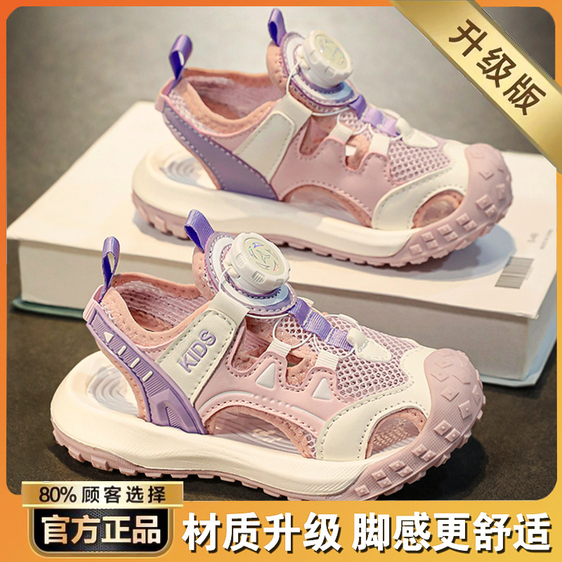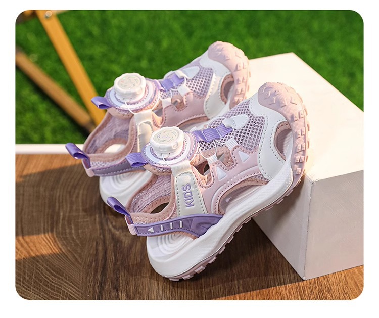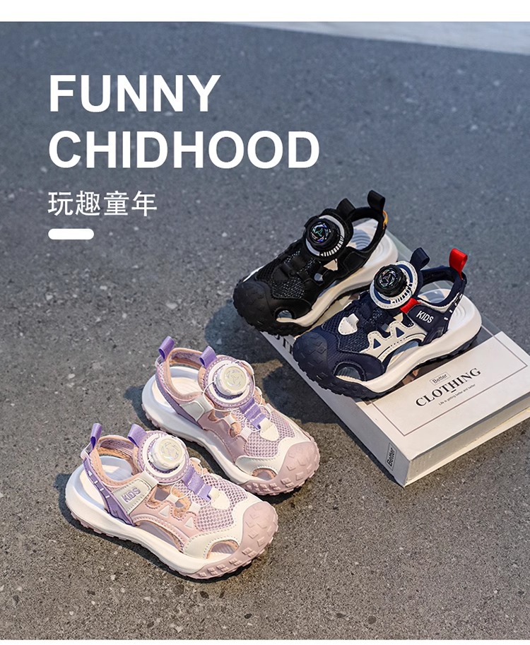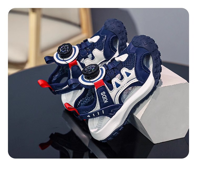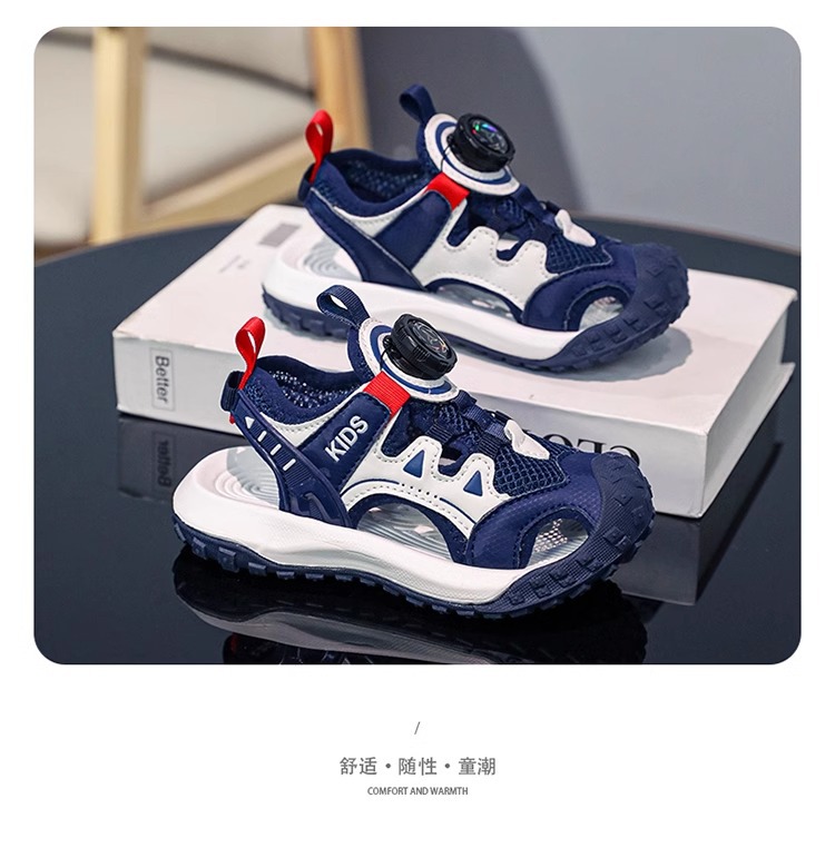 소년 샌들 여름 2025 새로운 어린이 신발 스포츠 비치 신발 빅 키즈 보이즈 랩 헤드 회전 버튼