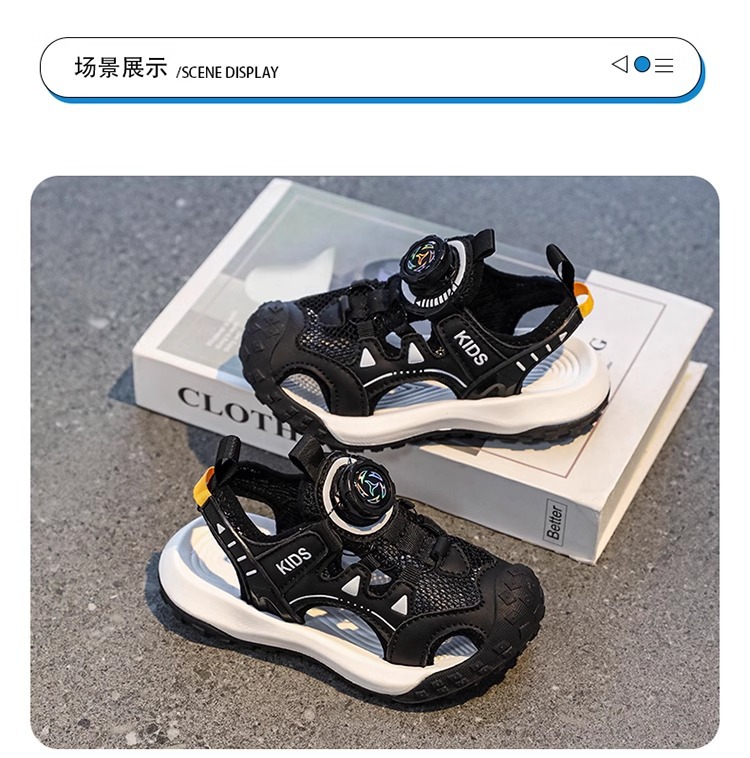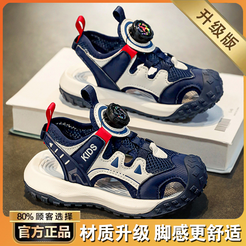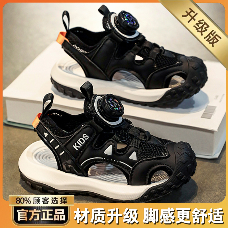 소년 샌들 여름 2025 새로운 어린이 신발 스포츠 비치 신발 빅 키즈 보이즈 랩 헤드 회전 버튼스토어 가기