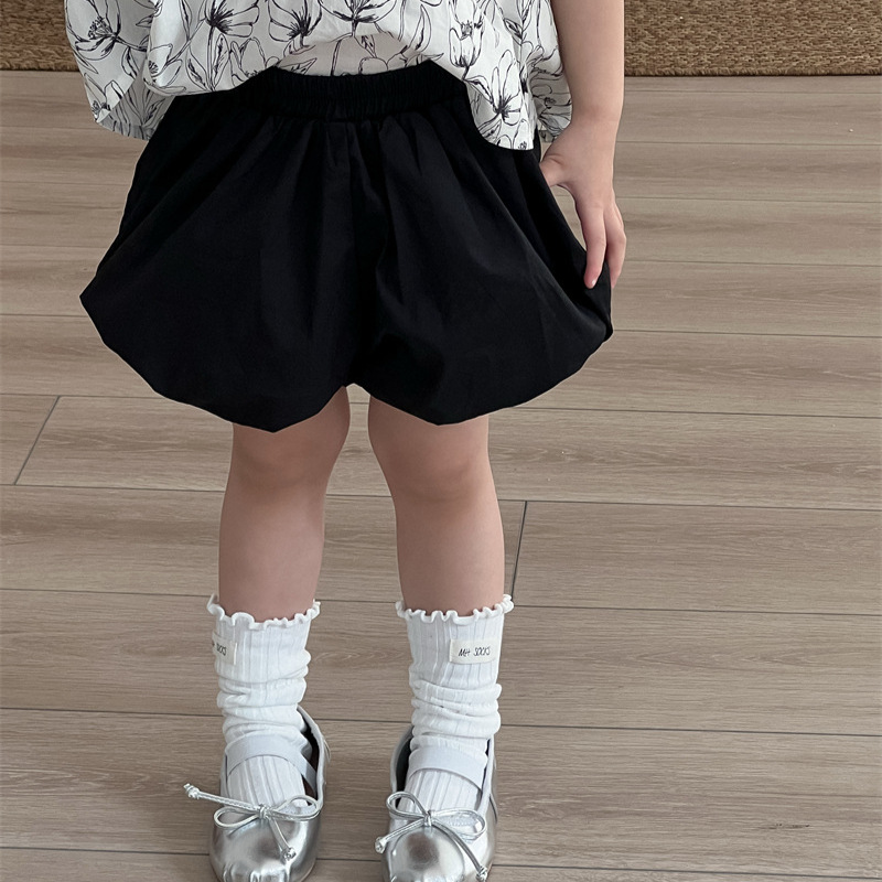 Xi Fan 25 여름 한국 스타일 어린이 꽃 버브 스커트 바지 여자 아기 귀여운 달콤한 느슨한 허리 검은 호박 반바지