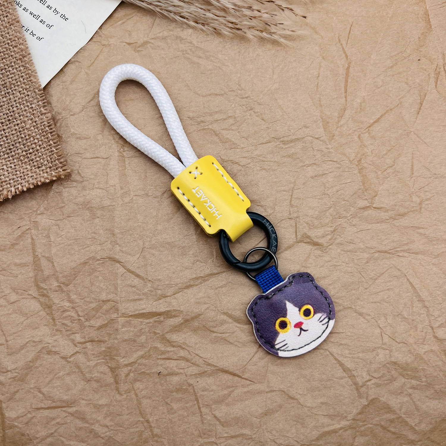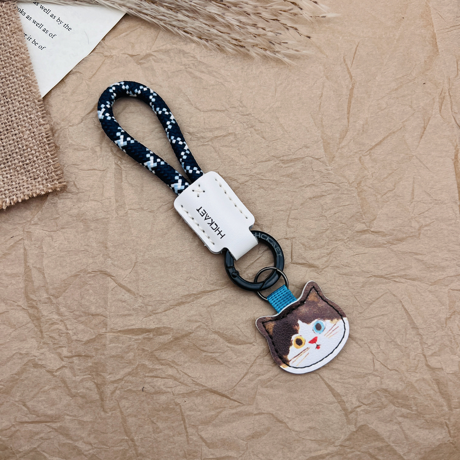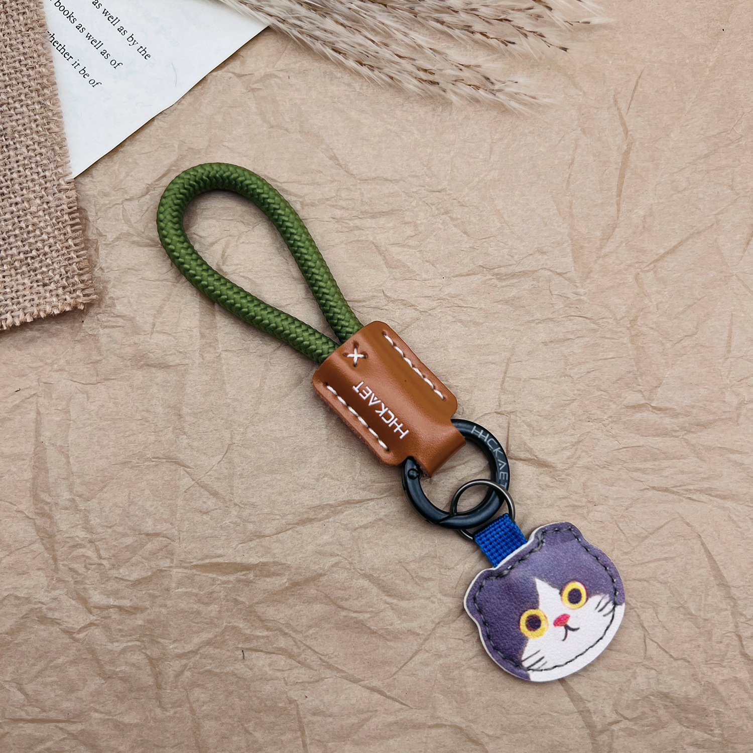 새끼 고양이 자동차 키 체인 미국 복고풍 가방 청바지 펜던트 가죽 짠 로프 유행 멋진 남자와 여자스토어 가기