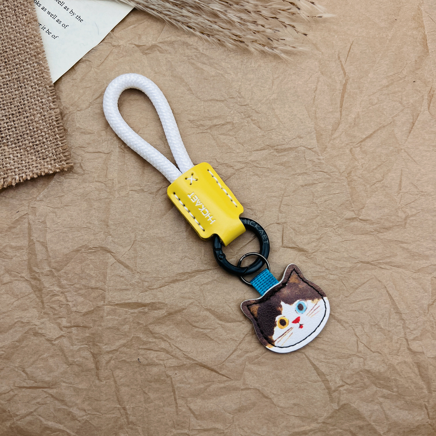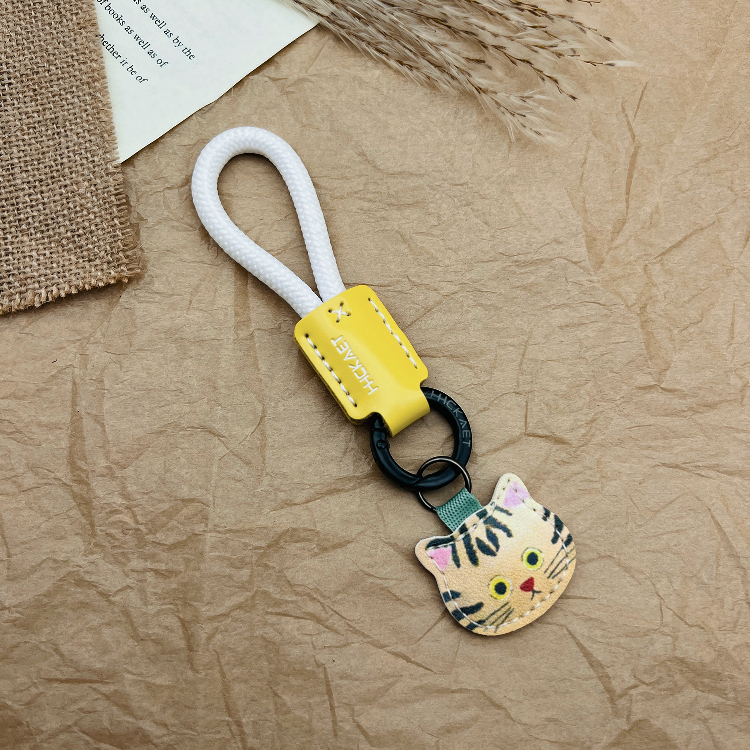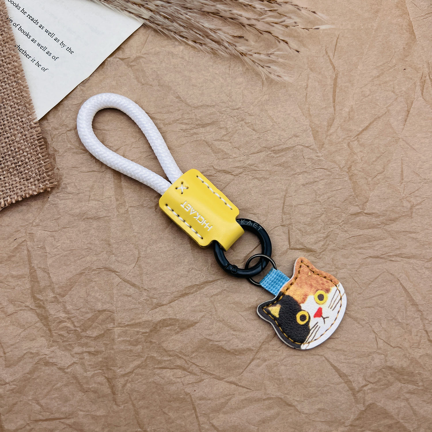 • 노란색 가죽과 흰색 밧줄 + 삼색 고양이 [D 버클 작은 원형 보내기]