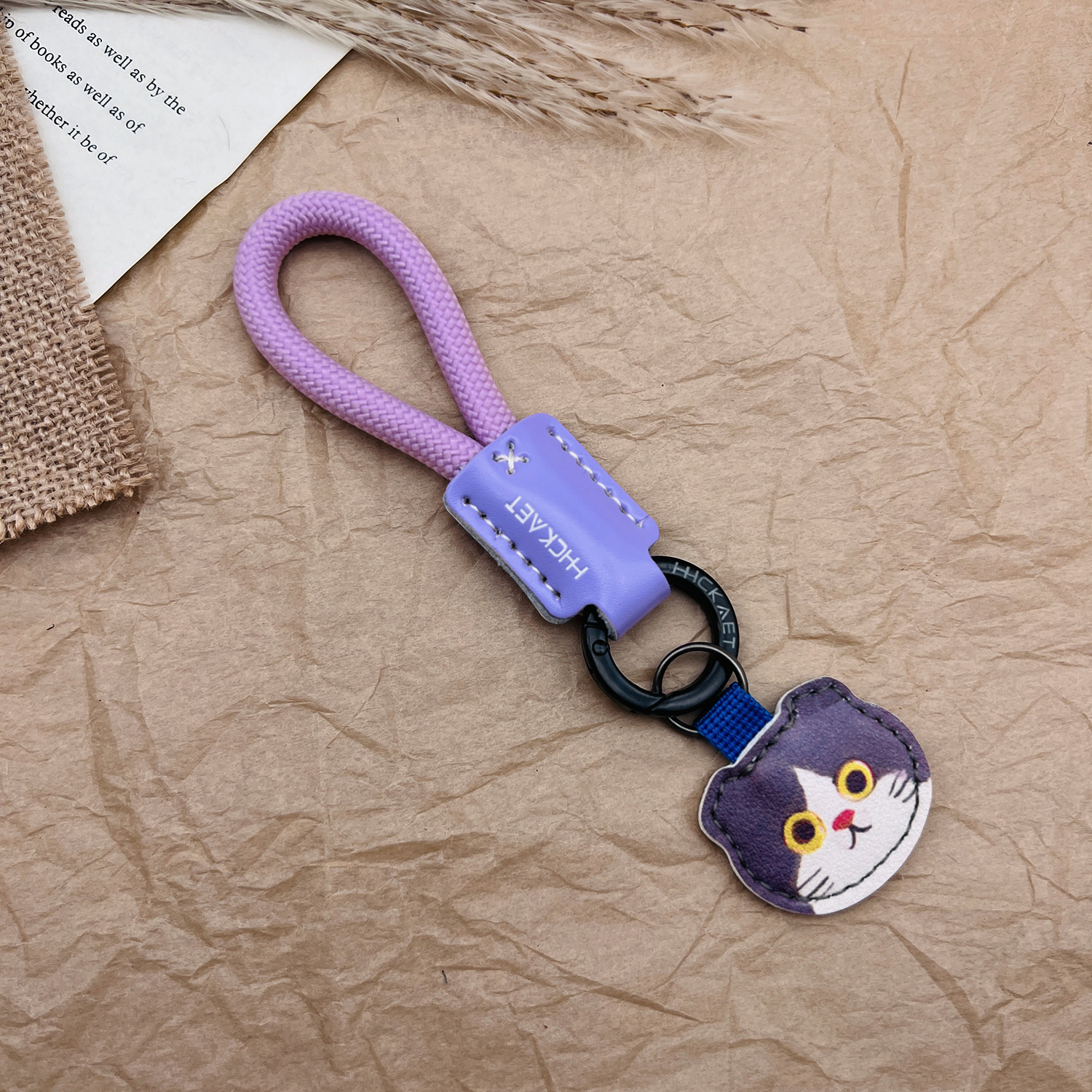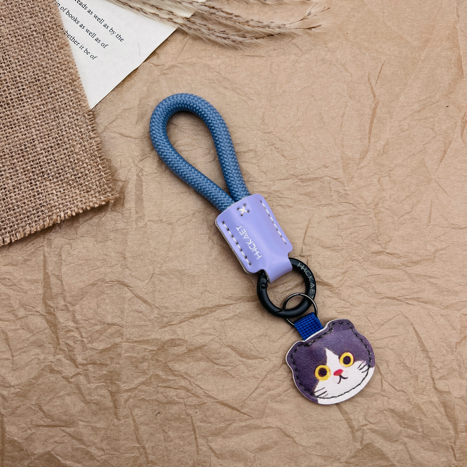 • 보라색 가죽 회색 파란색 밧줄 + 접힌 귀 고양이 [D 버클 작은 원 보내기]