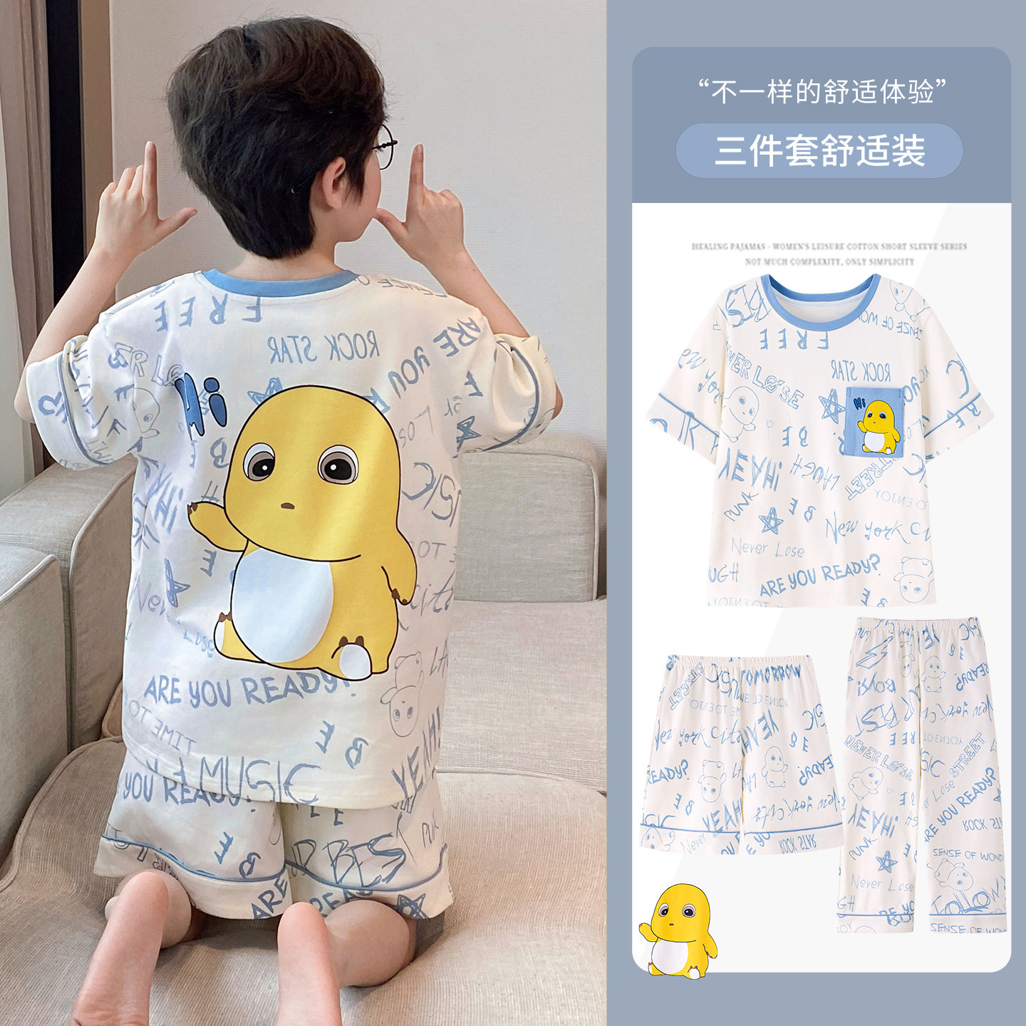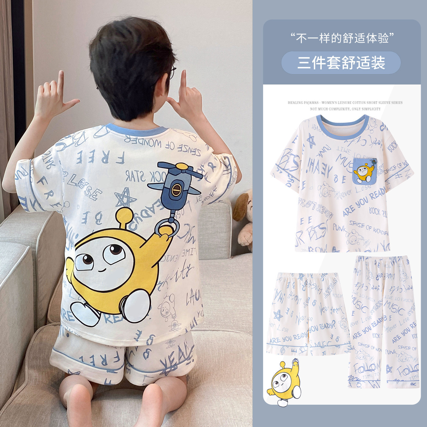 复制_哪吒睡衣男童夏季纯棉短袖儿童三件套男孩青.jpg