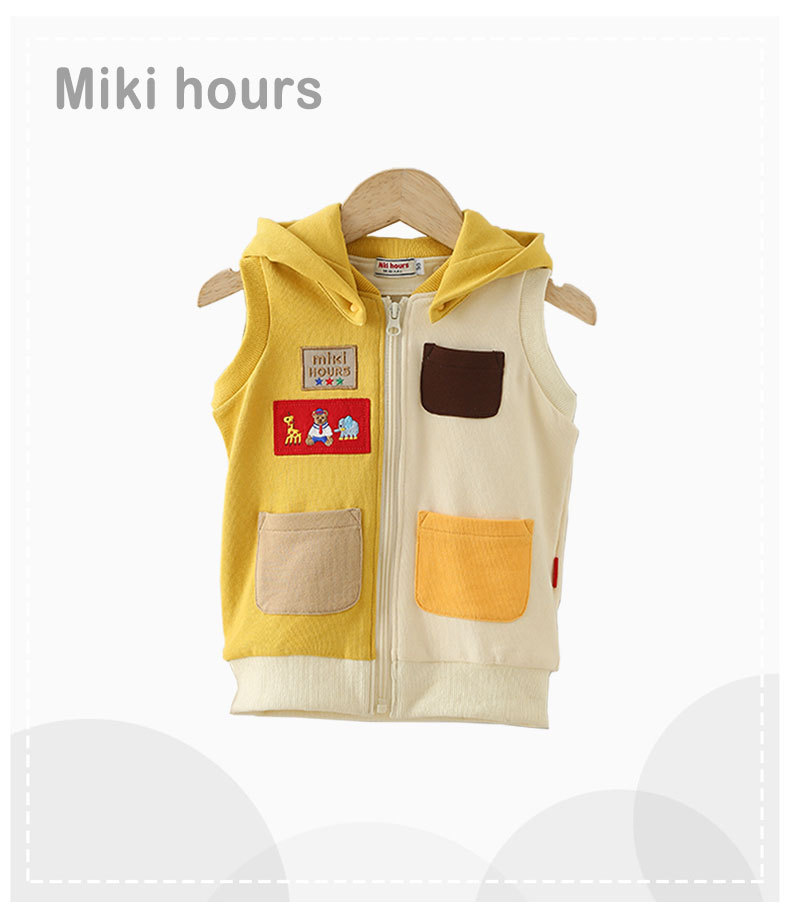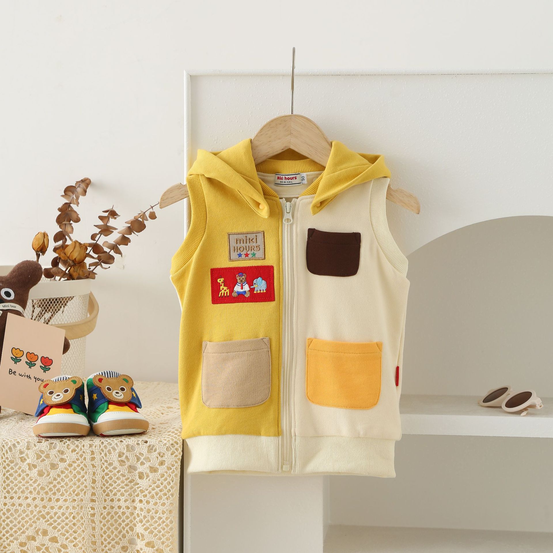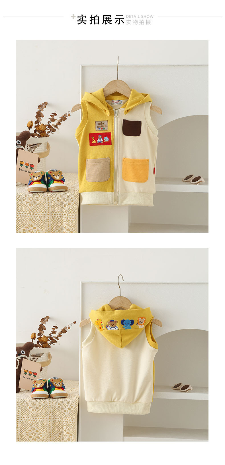 미키 봄 새로운 조끼 지퍼 후드 조끼장 외부 착용 민소매 탑 베이비 웨이스트 코트