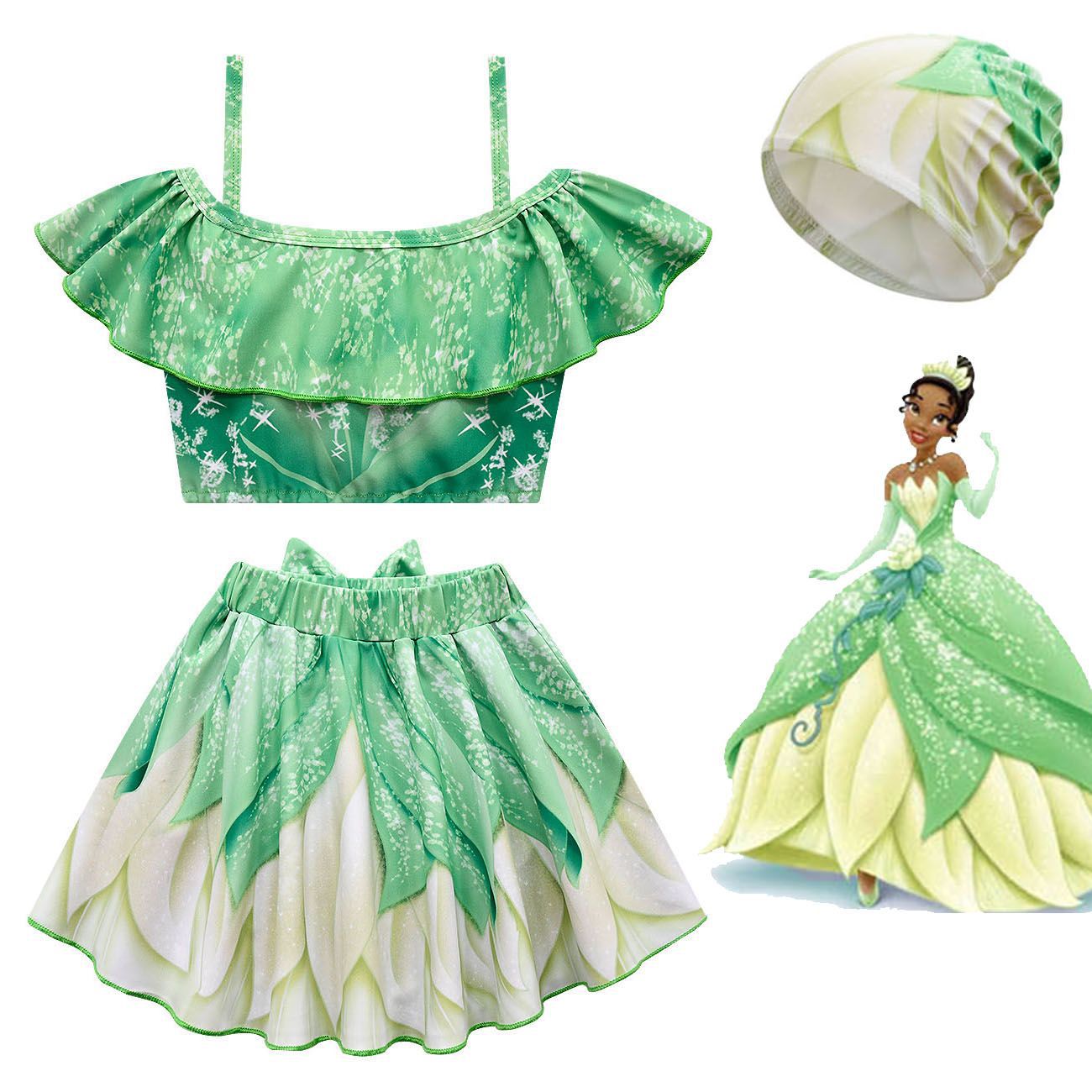 재고 100-150 크기 티아나 공주 티아나 원피스 여자 수영복 2 조각 귀여운 20196
