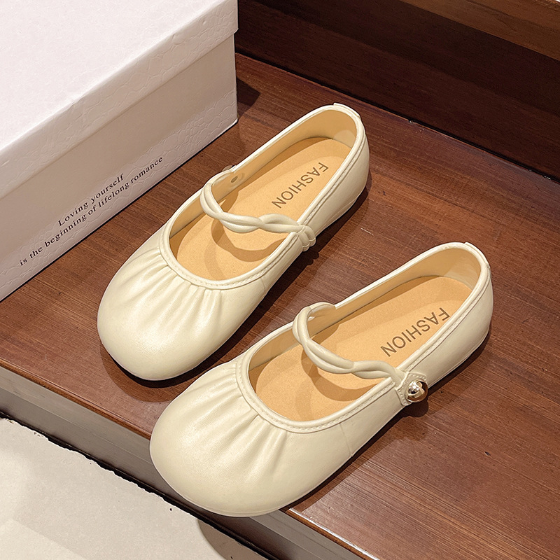 국경 간 요정 스타일 주름 패션 Mary Jane Baotou 슬리퍼 여성 외부 착용 편안한 게으른 샌들 캐주얼 플랫 슈즈