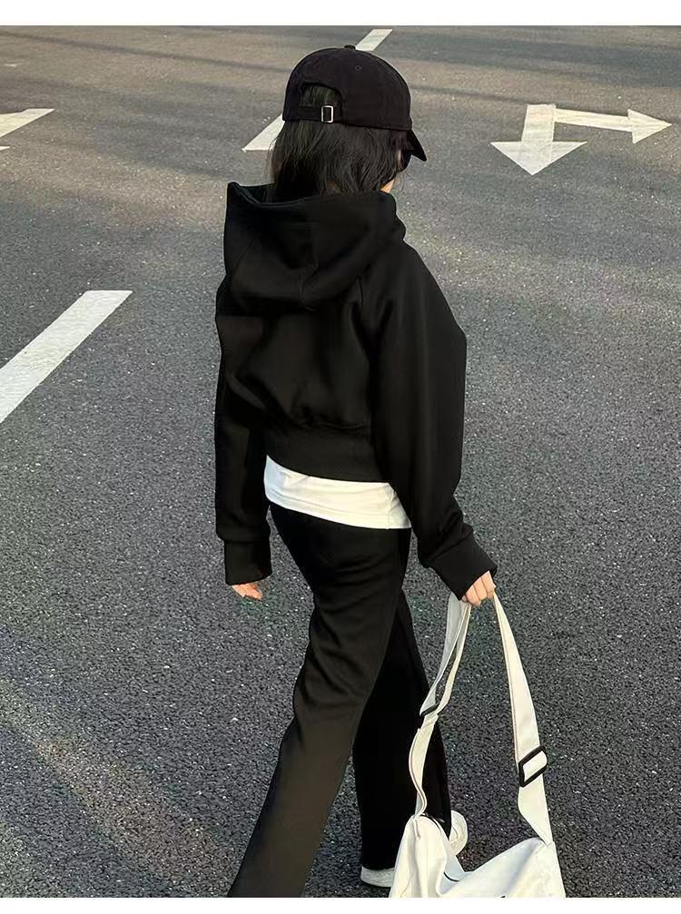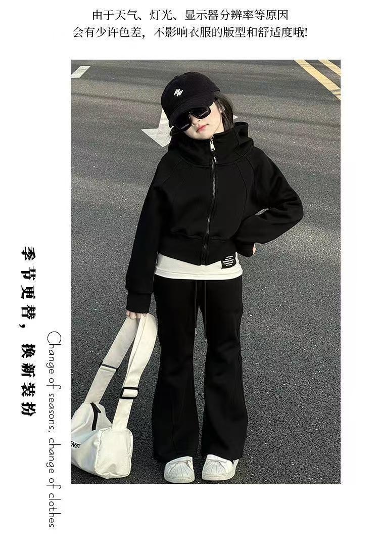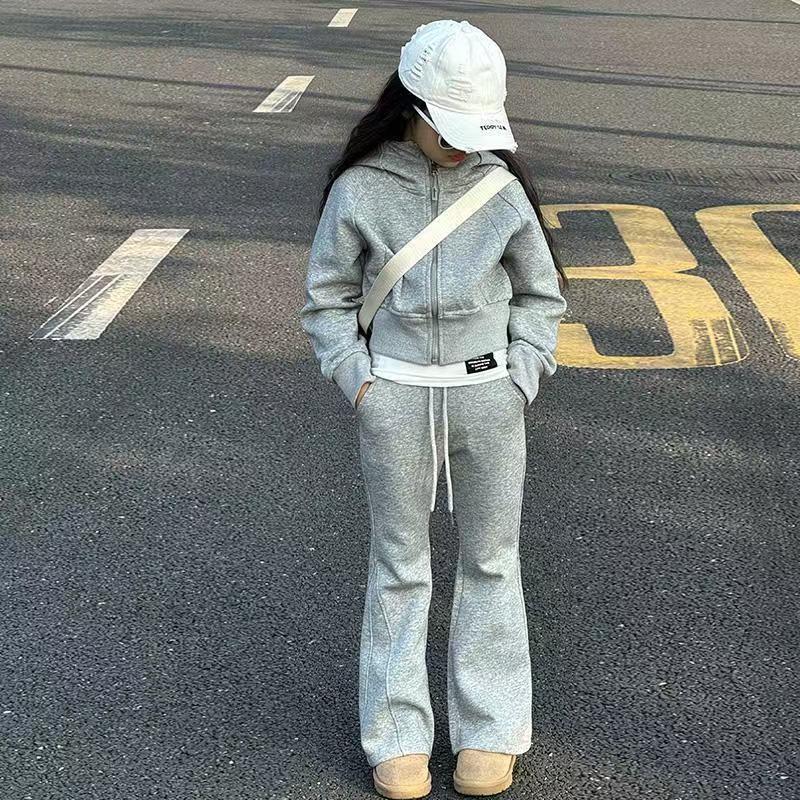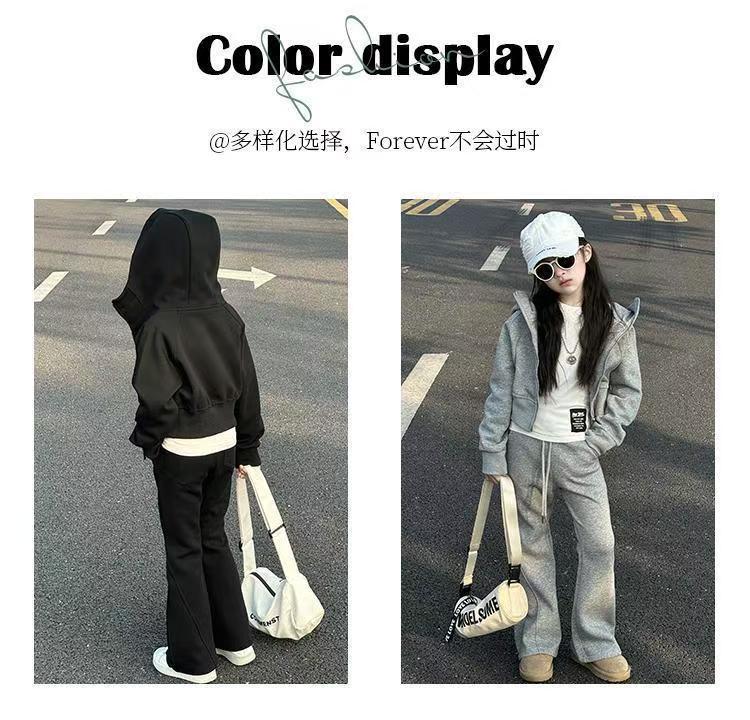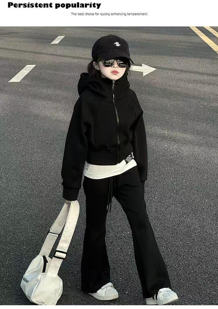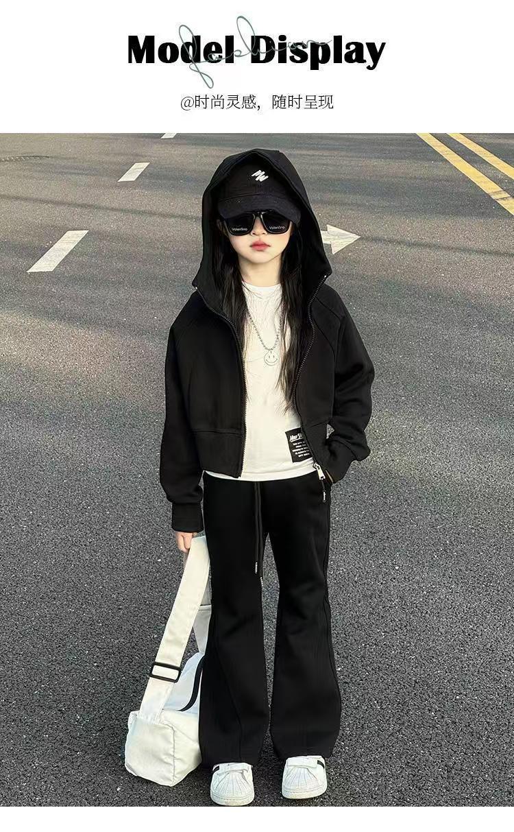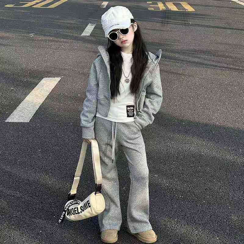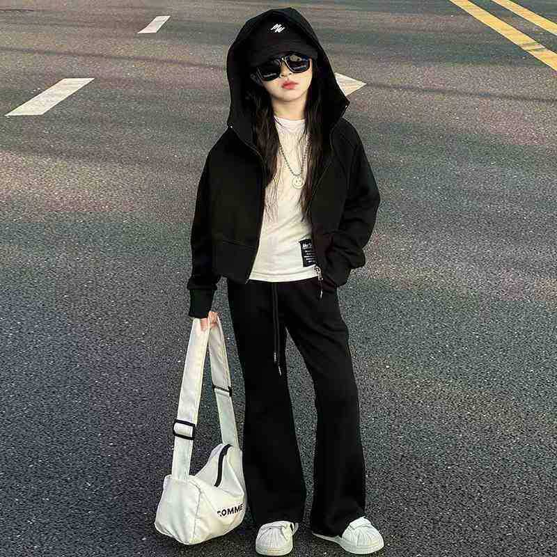 중대형 아동 스포츠 봄, 가을 정장 2025 신상 여아 후드 재킷, 스트레이트 팬츠, 캐주얼하고 다재다능한 3종 세트스토어 가기