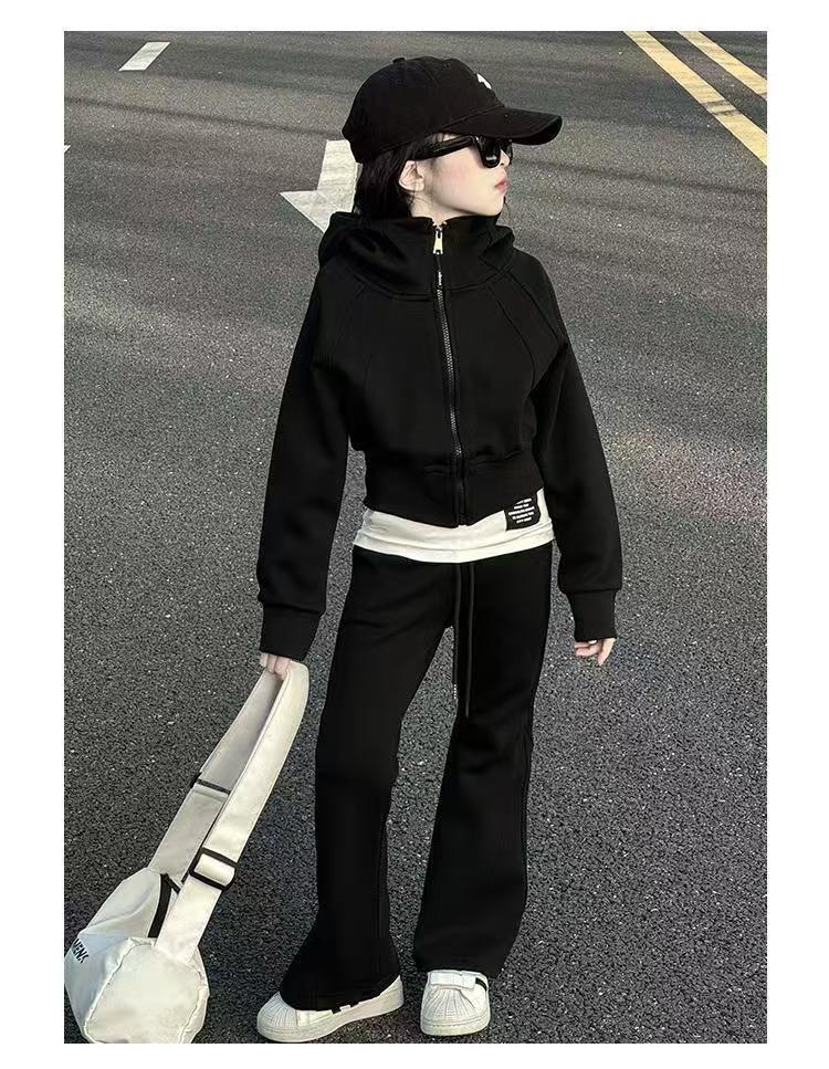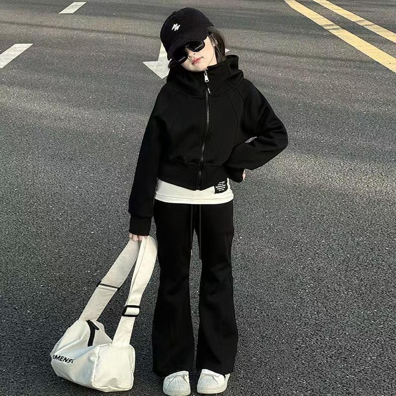 중대형 아동 스포츠 봄, 가을 정장 2025 신상 여아 후드 재킷, 스트레이트 팬츠, 캐주얼하고 다재다능한 3종 세트