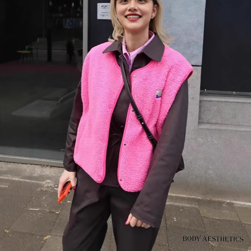 대외 무역 여성의 민소매 모피 조끼 최고의 유럽 및 미국 국경 패션 여성의 봄과 가을 느슨한 싱글 브레스트 조끼 재킷