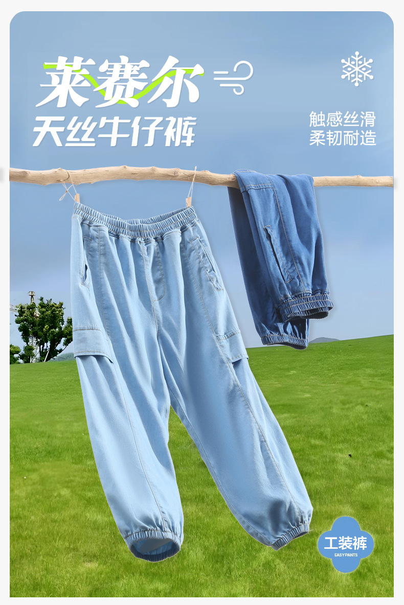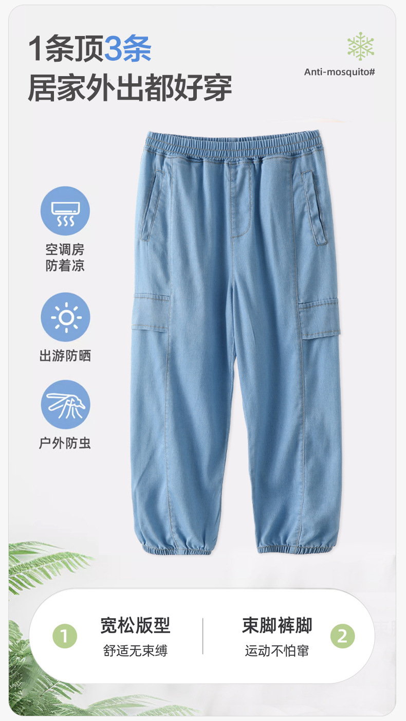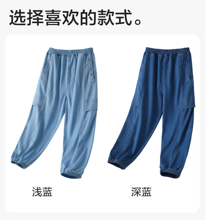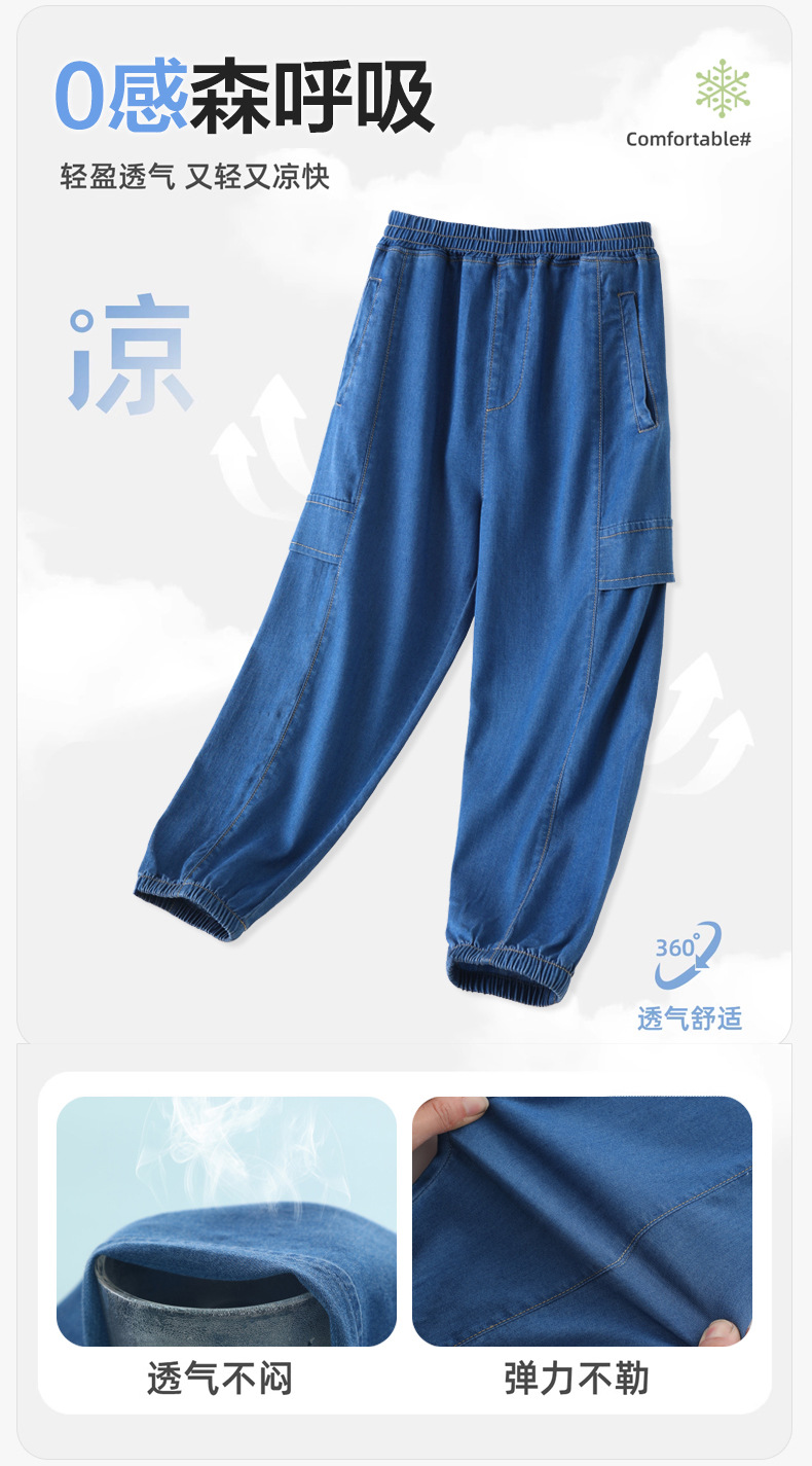 어린이 텐셀 청바지 여름 얇은 Lyocell 통기성 작업 바지 느슨한 다리 바지 소년 소녀 아동복스토어 가기