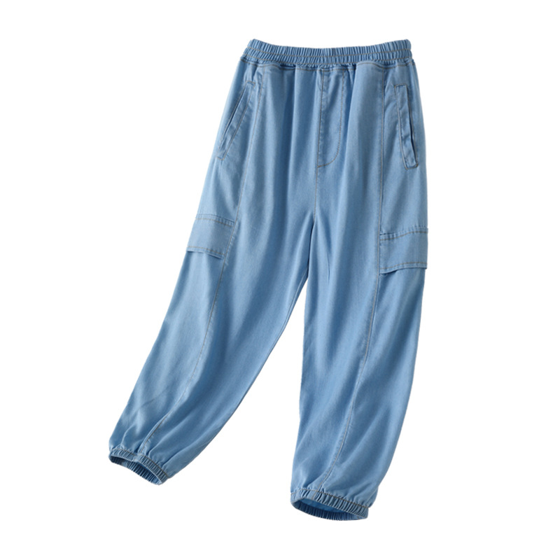 어린이 텐셀 청바지 여름 얇은 Lyocell 통기성 작업 바지 느슨한 다리 바지 소년 소녀 아동복