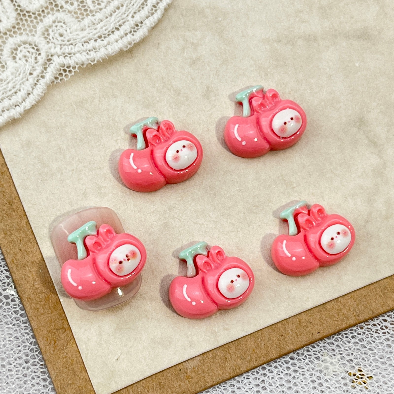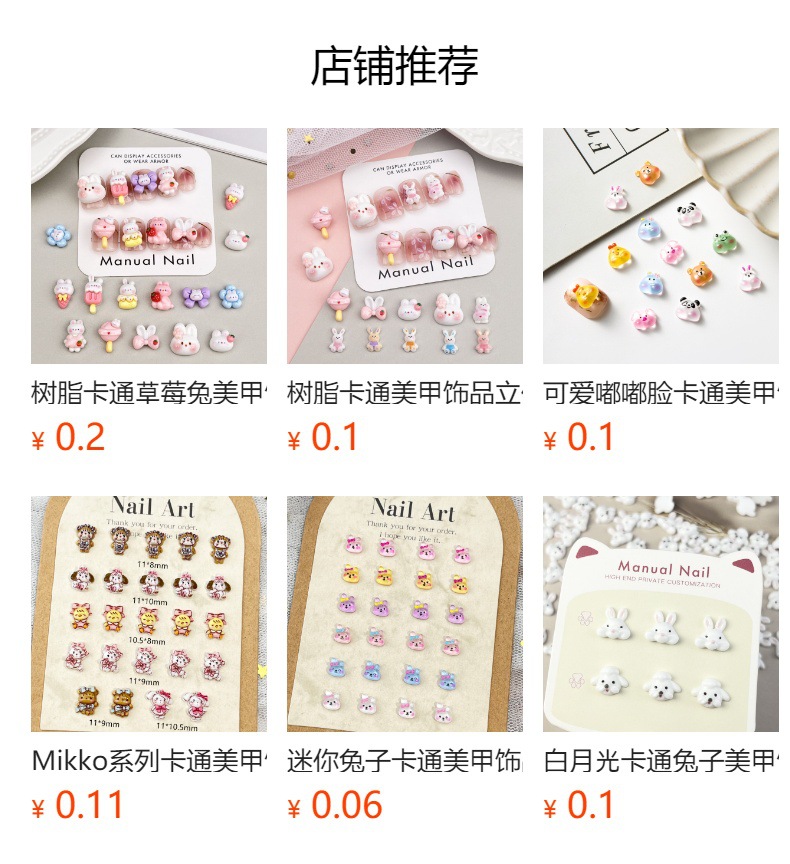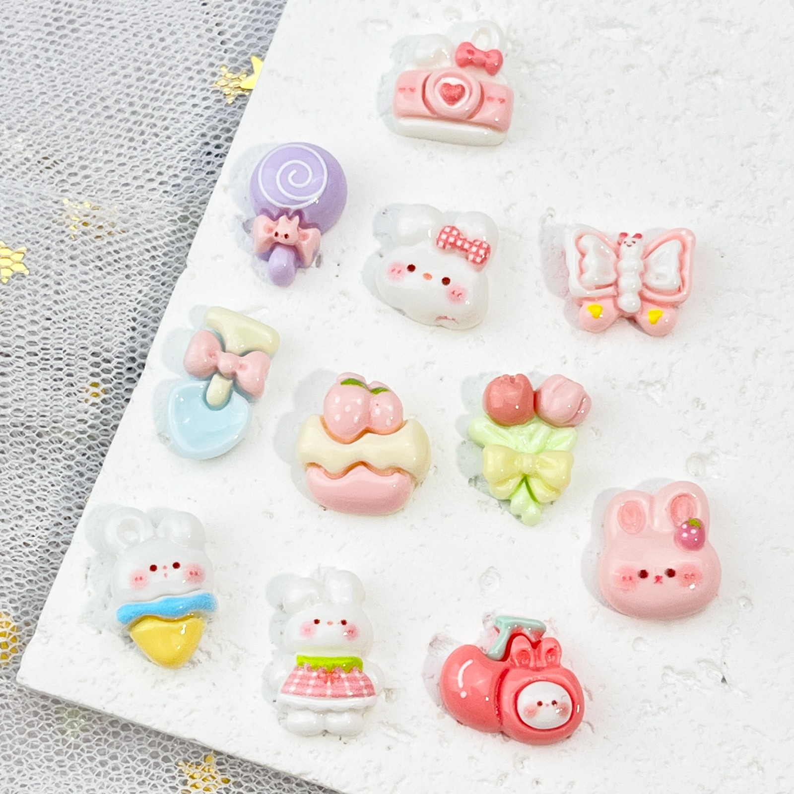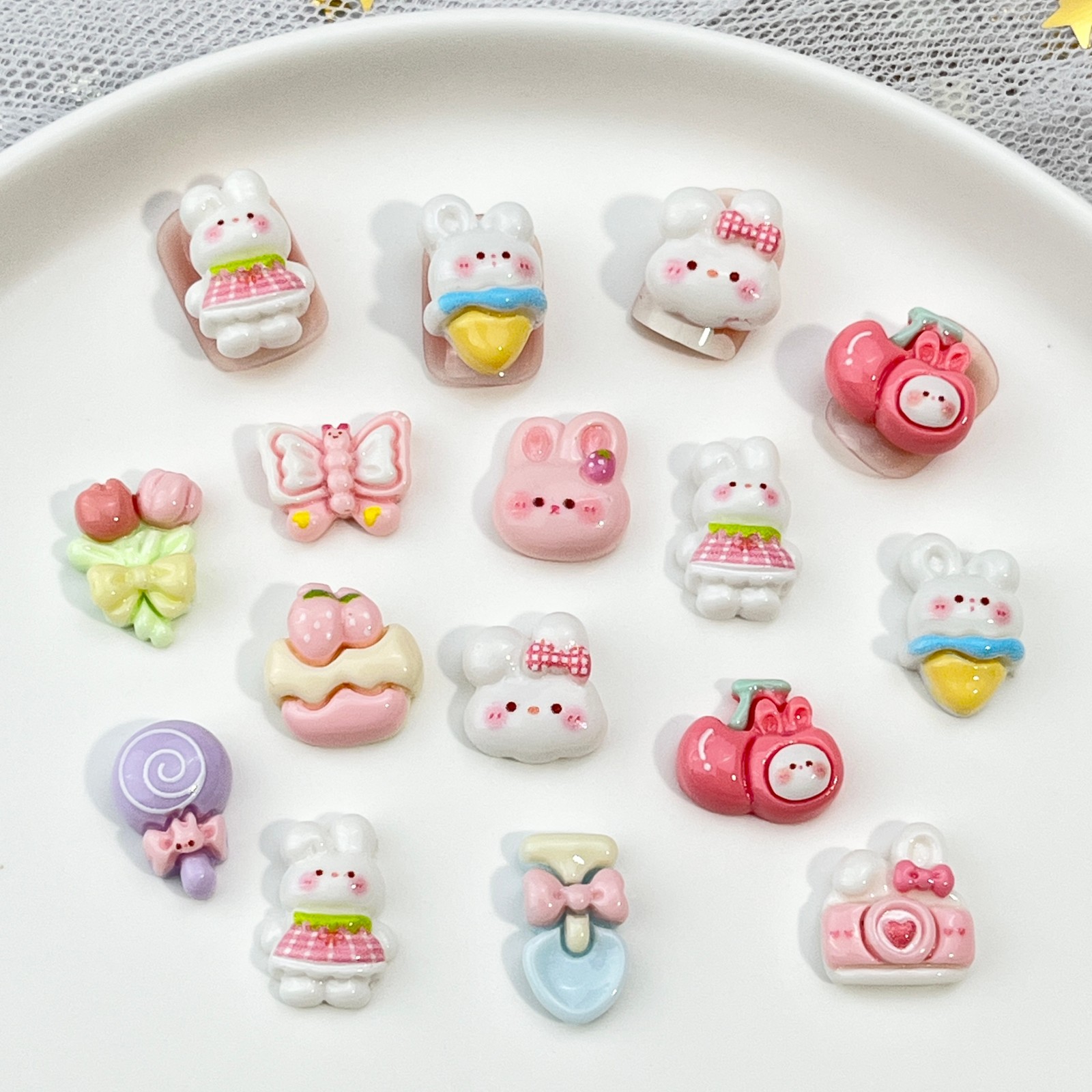 토끼 만화 네일 아트 액세서리 귀여운 3 차원 아이스크림 토끼 머리 나비 튤립 DIY 착용 갑옷 액세서리스토어 가기