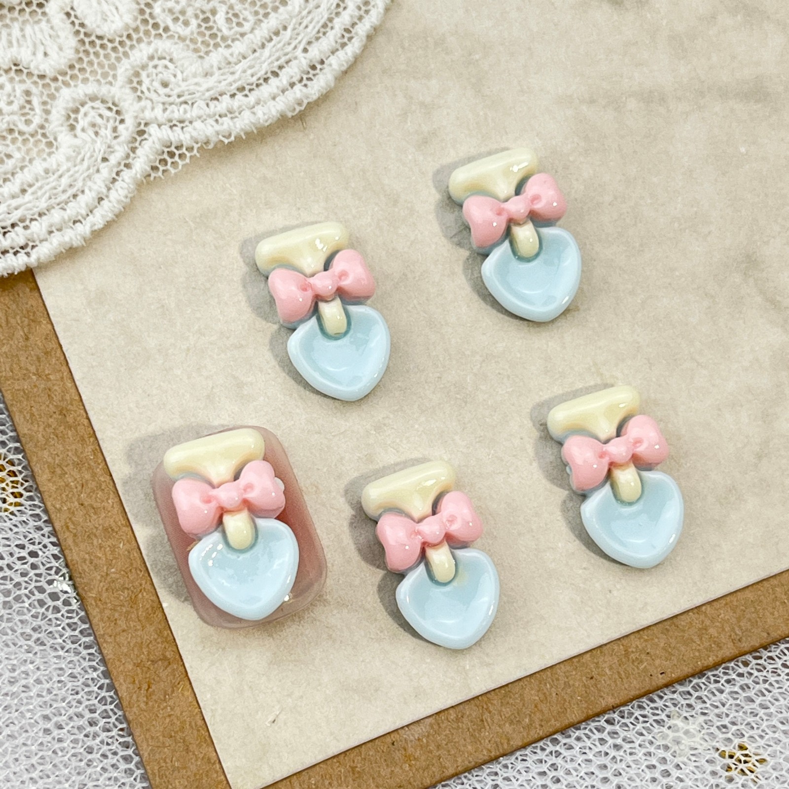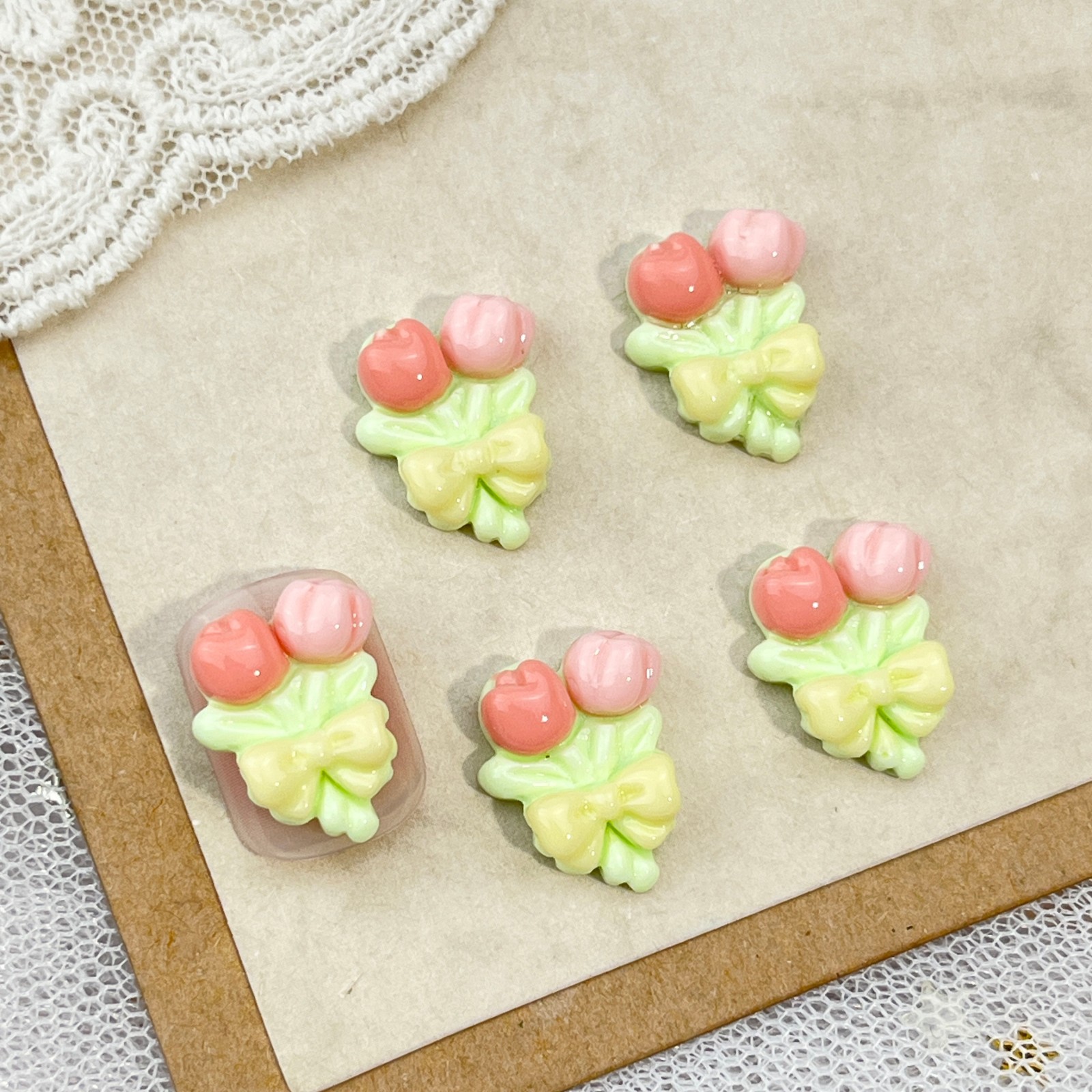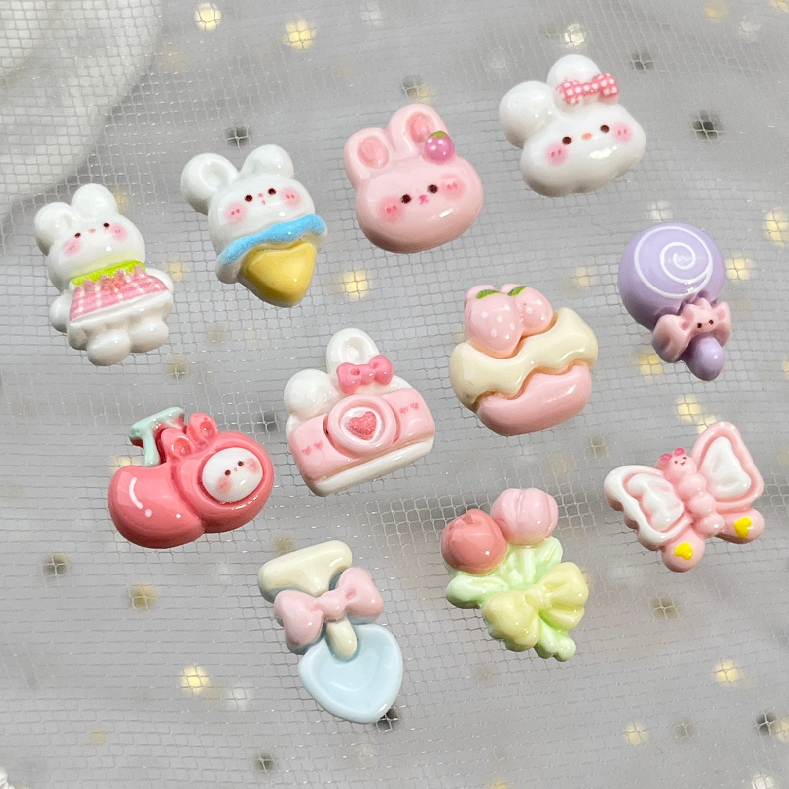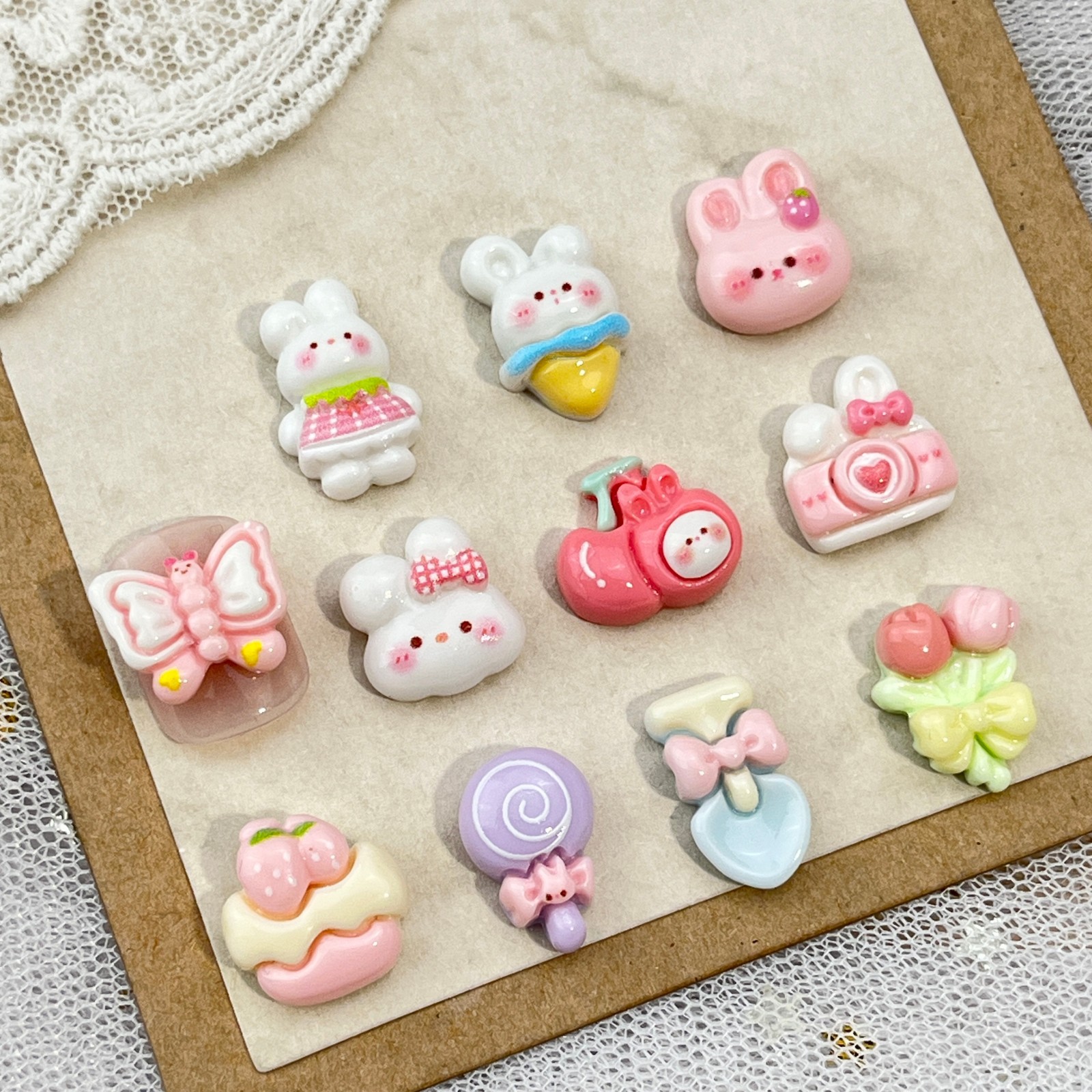 토끼 만화 네일 아트 액세서리 귀여운 3 차원 아이스크림 토끼 머리 나비 튤립 DIY 착용 갑옷 액세서리스토어 가기