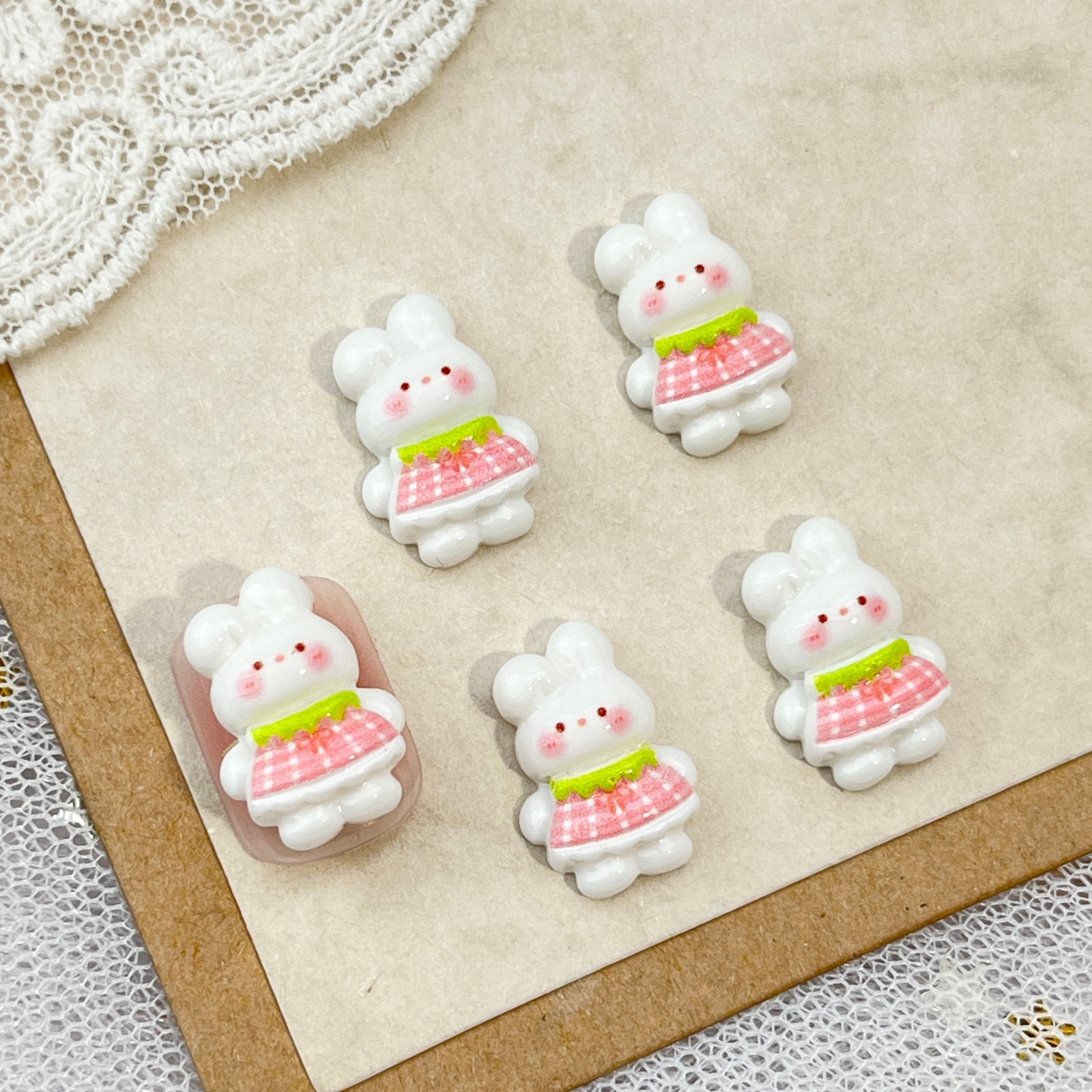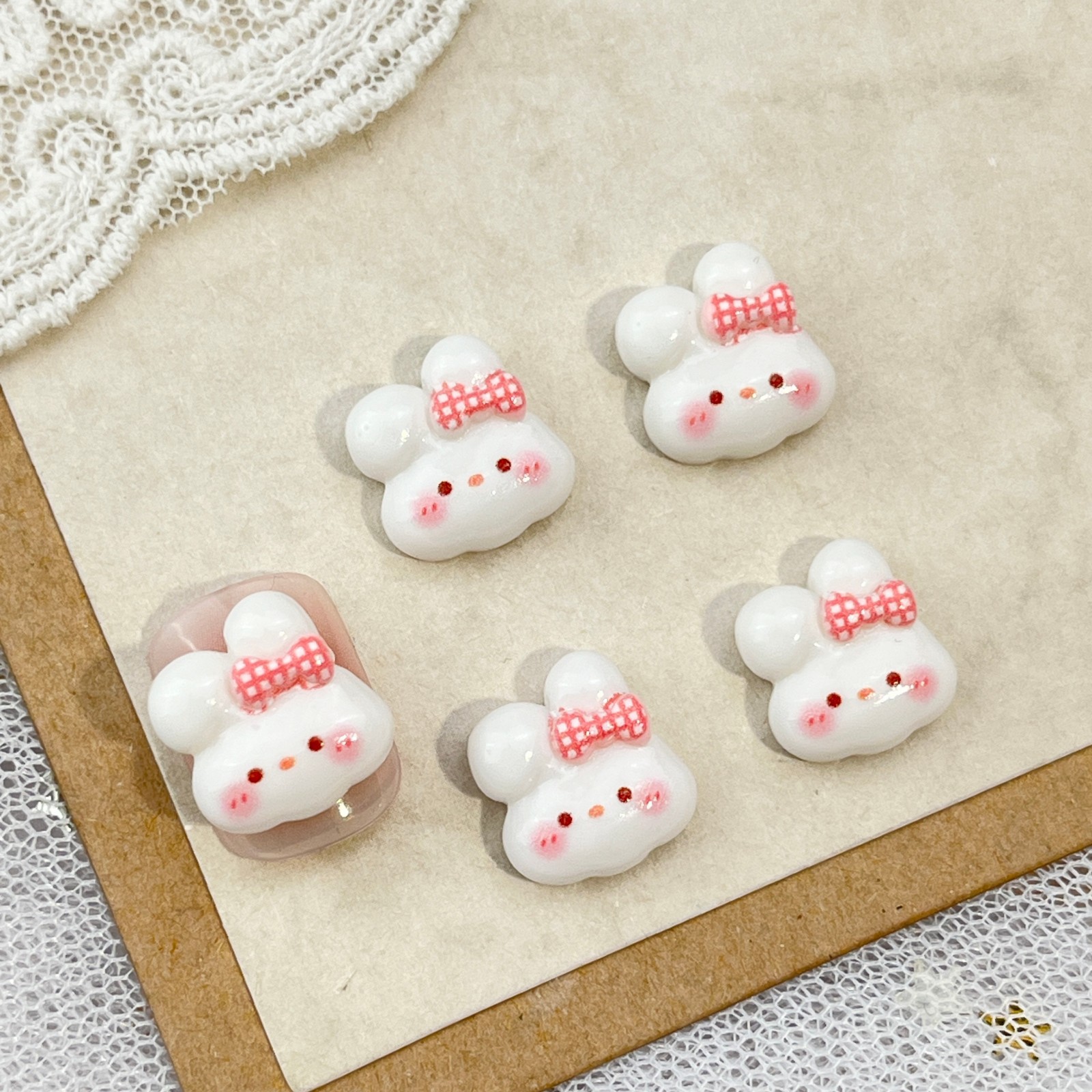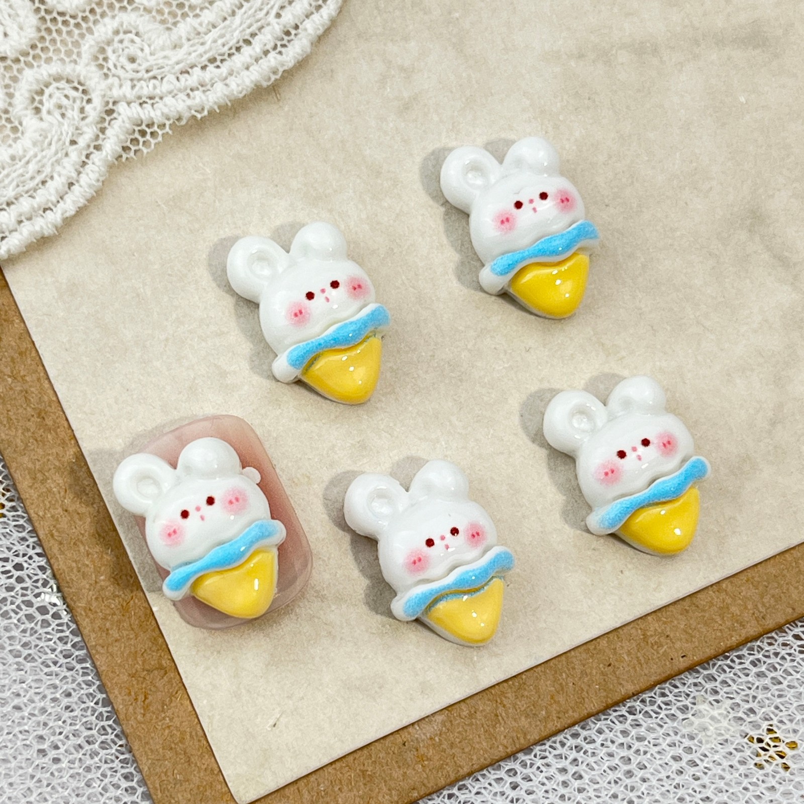 토끼 만화 네일 아트 액세서리 귀여운 3 차원 아이스크림 토끼 머리 나비 튤립 DIY 착용 갑옷 액세서리