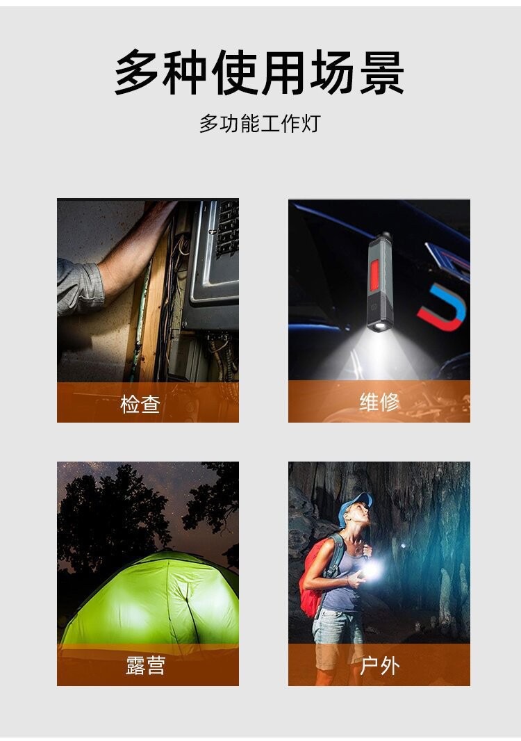 • COB 강한 빛 손전등 자기 흡입 회전 이중 광원 작업 조명