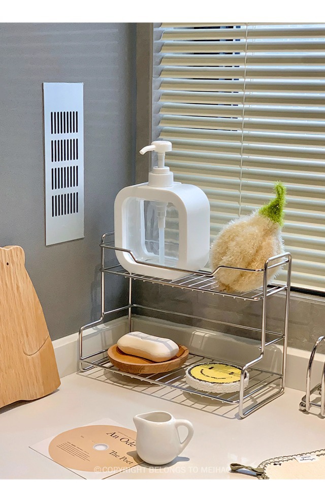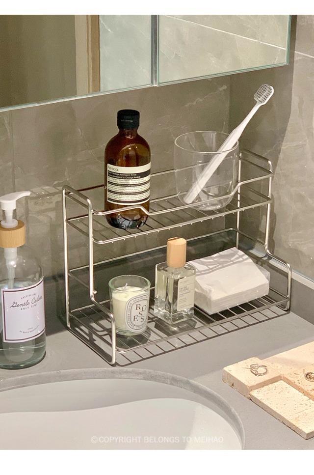 스테인레스 스틸 욕실 랙 펀치 무료 욕실 보관 랙 다기능 침실 주방 데스크탑 보관 랙
