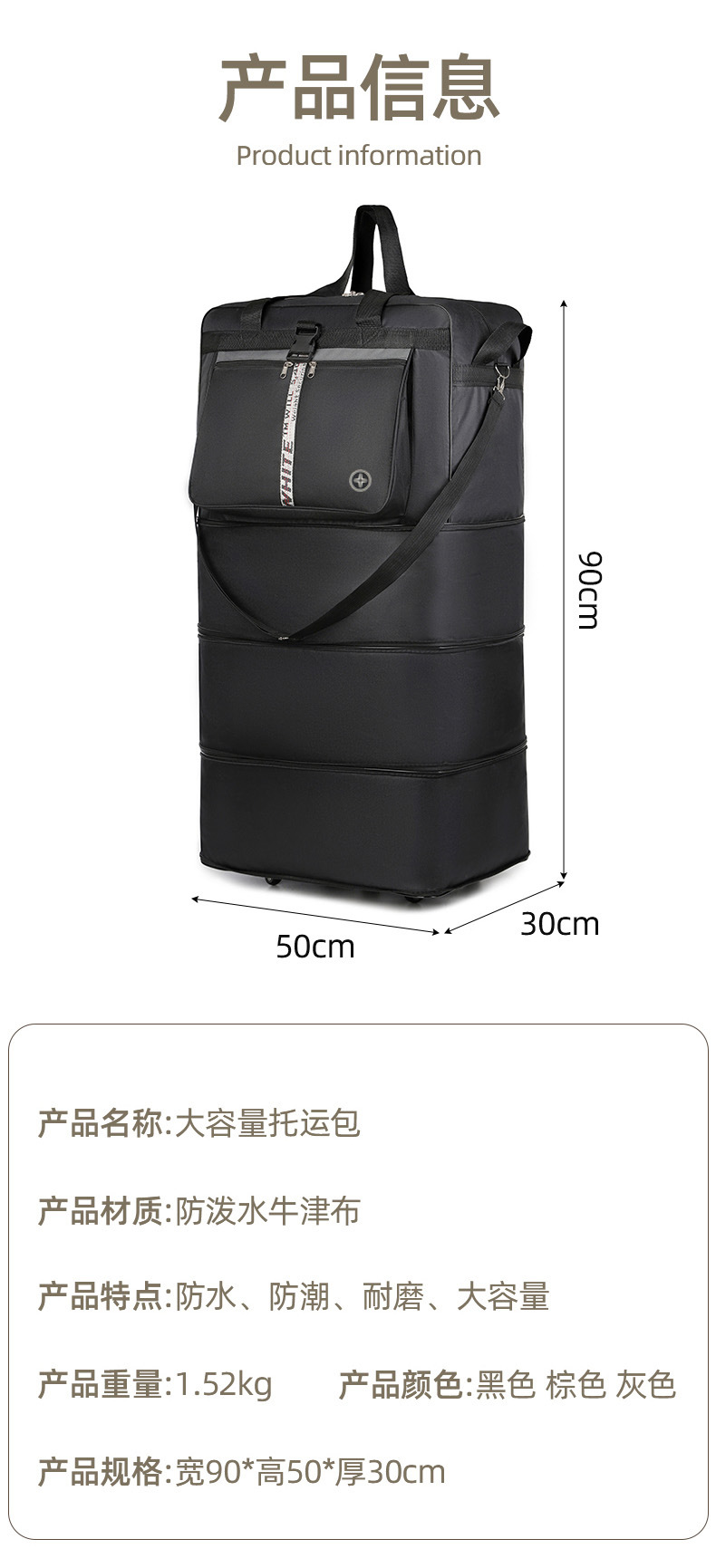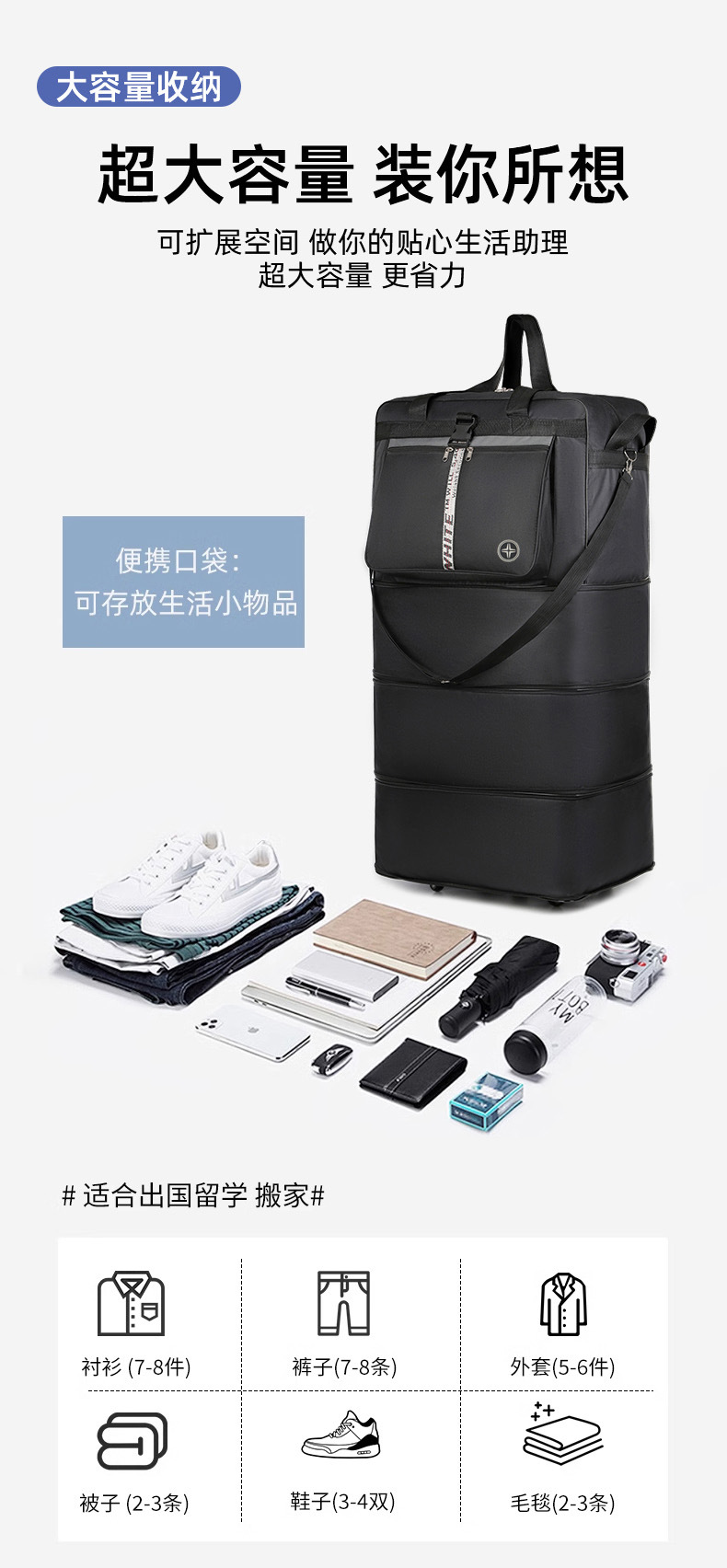 새로운 항공 운송 가방 대용량 확장 접이식 여행 가방 유니버설 휠 이동 옥스포드 천 수하물 가방