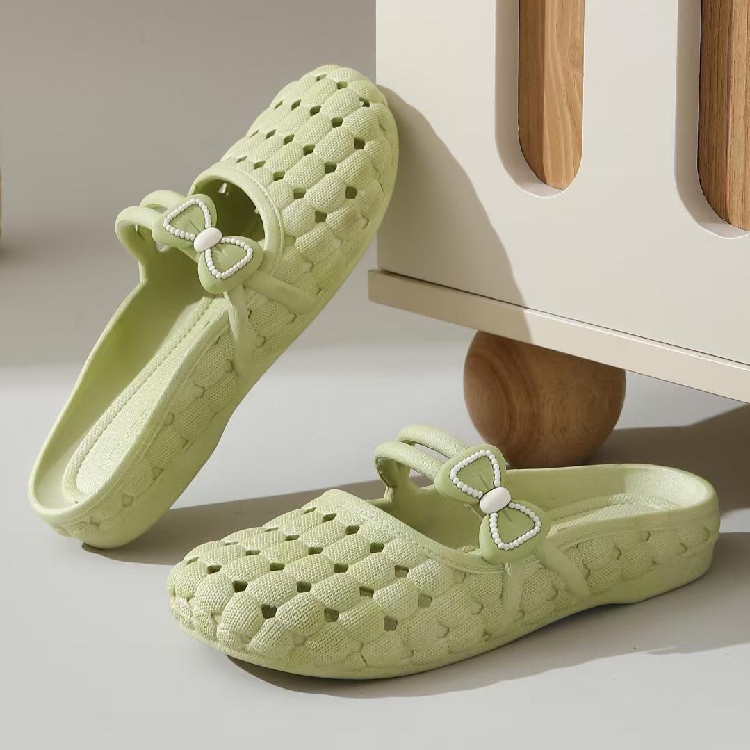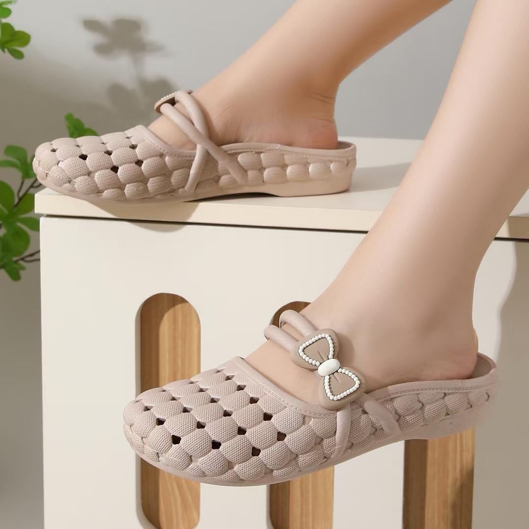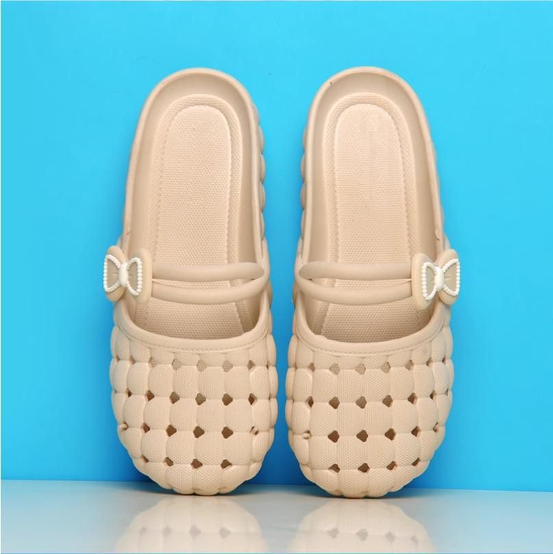 바오터우 슬리퍼 여성 여름 소프트 솔 한국 스타일 가구 실내 및 실외 착용 통기성 미끄럼 플랫 샌들 플라스틱 구멍 신발
