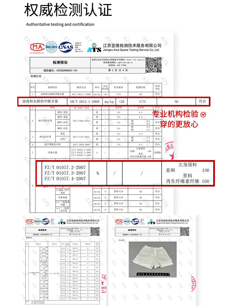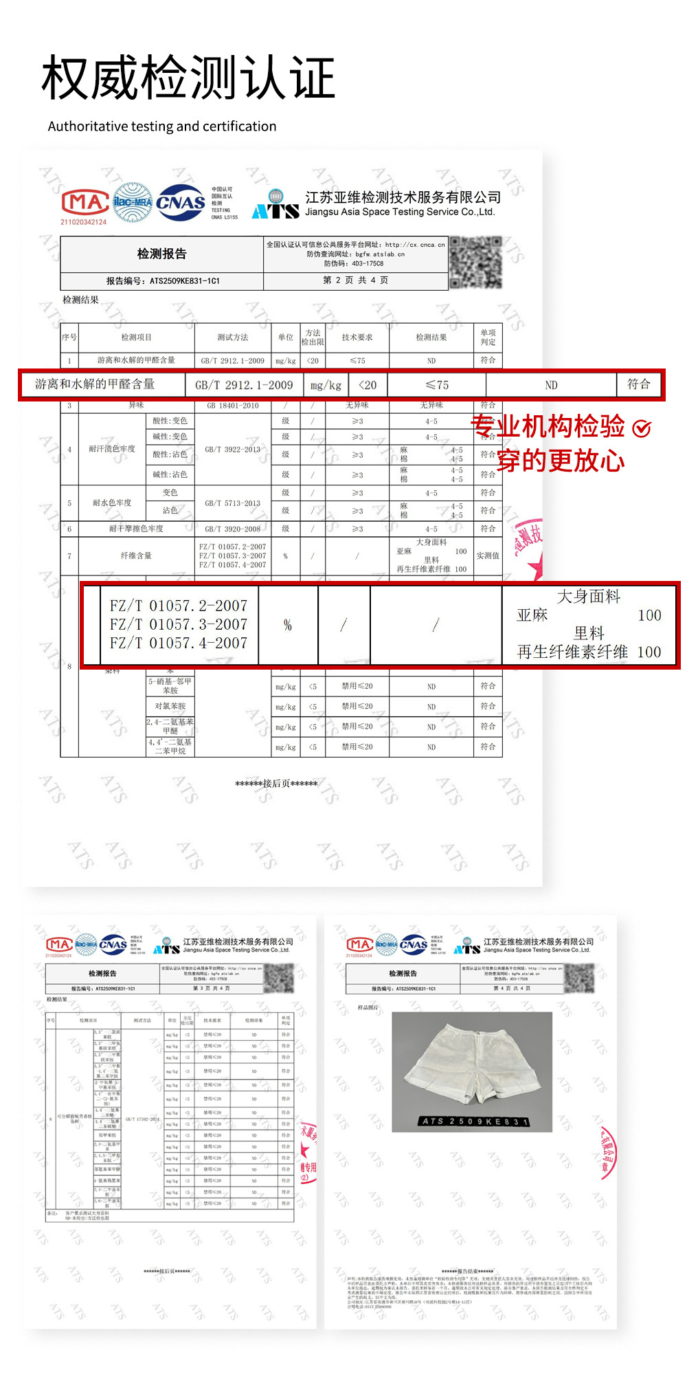 • 권위 있는 테스트 및 인증, 100% 린넨